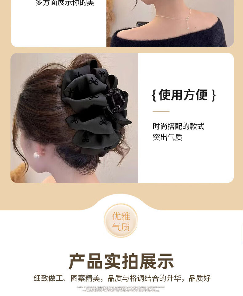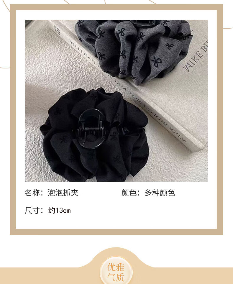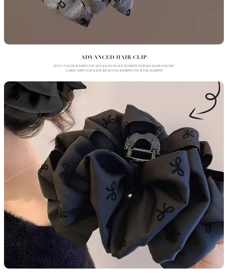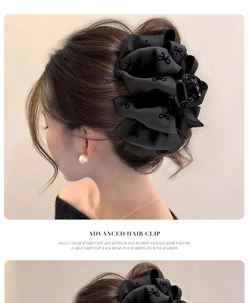 Two Worlds Black Bubble Bow Clip Women's Back Head Hair Clip High-end Large Shark Clip Suitable for Hair Volume Black Bubble Bow Main Picture Style