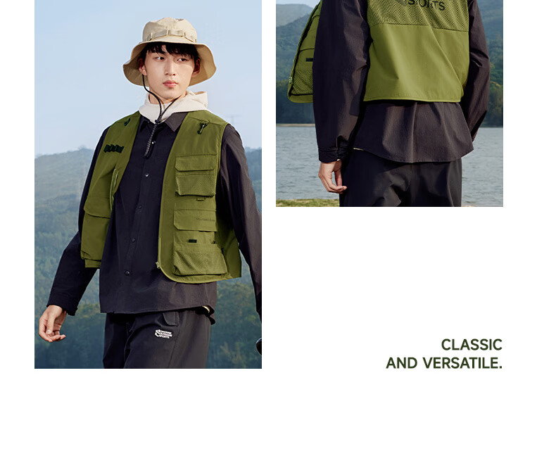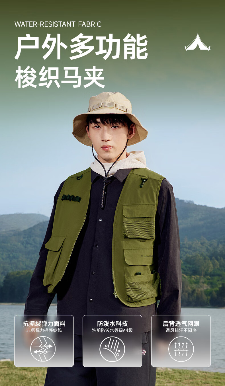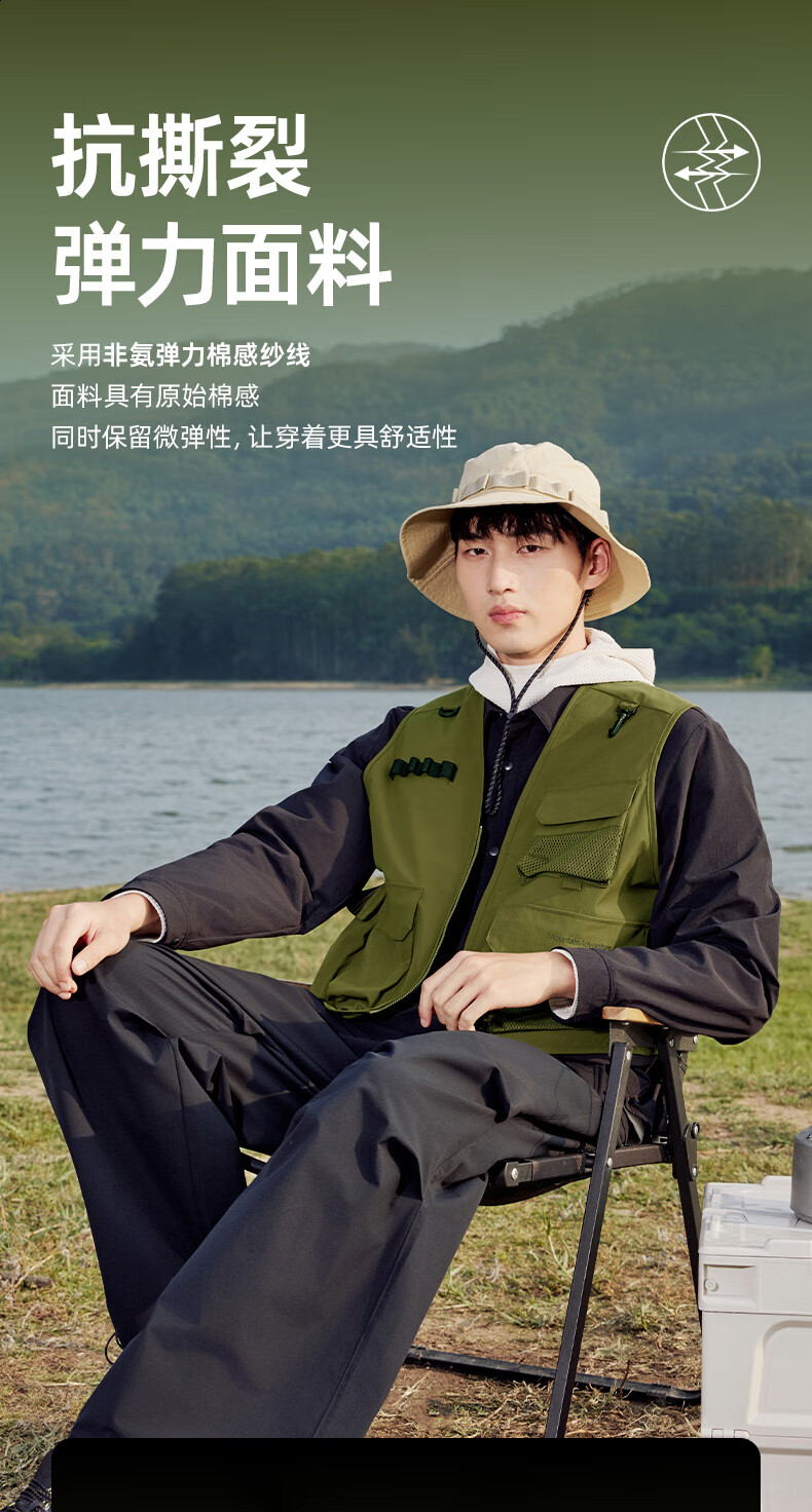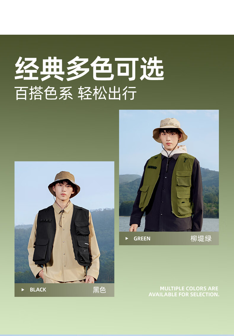 Jordan Mountain God Vest Men's Waterproof Vest Outdoor Multi-Function Fishing Cycling Workwear Jacket Liudi Green S
