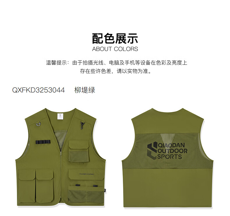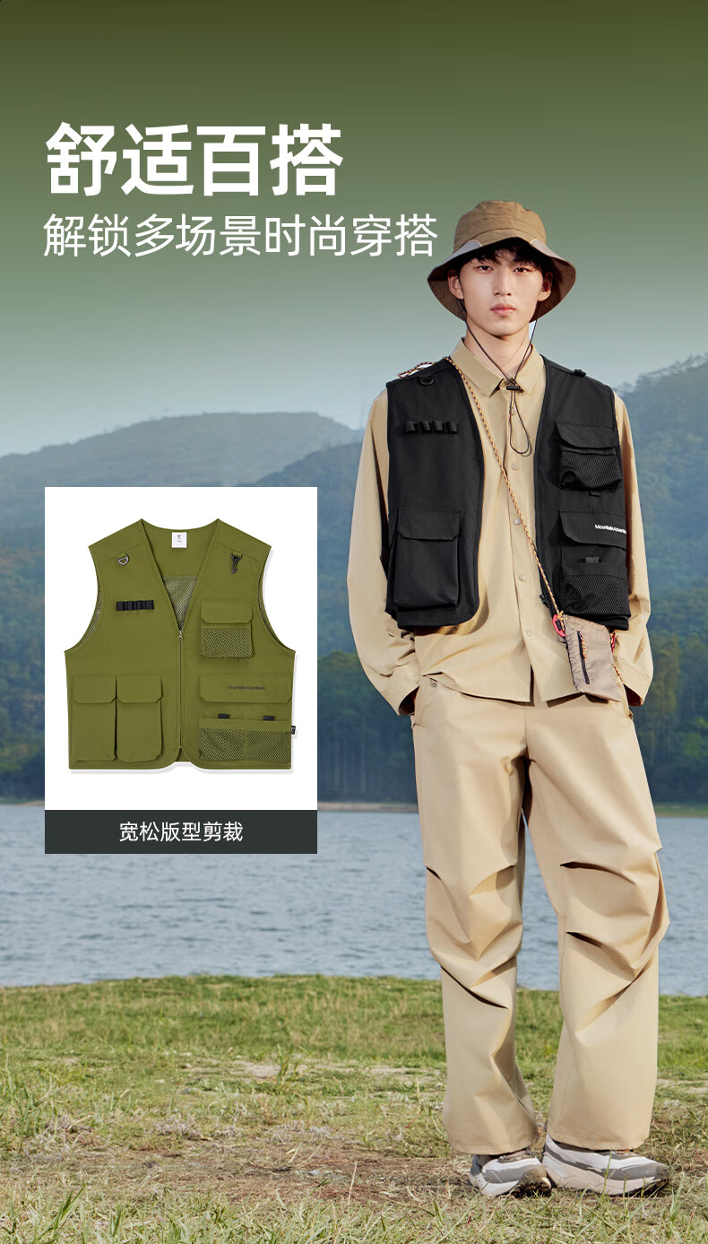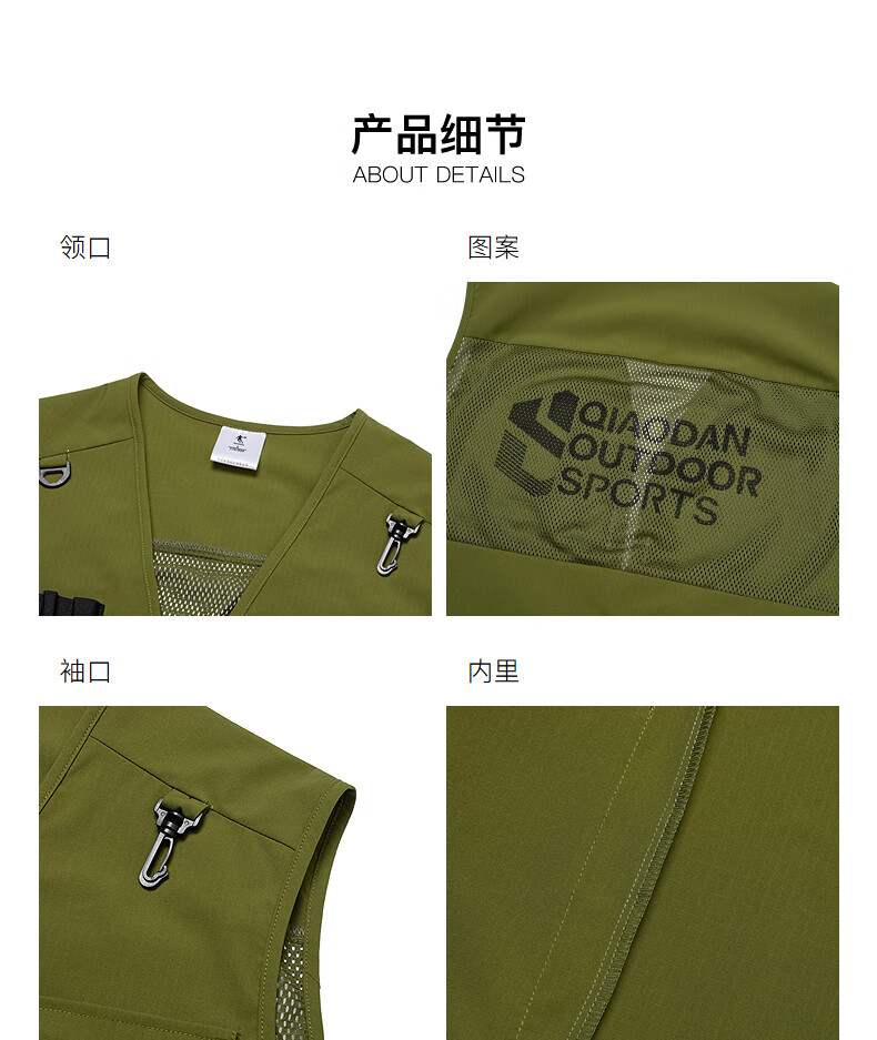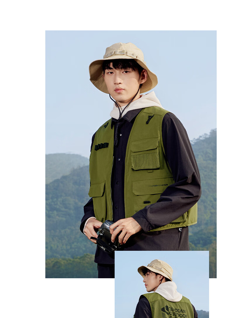Jordan Mountain God Vest Men's Waterproof Vest Outdoor Multi-Function Fishing Cycling Workwear Jacket Liudi Green S