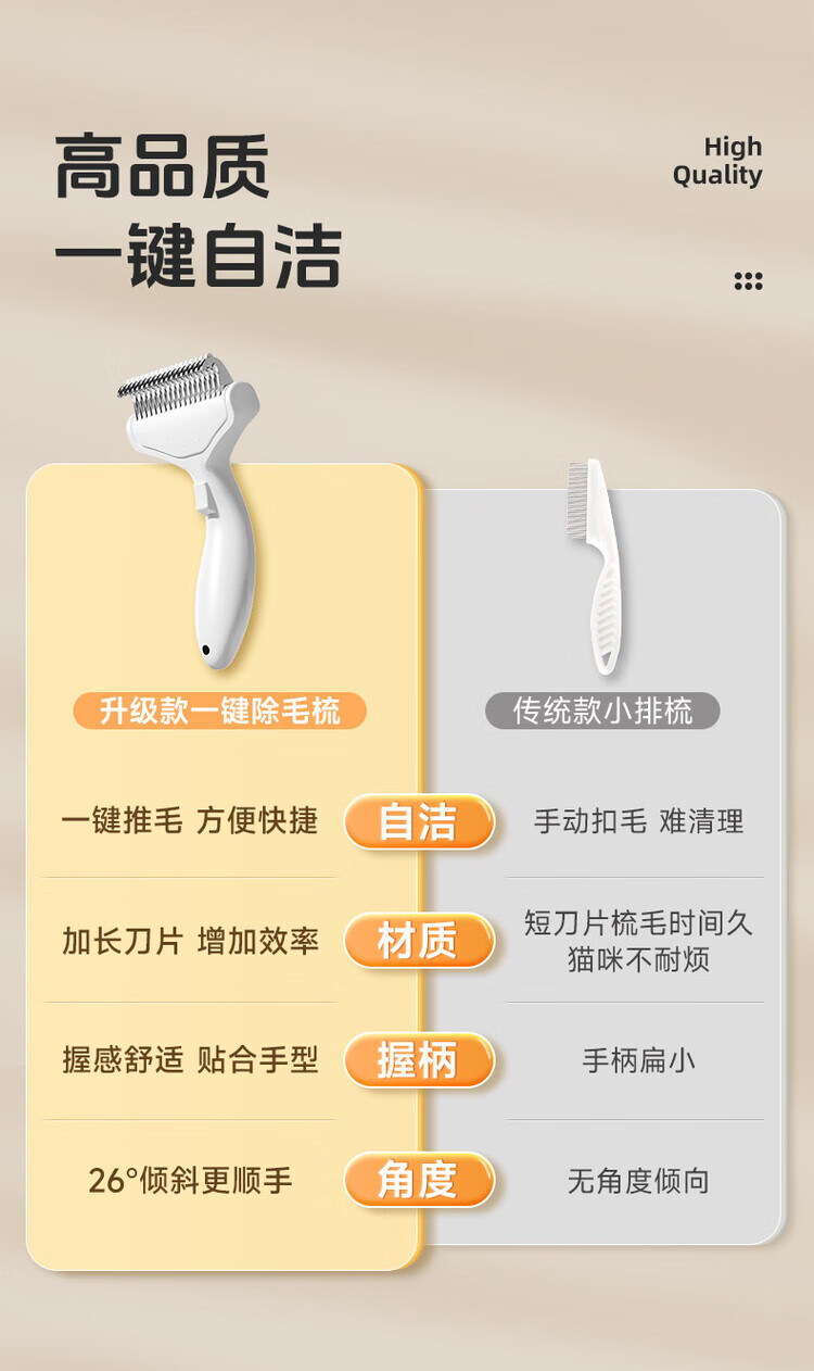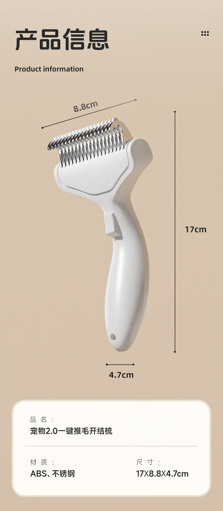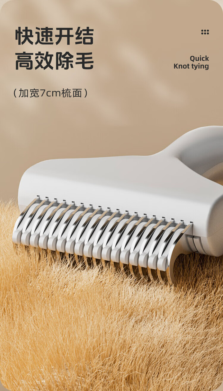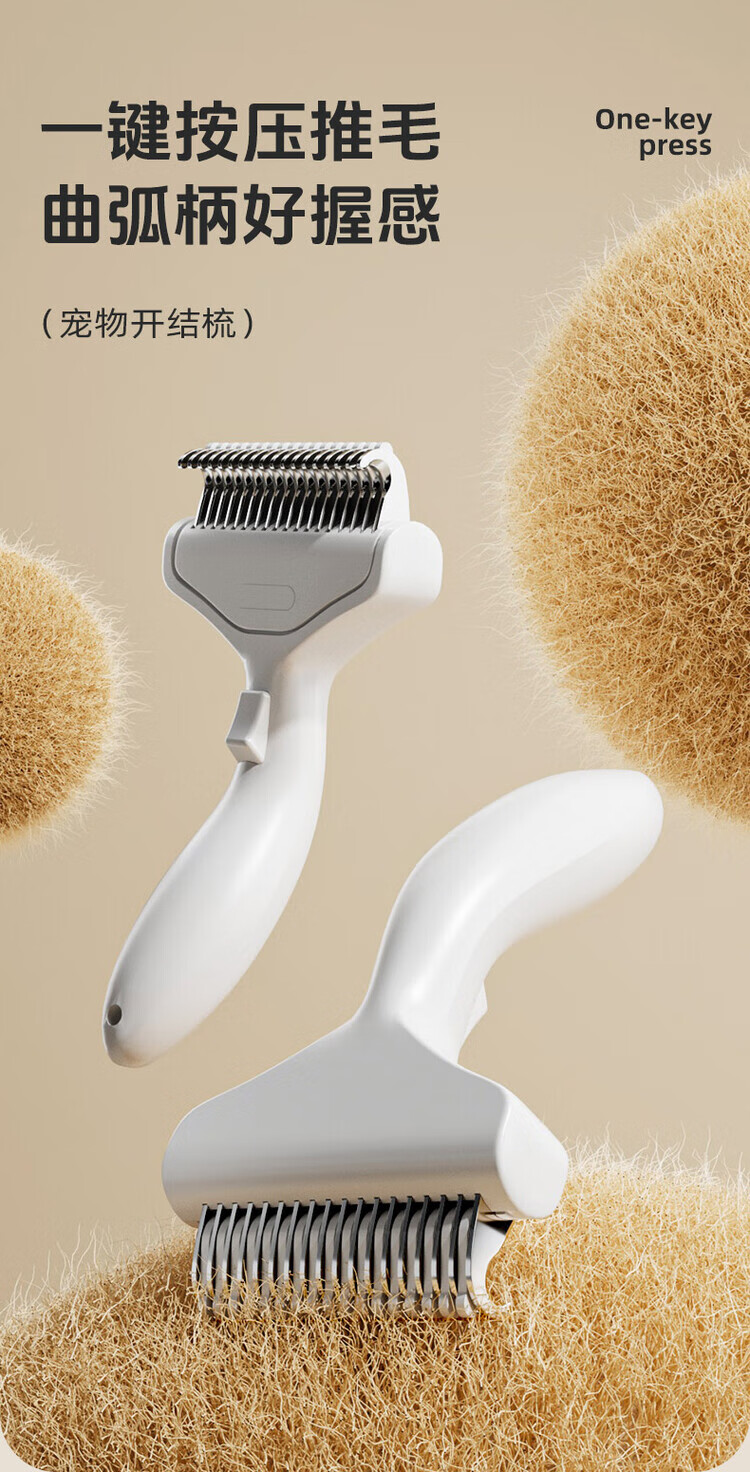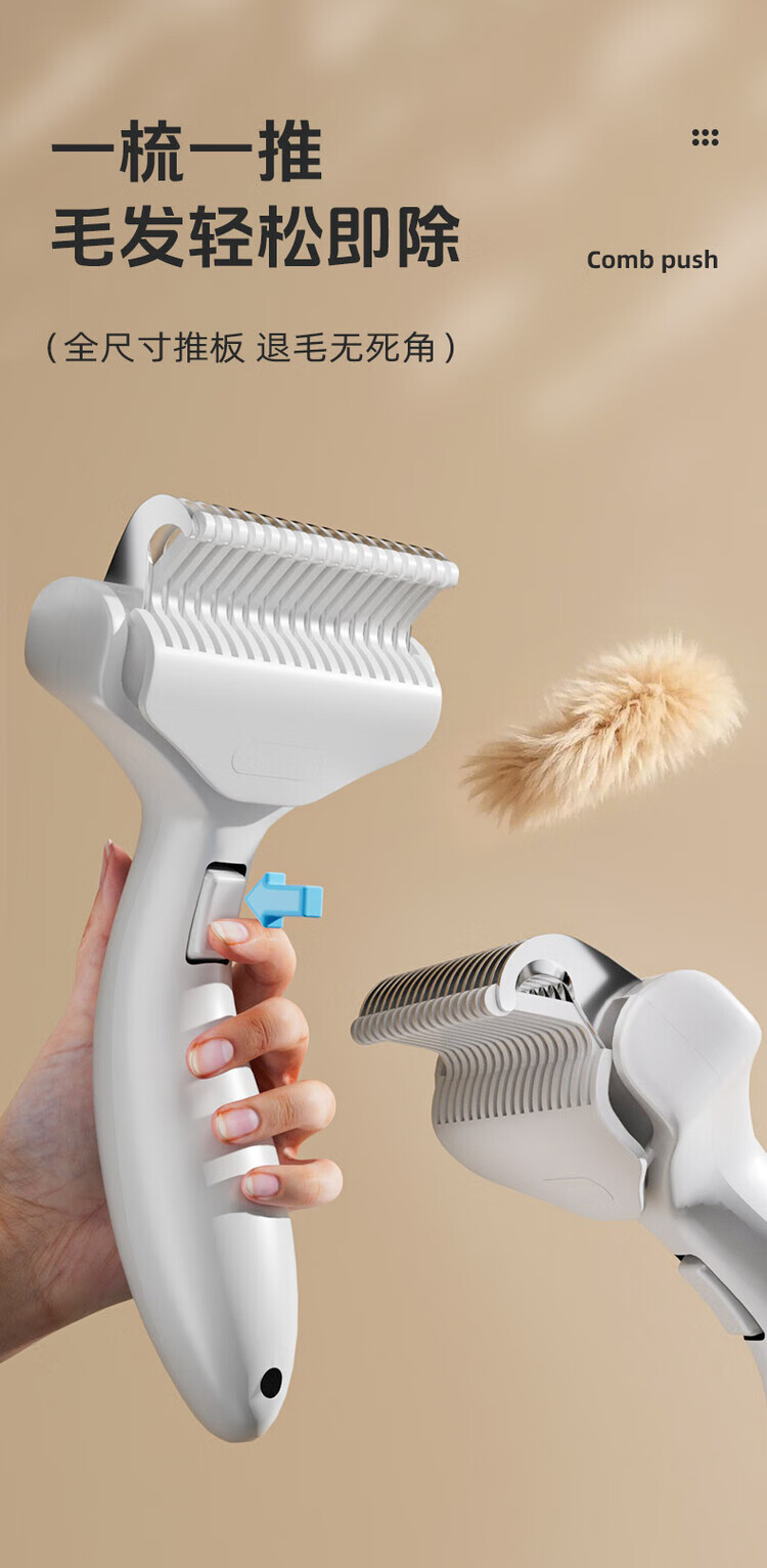 GERTHRON German pet knot-opening comb for cats, special de-floating comb for dogs, thinning bristle artifact, stainless steel cat hair, one-click hair removal and knot-opening comb (ivory white)