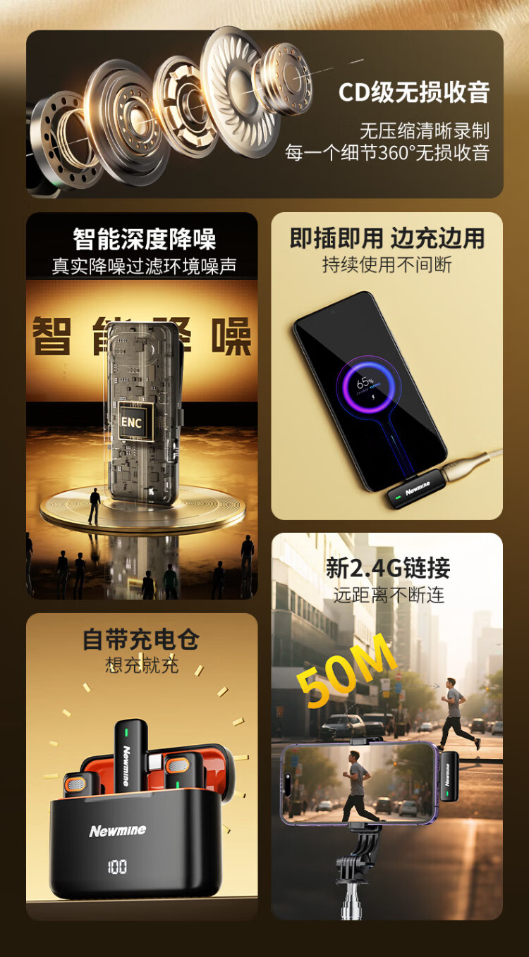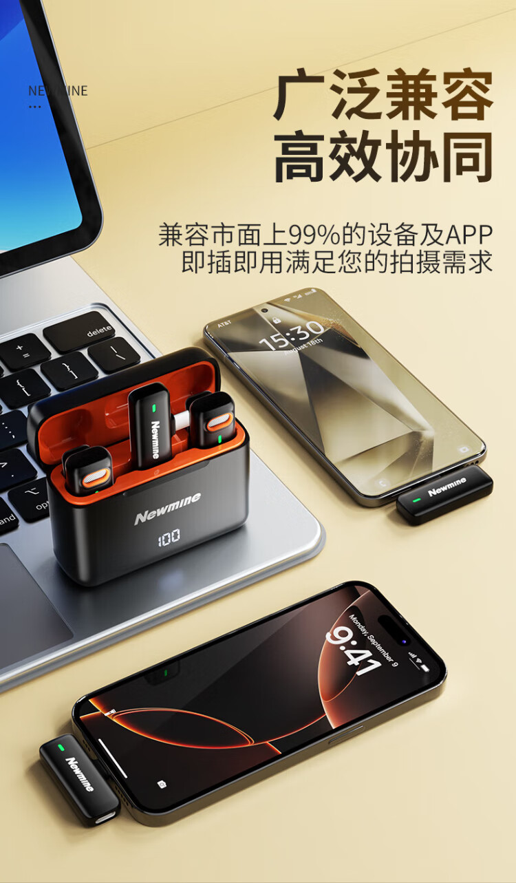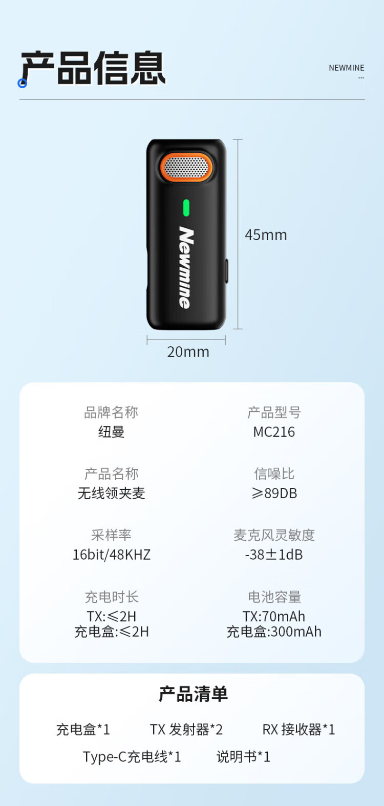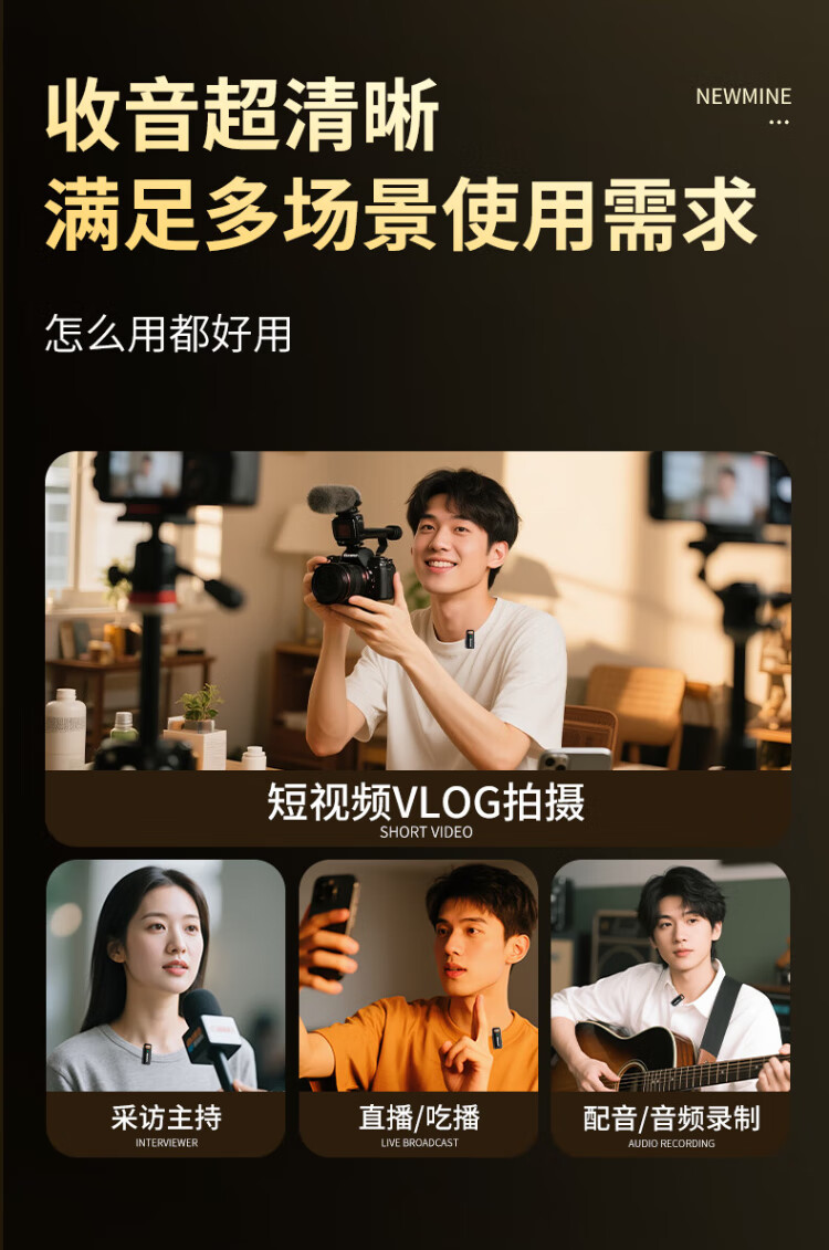 Newman MC217 wireless lavalier microphone live broadcast equipment set, national subsidy, short video outdoor noise reduction karaoke recording radio microphone, professional microphone pickup condenser microphone, one for two, universal version, including warehouse