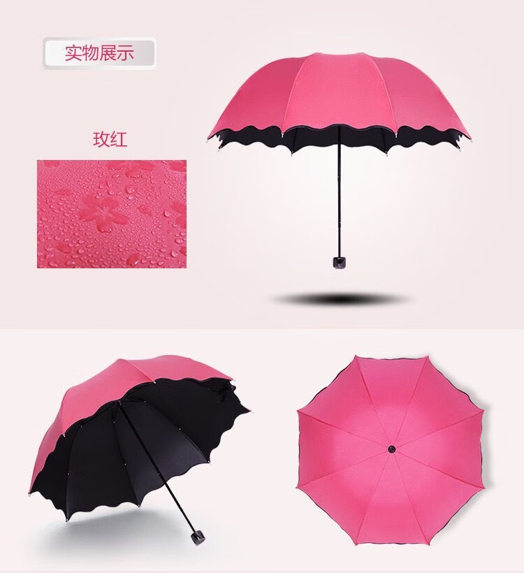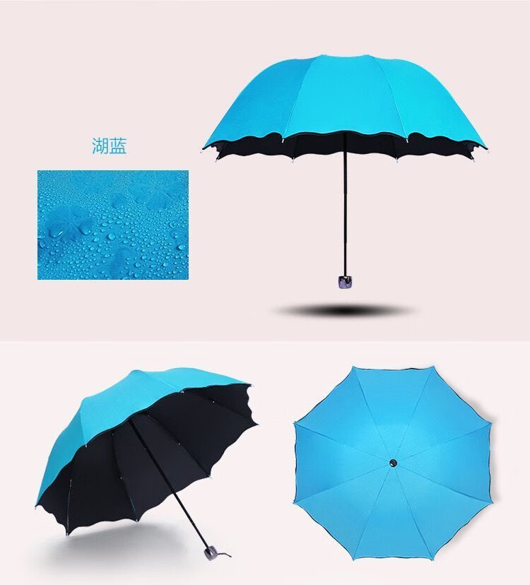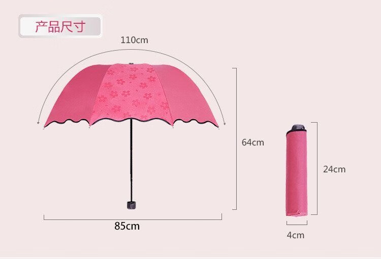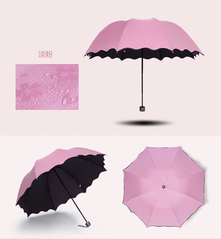 Flowers bloom when exposed to water, creative small fresh UV sun umbrella, sun protection folding sunny umbrella, vinyl parasol for men and women, flowers bloom when exposed to water - lavender purple