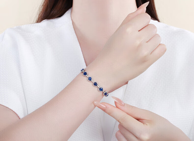 HEEKAIYI Sapphire Bracelet for Women Royal Blue 18K Gold Diamond Bracelet Chinese Valentine's Day Birthday Gift for Wife and Girlfriend Selected 4.58 Carat/Royal Blue/Double Certificate