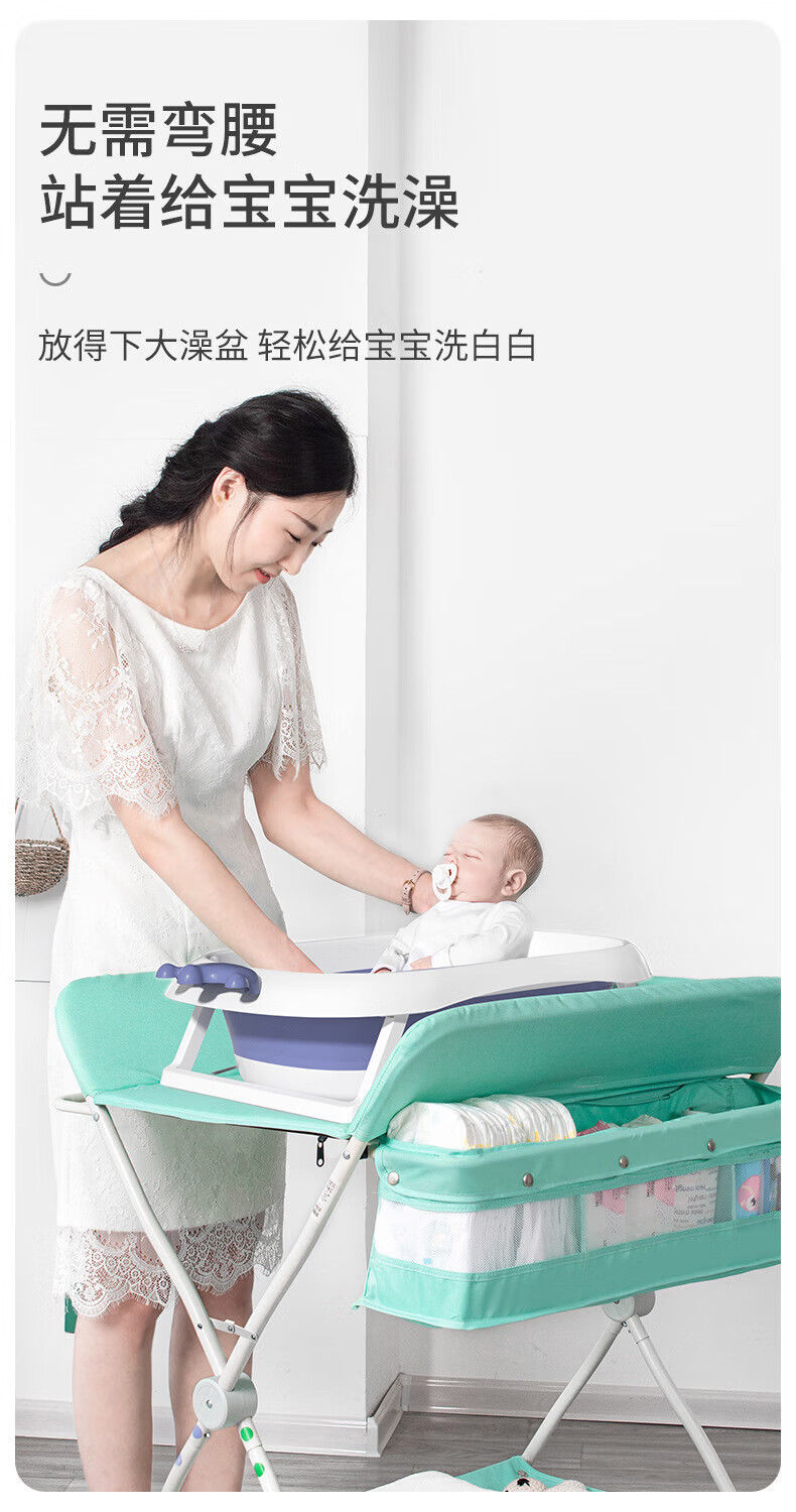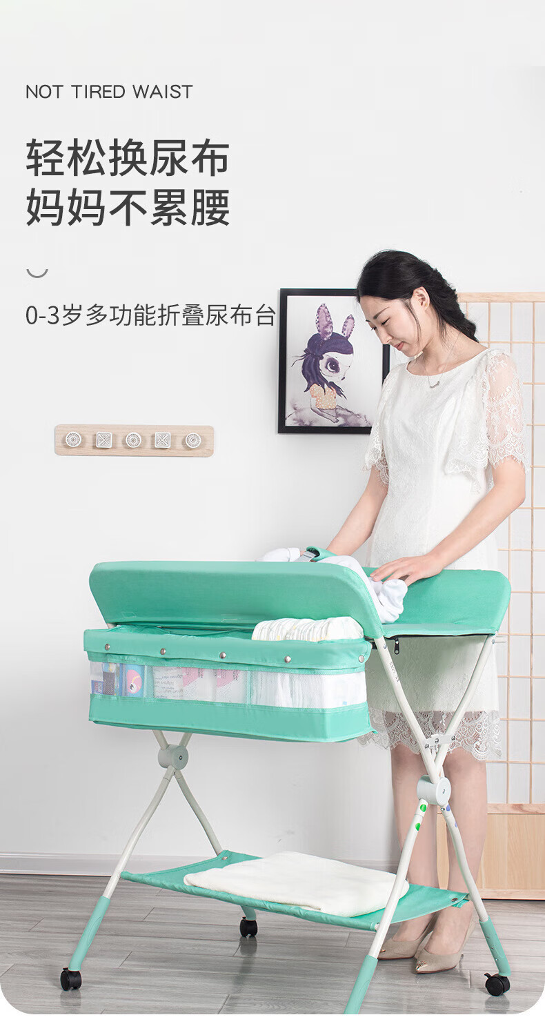 Lilang diaper table foldable simple baby care table crib baby changing table newborn touch diaper table - green mobile model + three-piece set