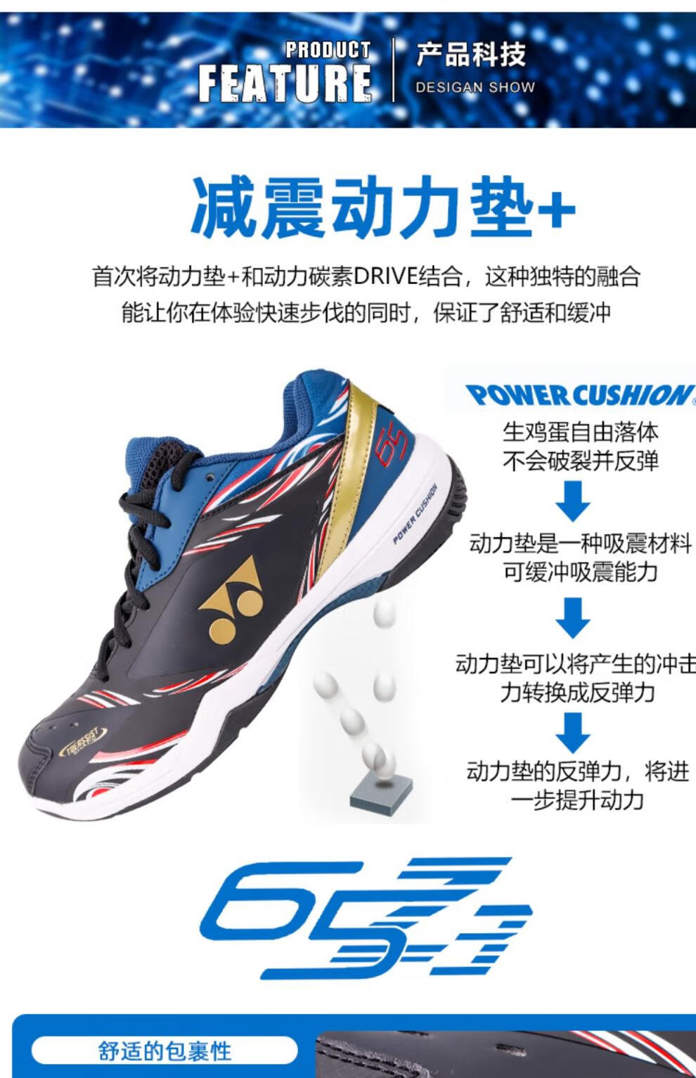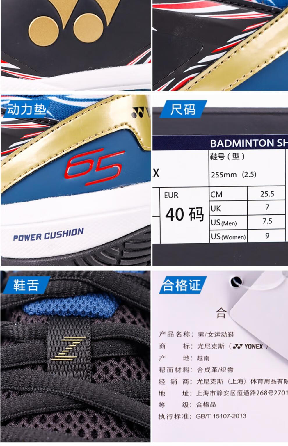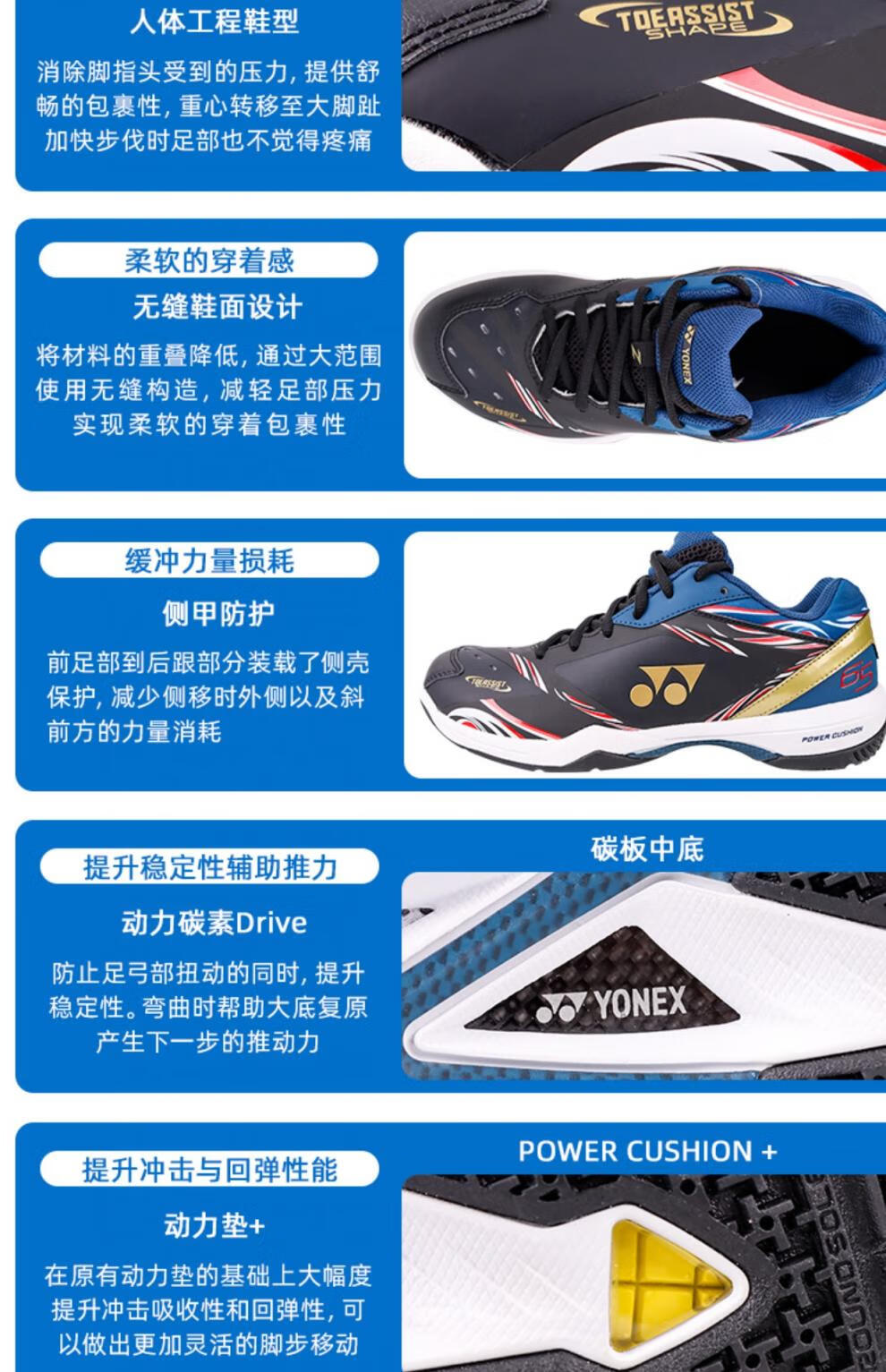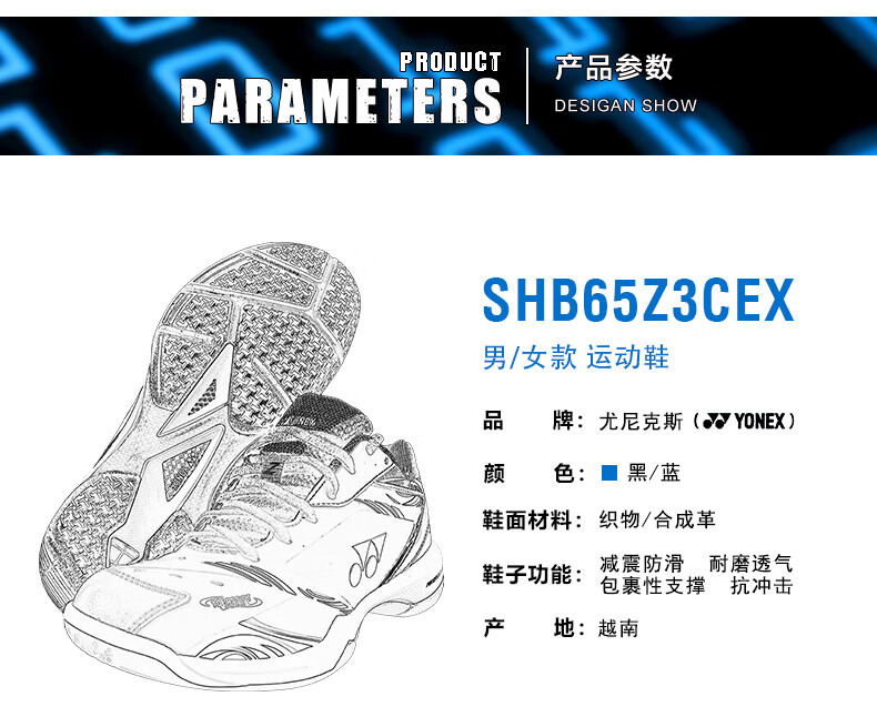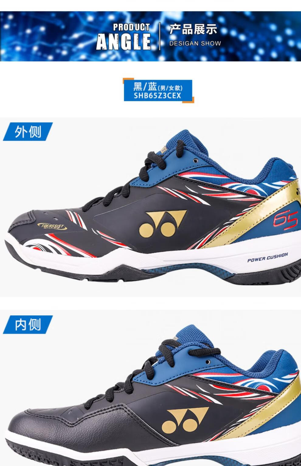 YONEX (YONEX) new yy badminton shoes SHB65z3cex national team color anti-slip spring and summer SHB65z3cex black blue 36_225mm national team color
