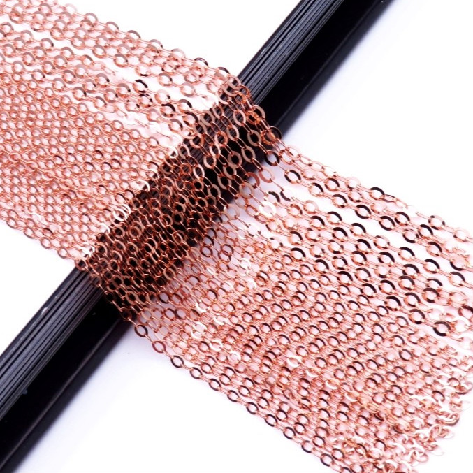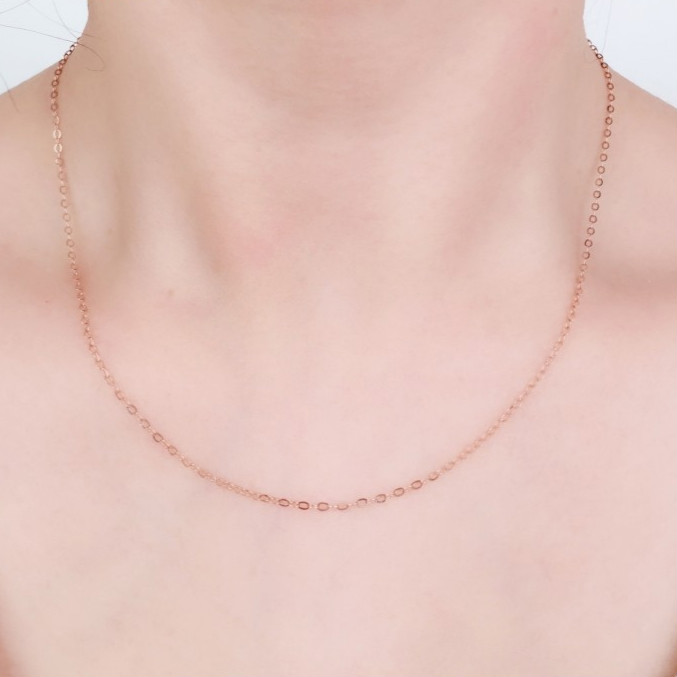 Jinshitong Russian 585 purple gold necklace 14K color gold rose gold flash O-shaped chain for women 45cm thick 1.1mm