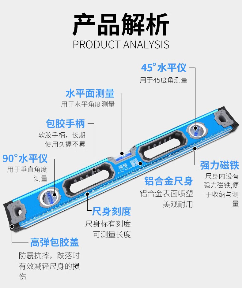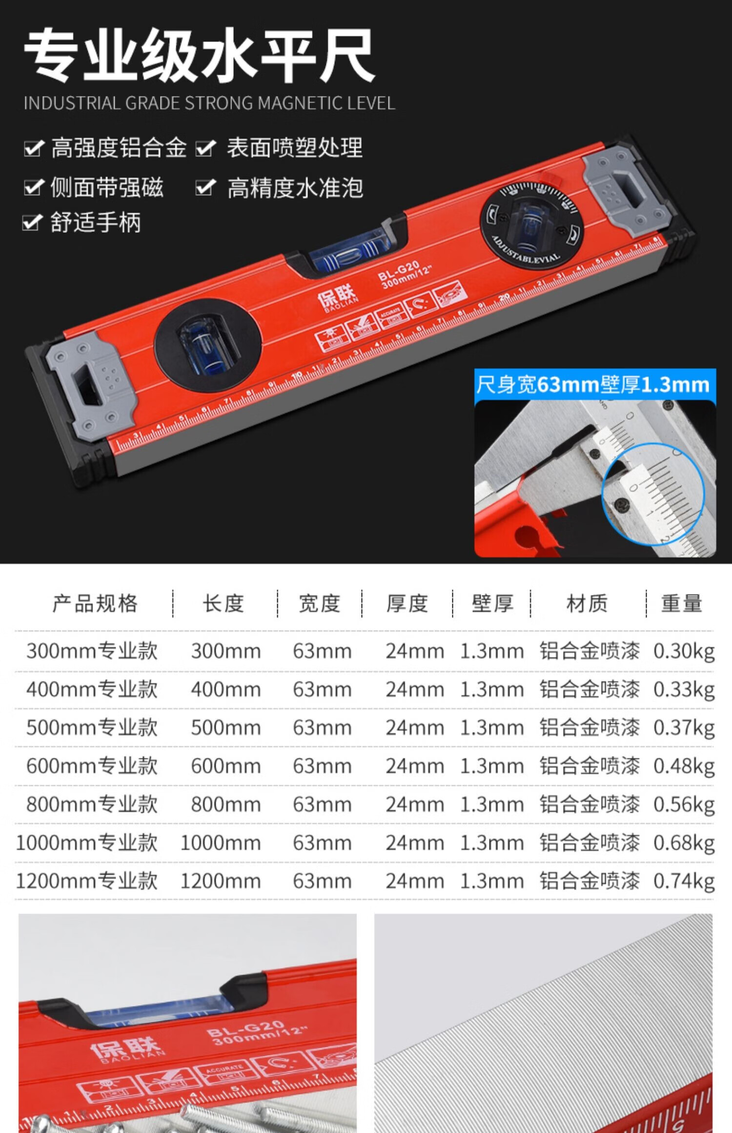 Baolian level ruler high-precision flat water ruler relying on ruler fans small aluminum alloy solid anti-fall balancer tool strong magnetic home economical strong magnetic 800mm