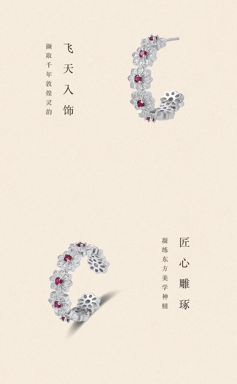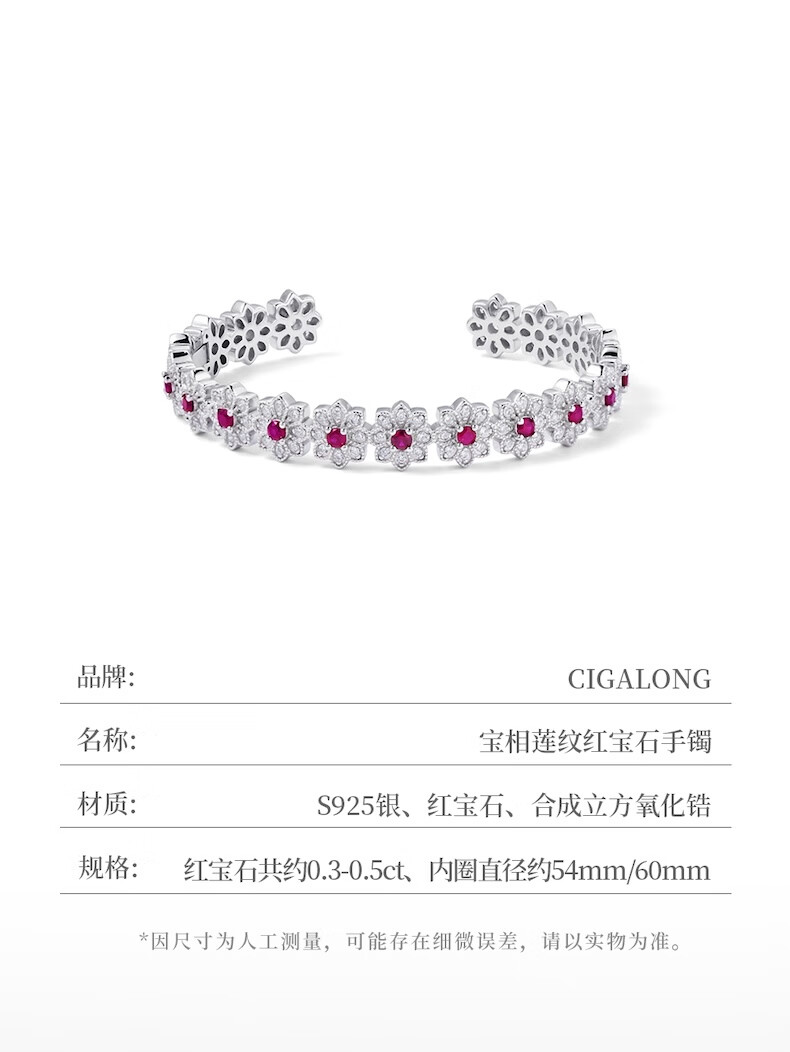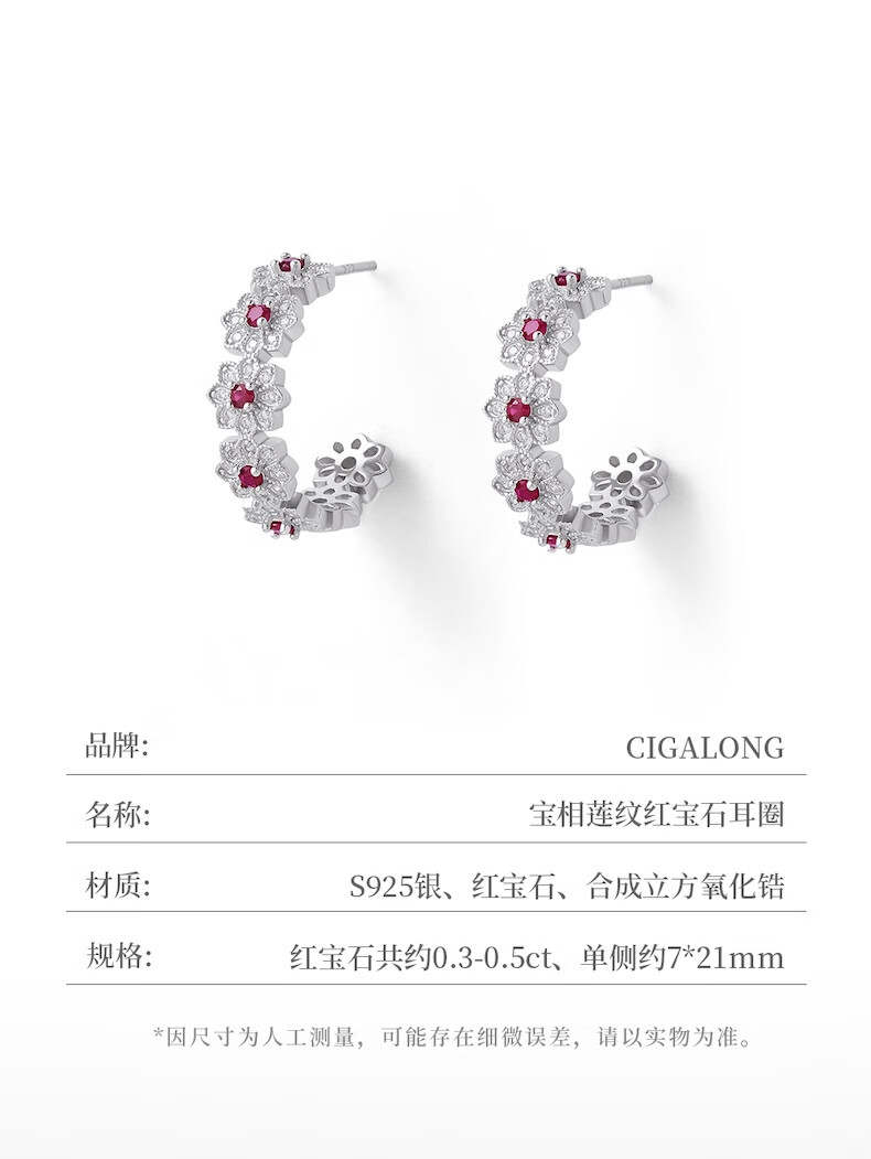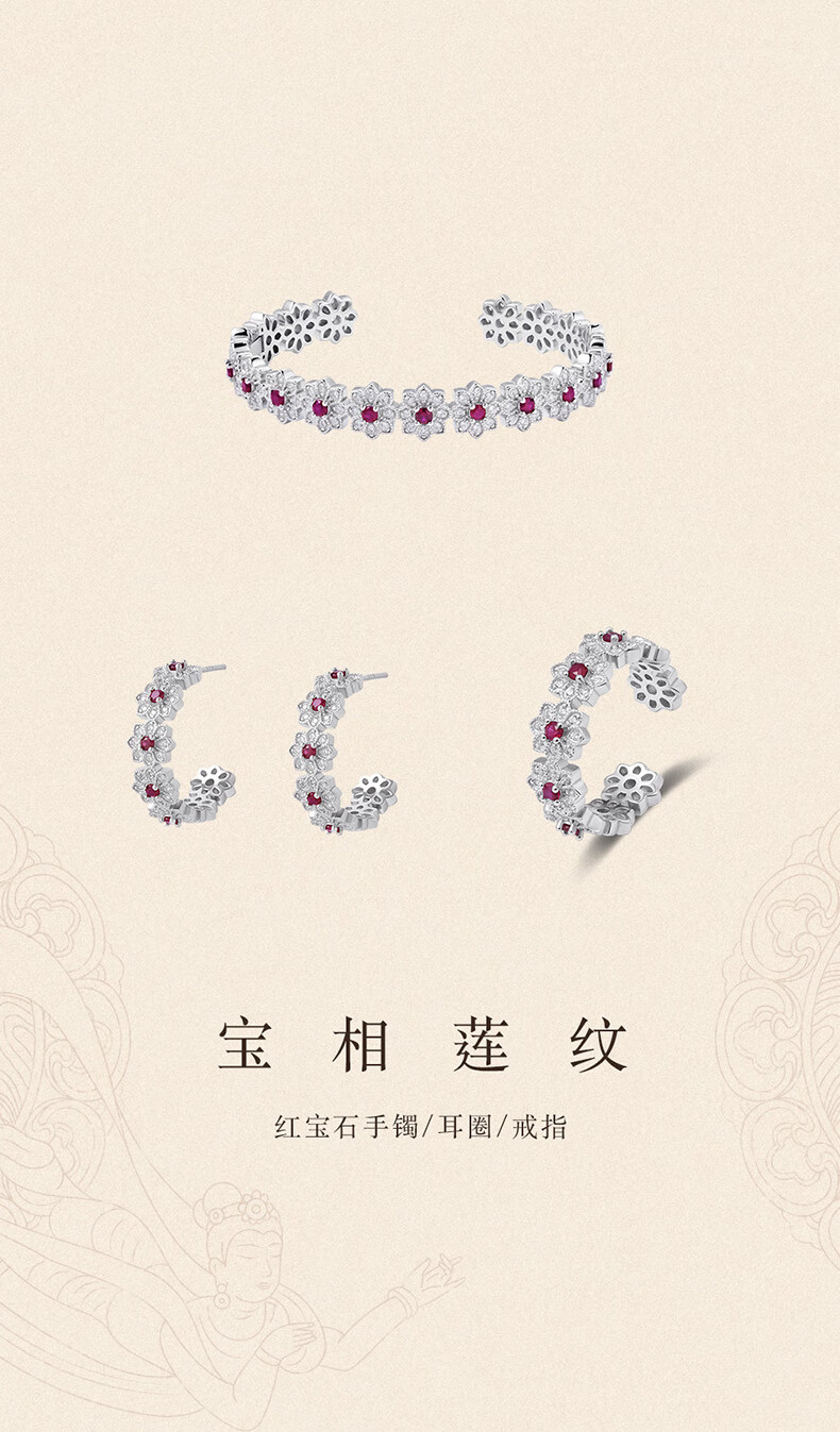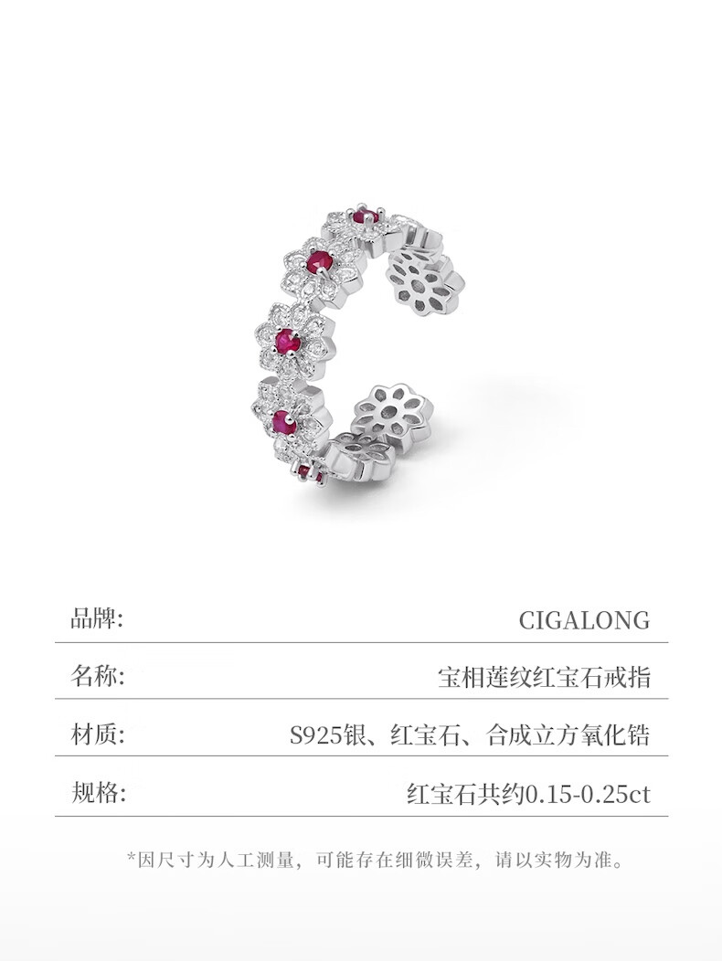 CIGA LONG Baoxiang Lotus Pattern Ruby Stud Earring Ring New Chinese Style Jewelry Baoxiang Lotus Pattern Ruby Ring 17-18
