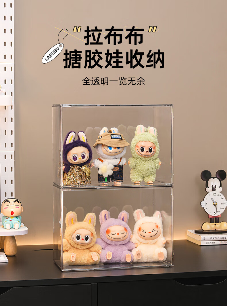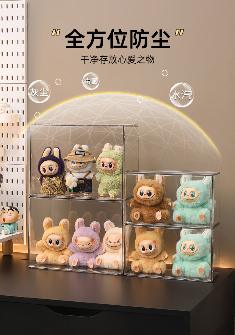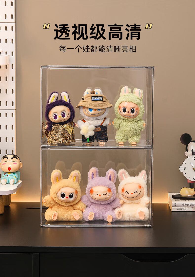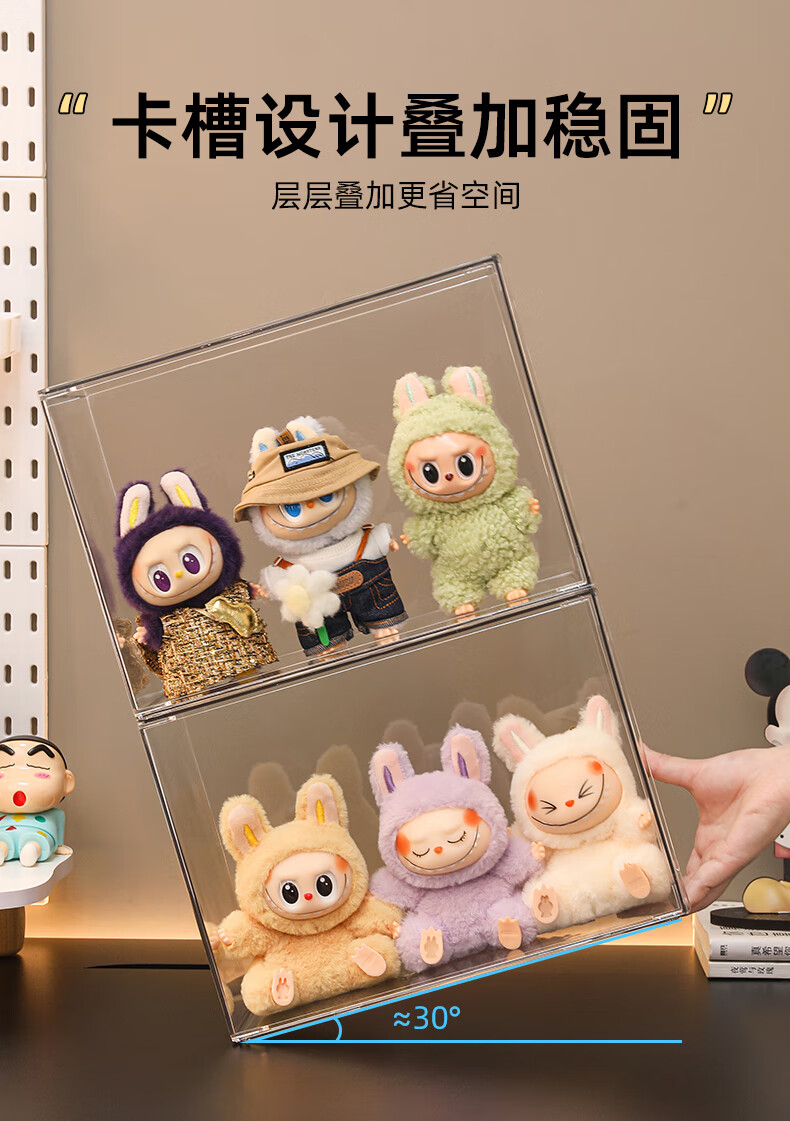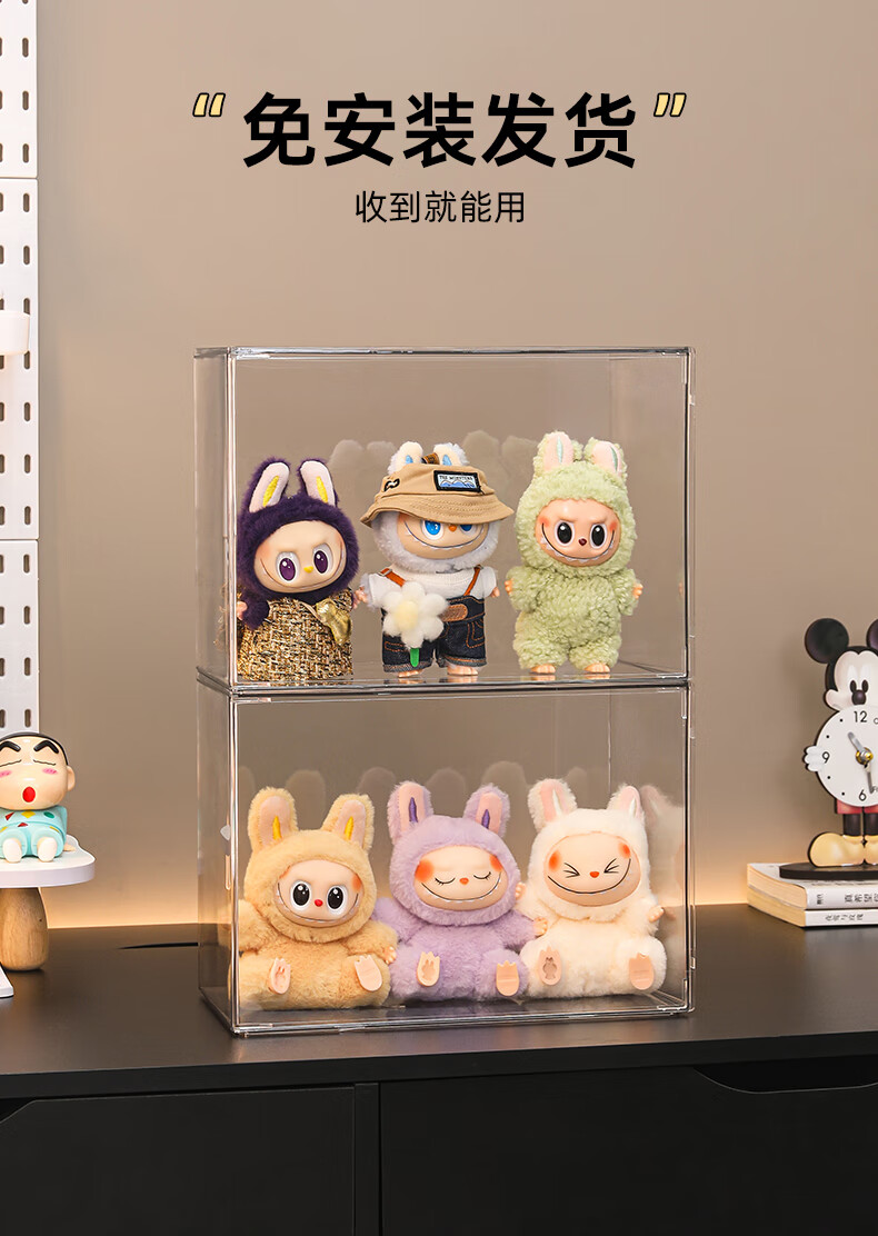 KAMAN Labubu display box transparent acrylic shelf labubu enamel doll doll Bubble Mart figure display cabinet transparent small size - dustproof 2 pieces
