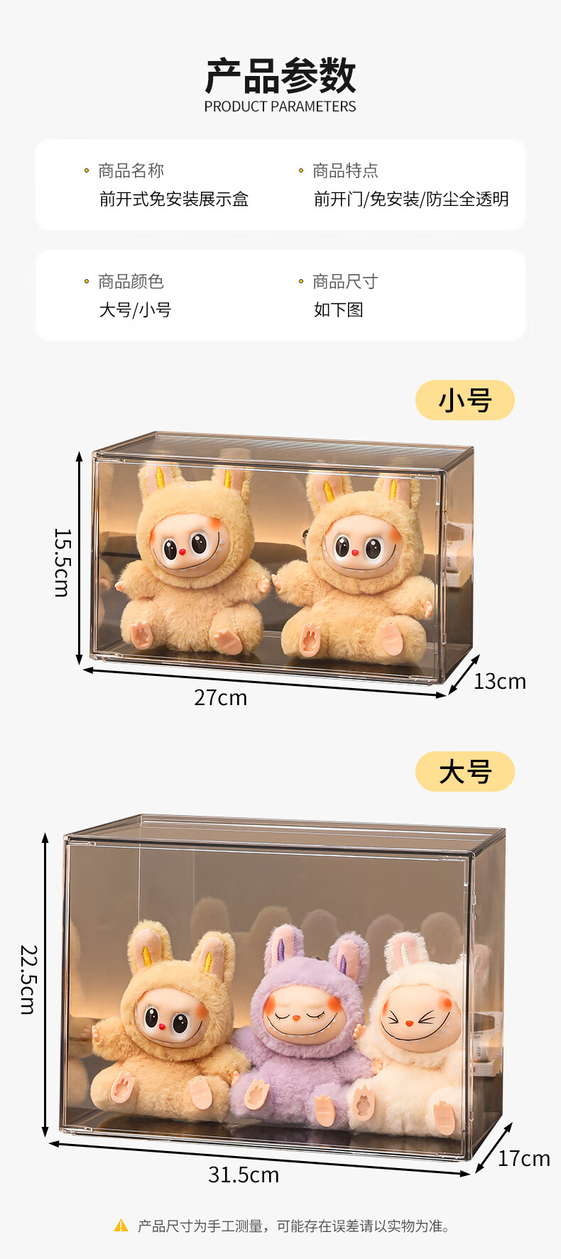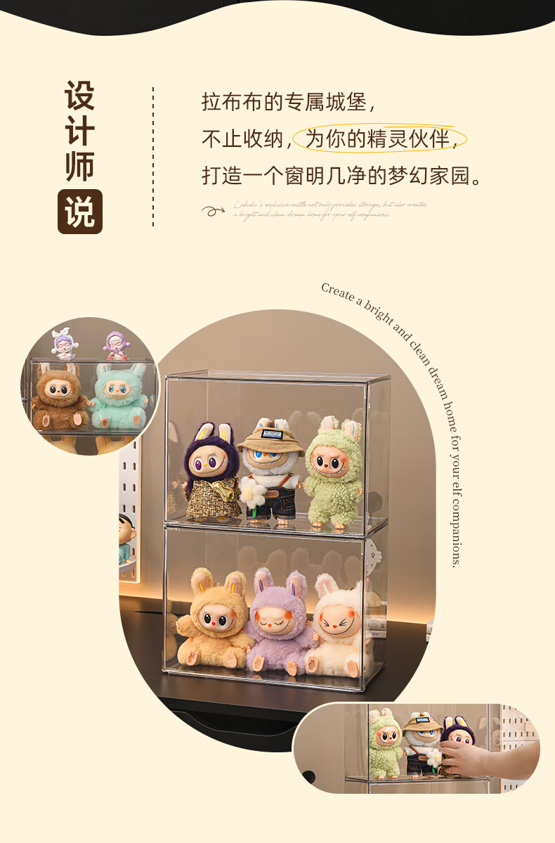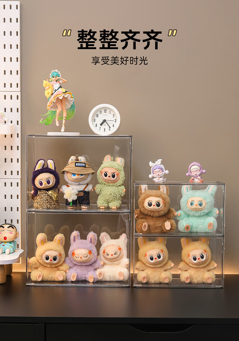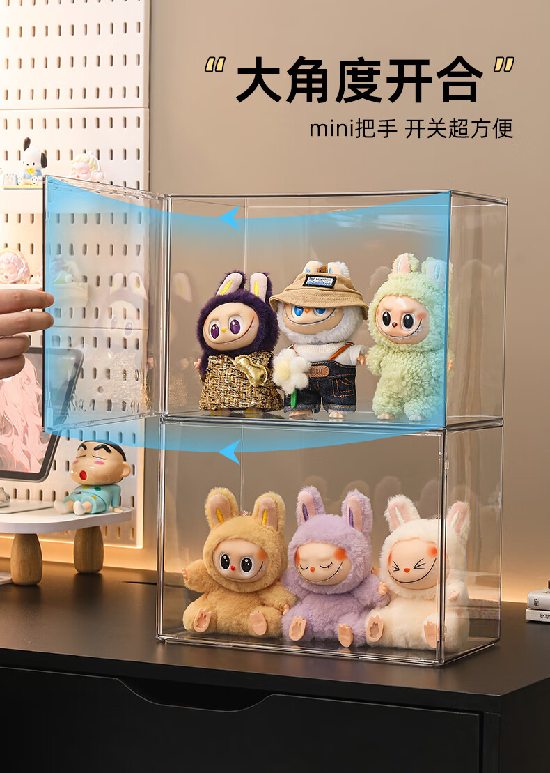 KAMAN Labubu display box transparent acrylic shelf labubu enamel doll doll Bubble Mart figure display cabinet transparent small size - dustproof 2 pieces