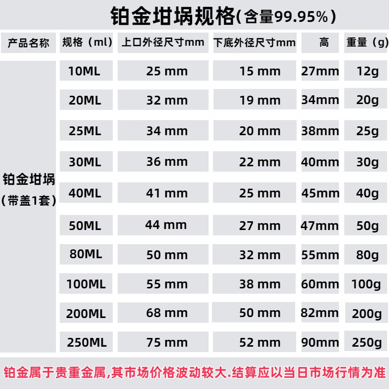 30ML platinum crucible with lid 30g purity 99.95 precious metal shipped from Shanghai at the same day price 30ML platinum crucible with lid 30g