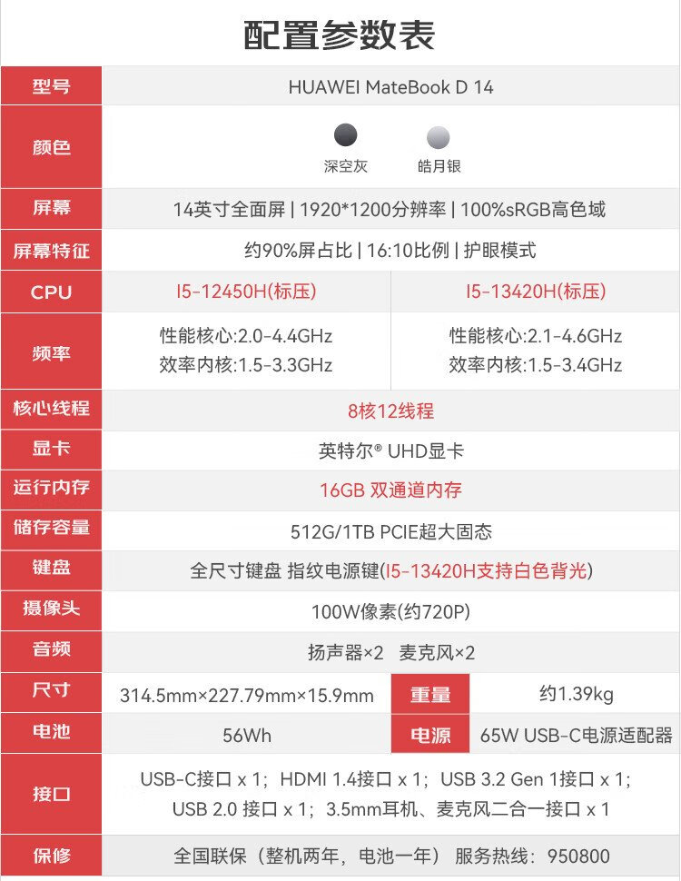 Huawei (HUAWEI) MateBook D14 laptop government subsidy 2025 new Linux system 14-inch full screen student thin and light business office notebook Silver丨i5-13420H 16G 1T solid state store pre-installed Windows version
