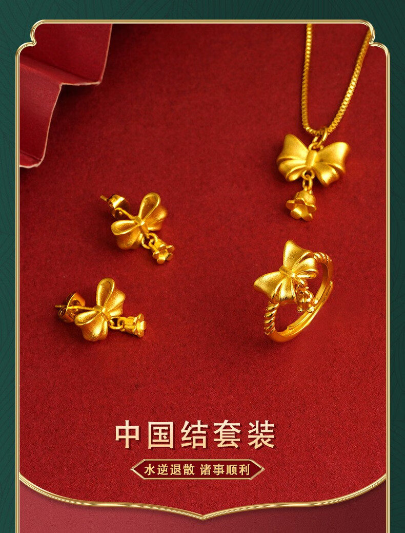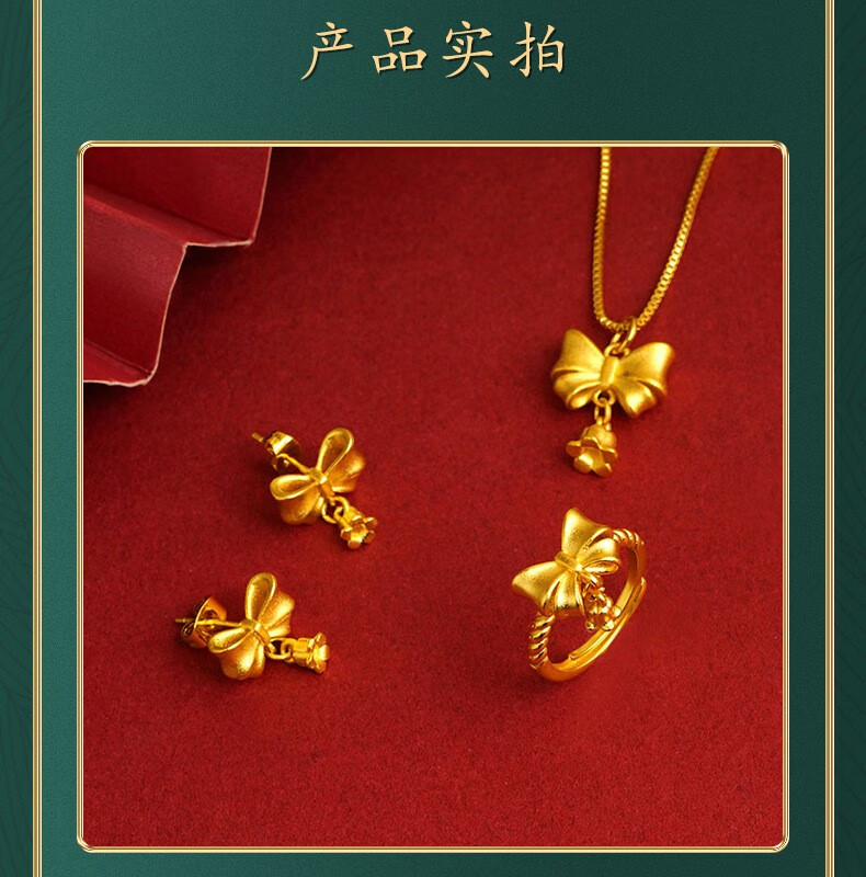 OIDSG Old Phoenix 999 Vietnamese sand gold imitation fake gold will not fade for a long time Chinese knot butterfly lily of the valley flower ring necklace lily of the valley three-piece set with 9 yuan discount gift box
