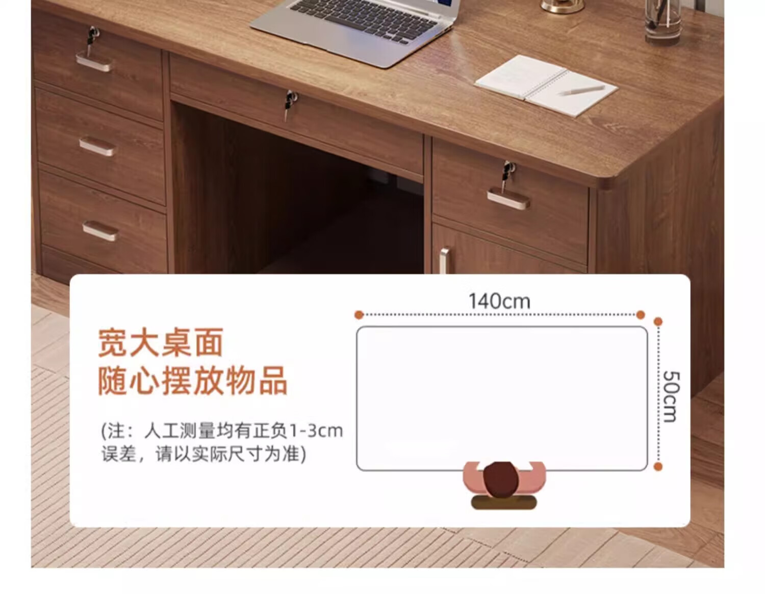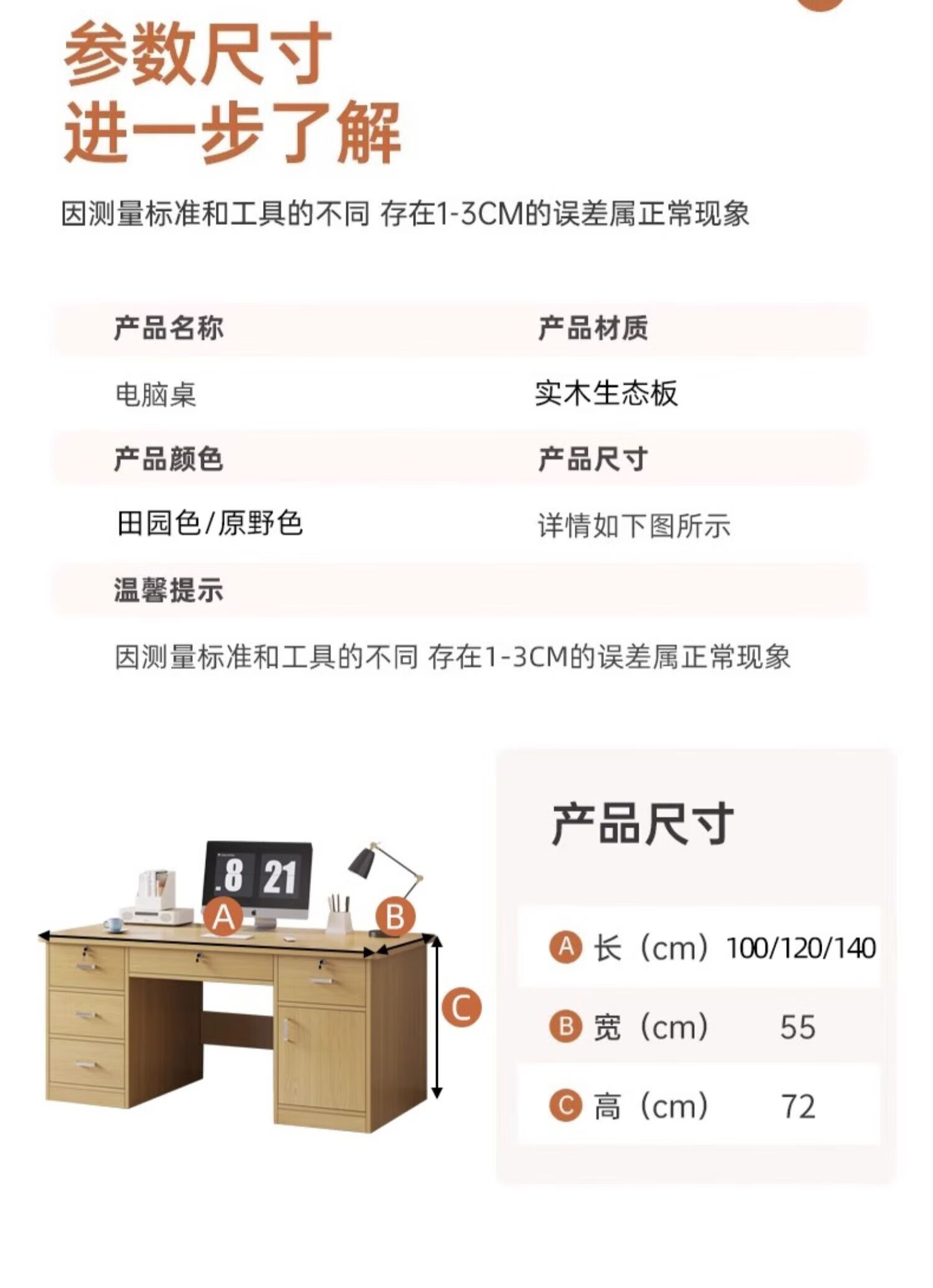 Jingpei Logistics Solid Wood Computer Desk Bedroom Home Desk Student Writing Desk Office Simple Desk Solid Wood Ecological Board - Wilderness Five Drawing 120*60*73