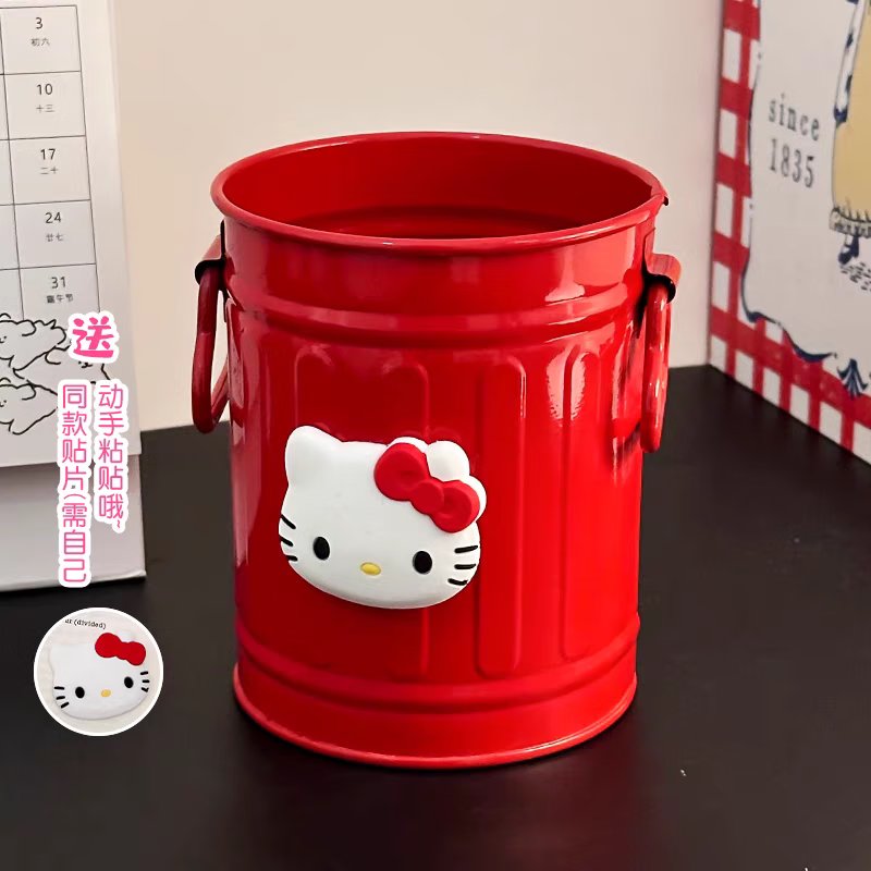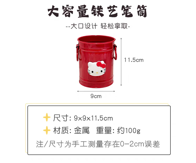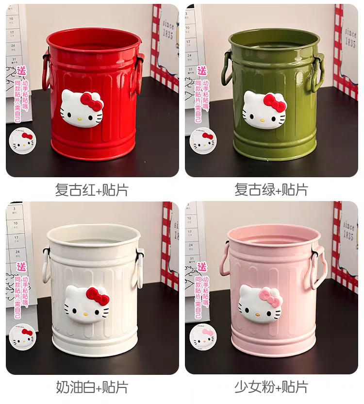 Cute and creative kitty cat iron pen holder, high-looking student desk pen holder, stationery storage bucket, makeup brush holder, pink pen holder + three-dimensional kt cat, one pack