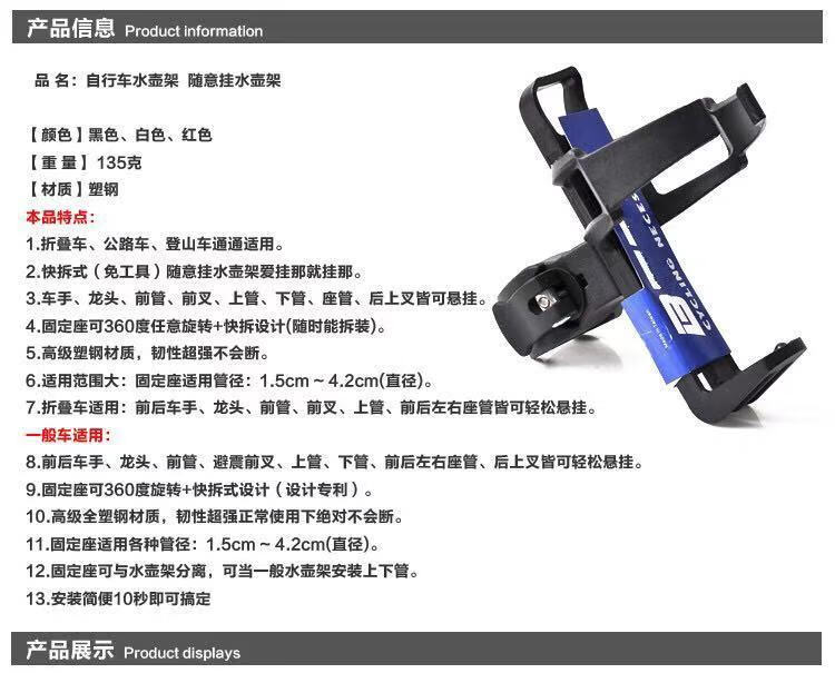 Zhewei bicycle water bottle rack can be hung at will. Universal mountain bike water cup holder. Motorcycle water rack. Bicycle water rack accessories. Thickened - Quick release water bottle rack can be hung at will. Black