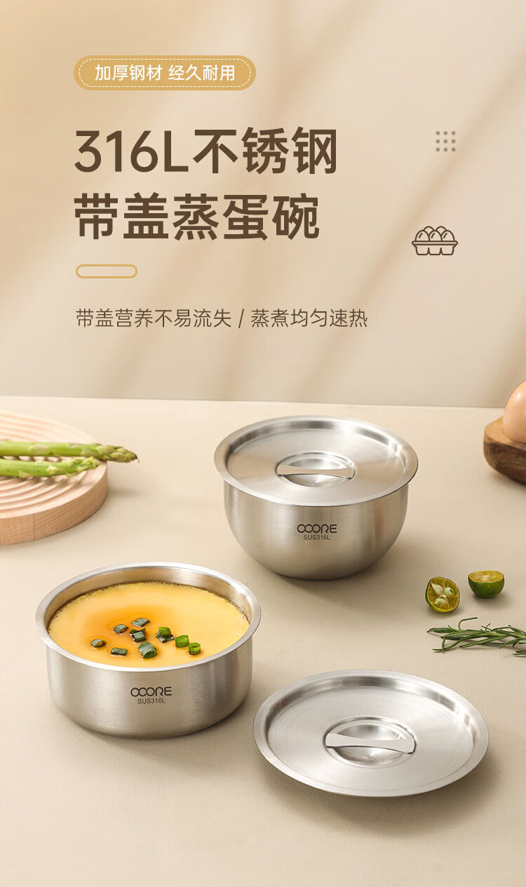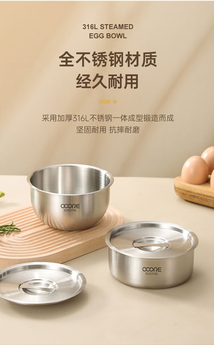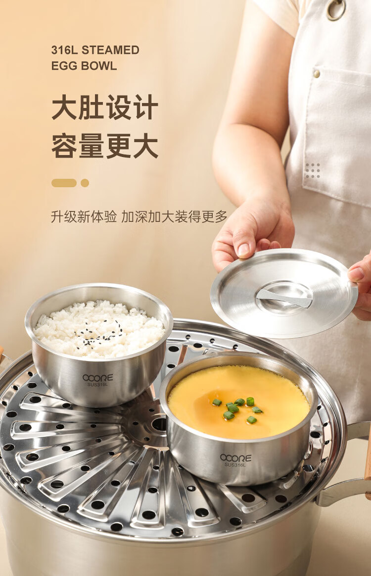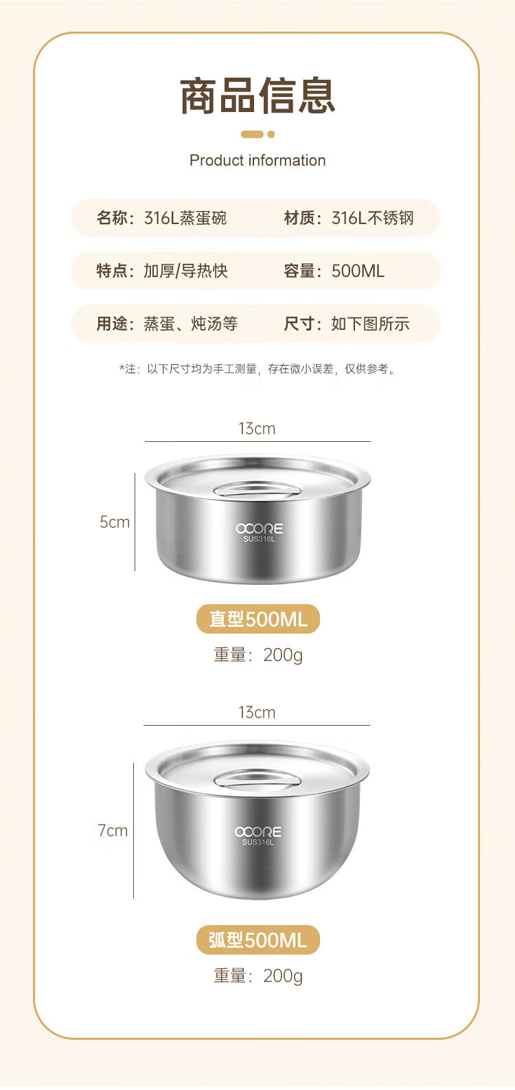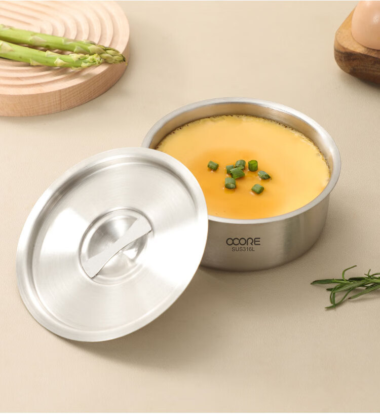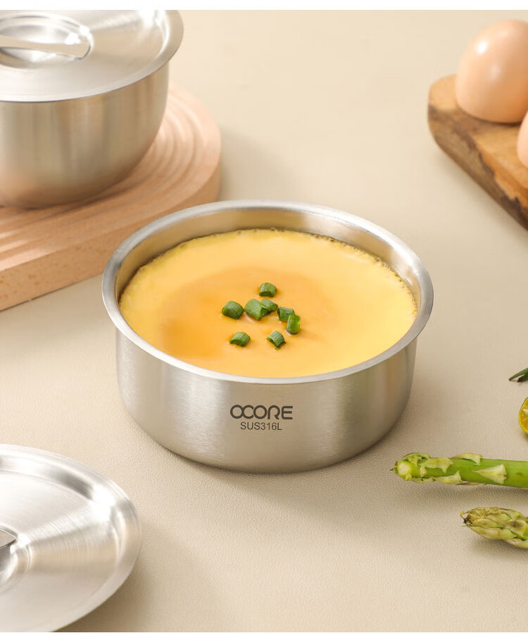 Material-core 316L stainless steel household steamed egg bowl, food-grade steaming bowl, flat-bottomed steamed egg special pot, stew pot, steaming pot, steamed rice, right-angle steamed egg bowl 500ml