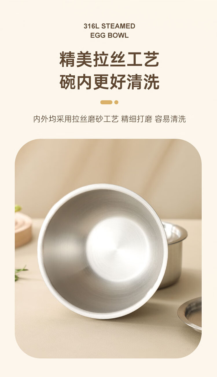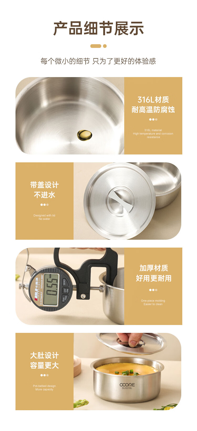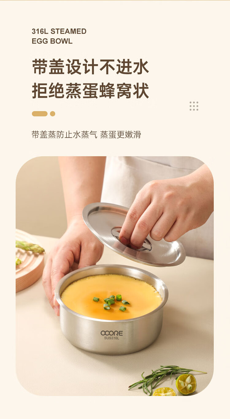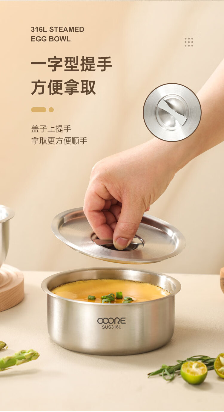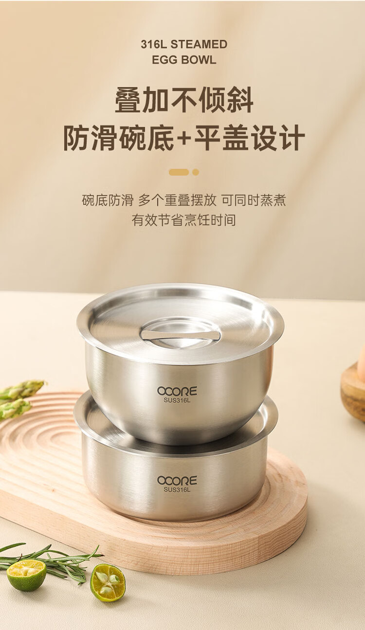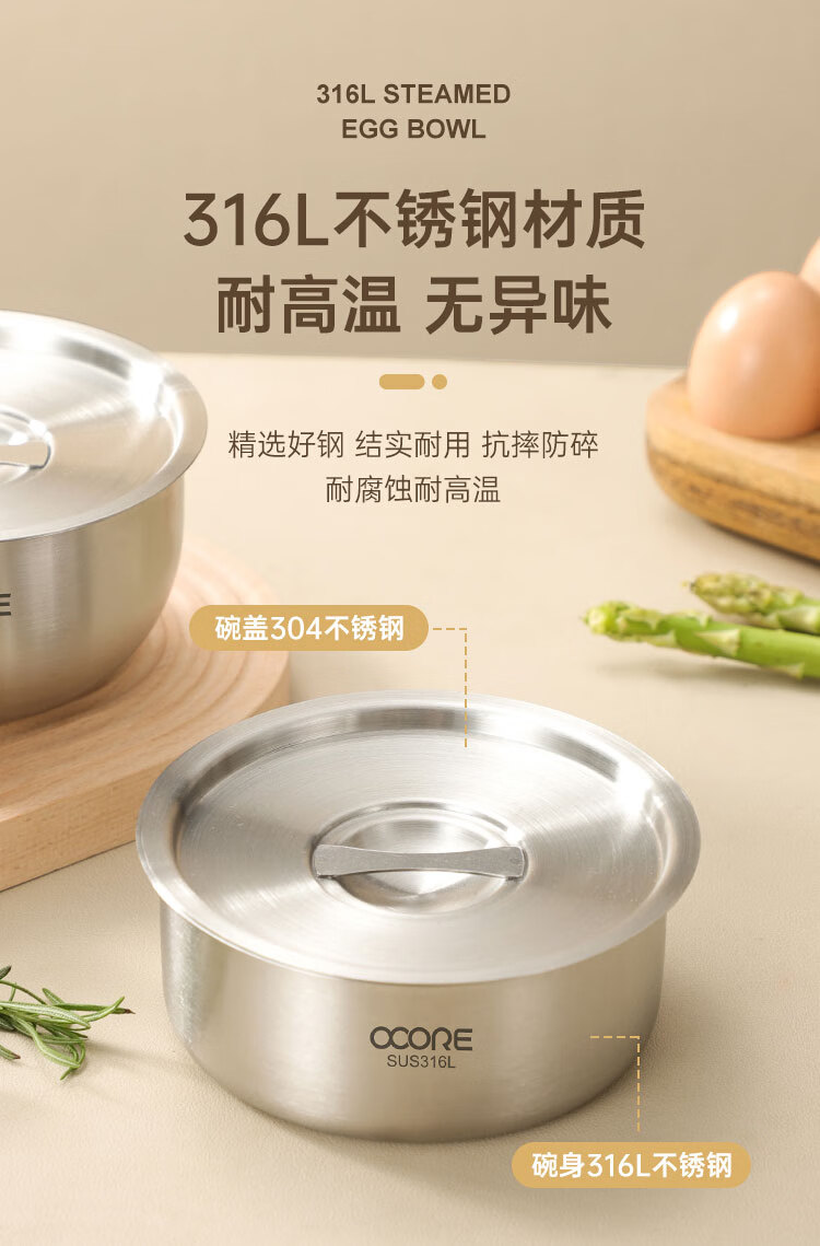Material-core 316L stainless steel household steamed egg bowl, food-grade steaming bowl, flat-bottomed steamed egg special pot, stew pot, steaming pot, steamed rice, right-angle steamed egg bowl 500ml