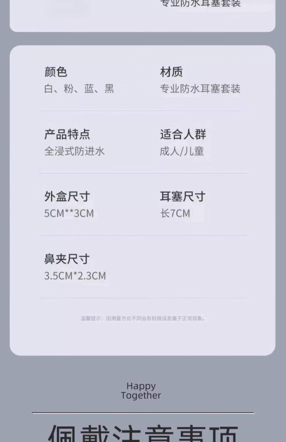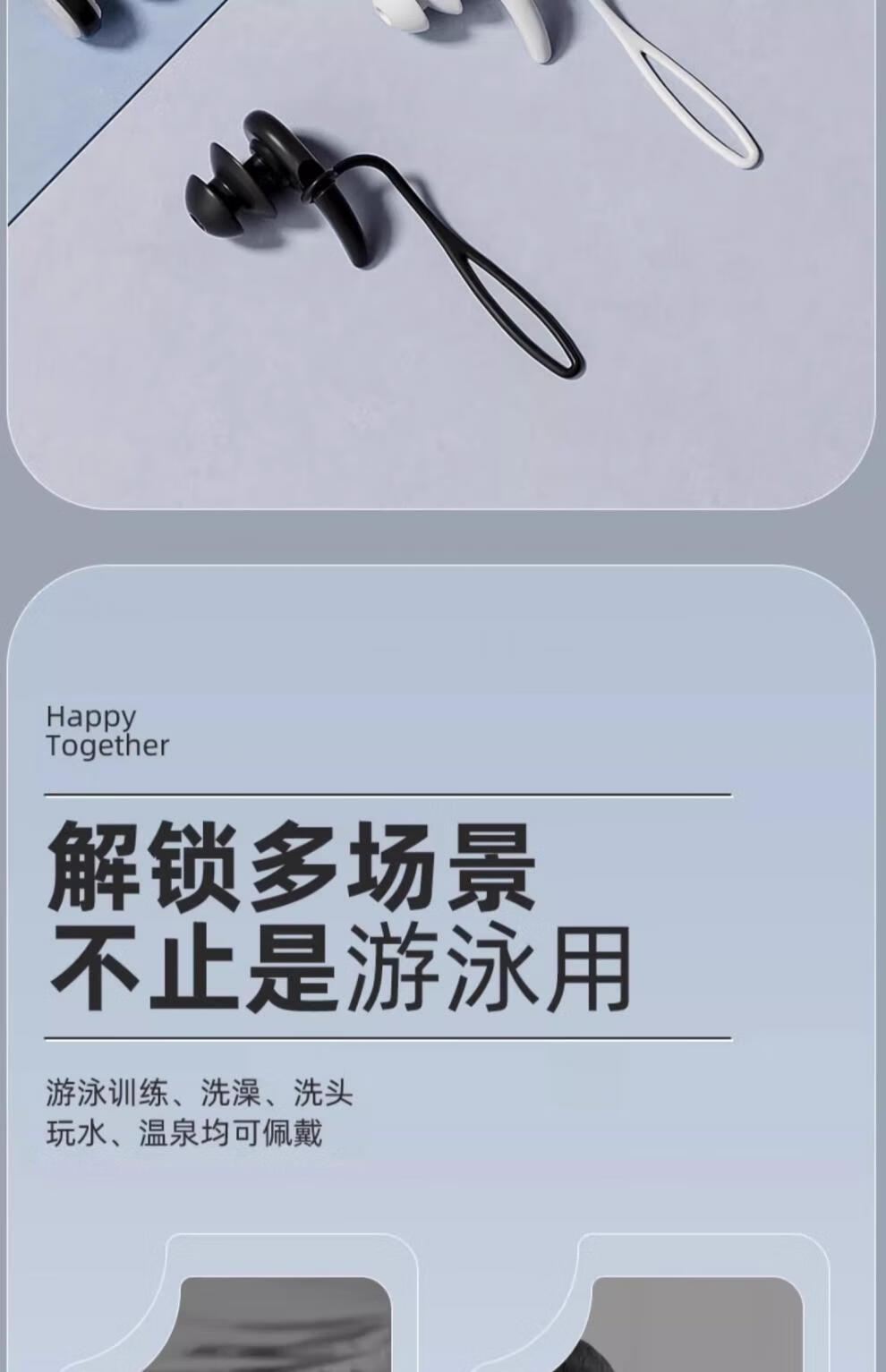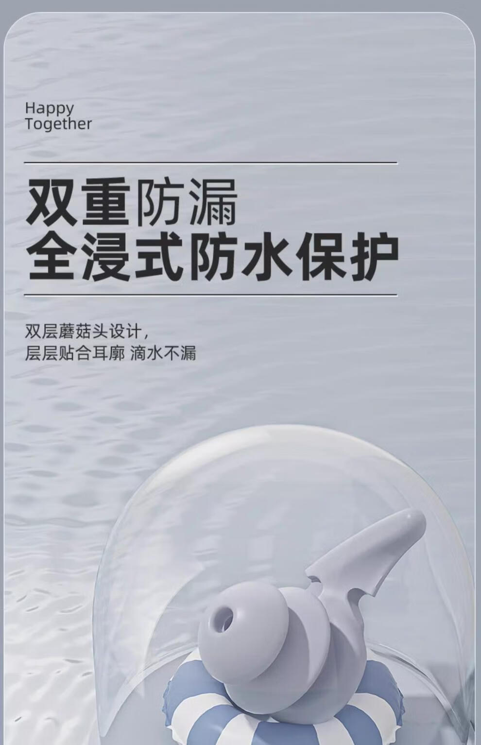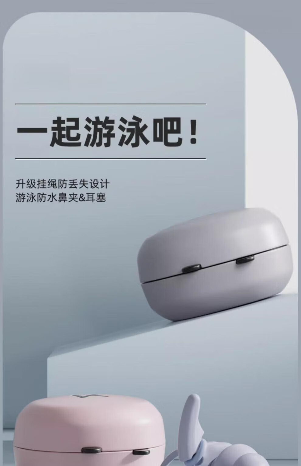 LISM swimming earplugs waterproof, anti-otitis media, anti-ear water intrusion artifact earplugs nose clip swimming equipment crystal white single earplug detachable lanyard earplugs