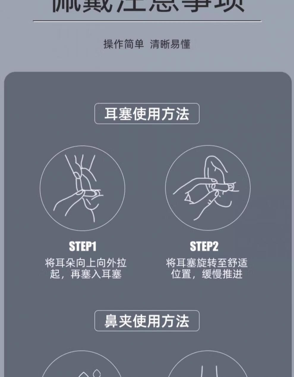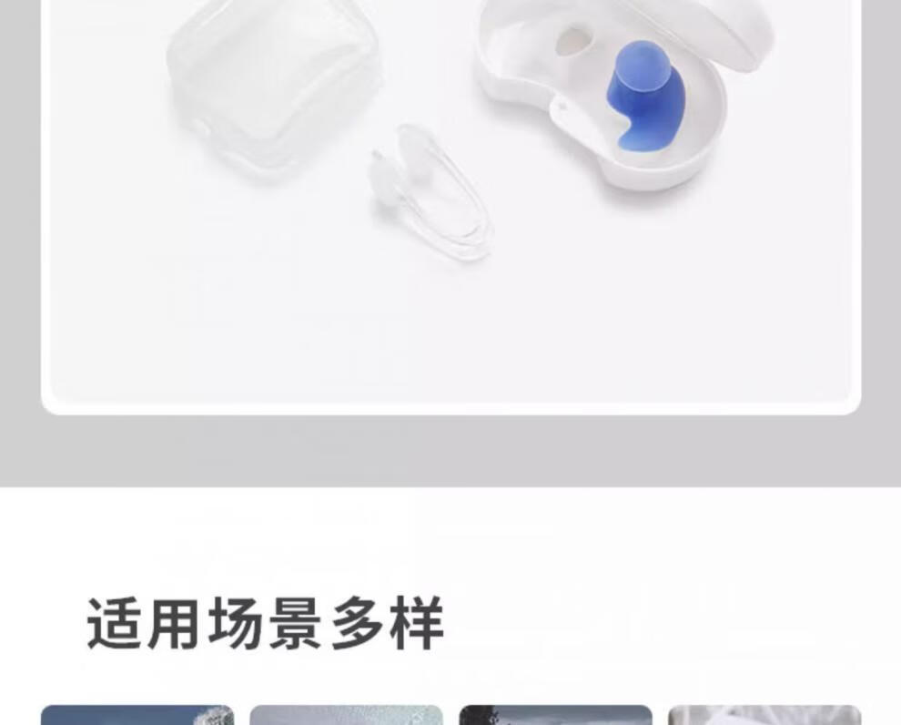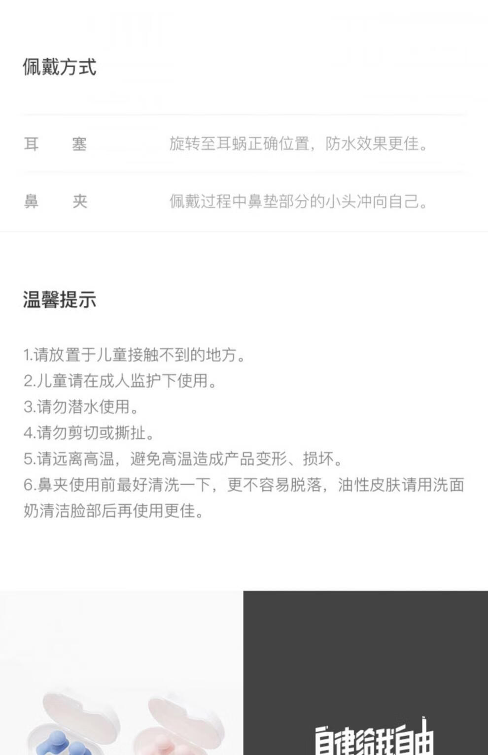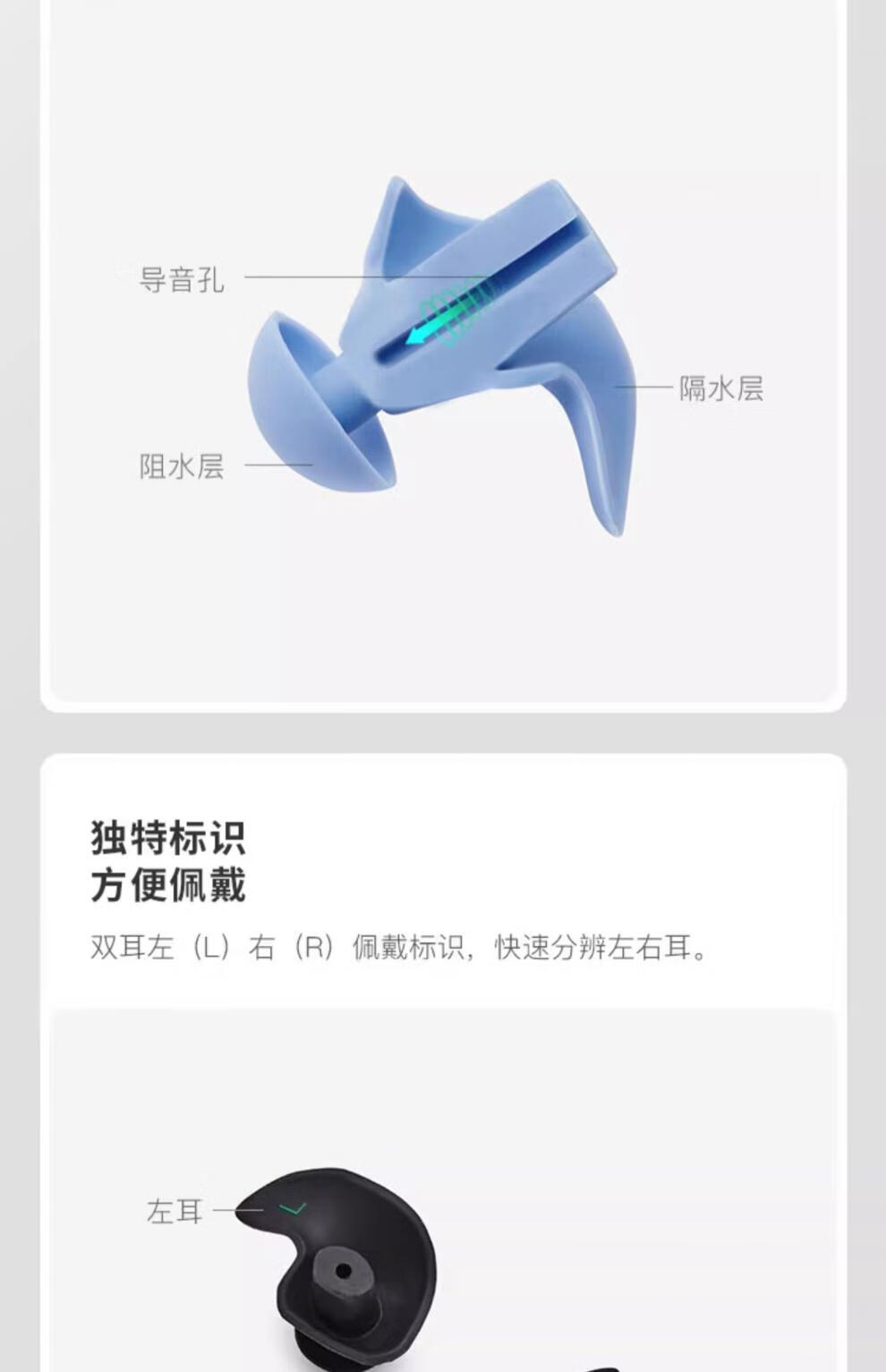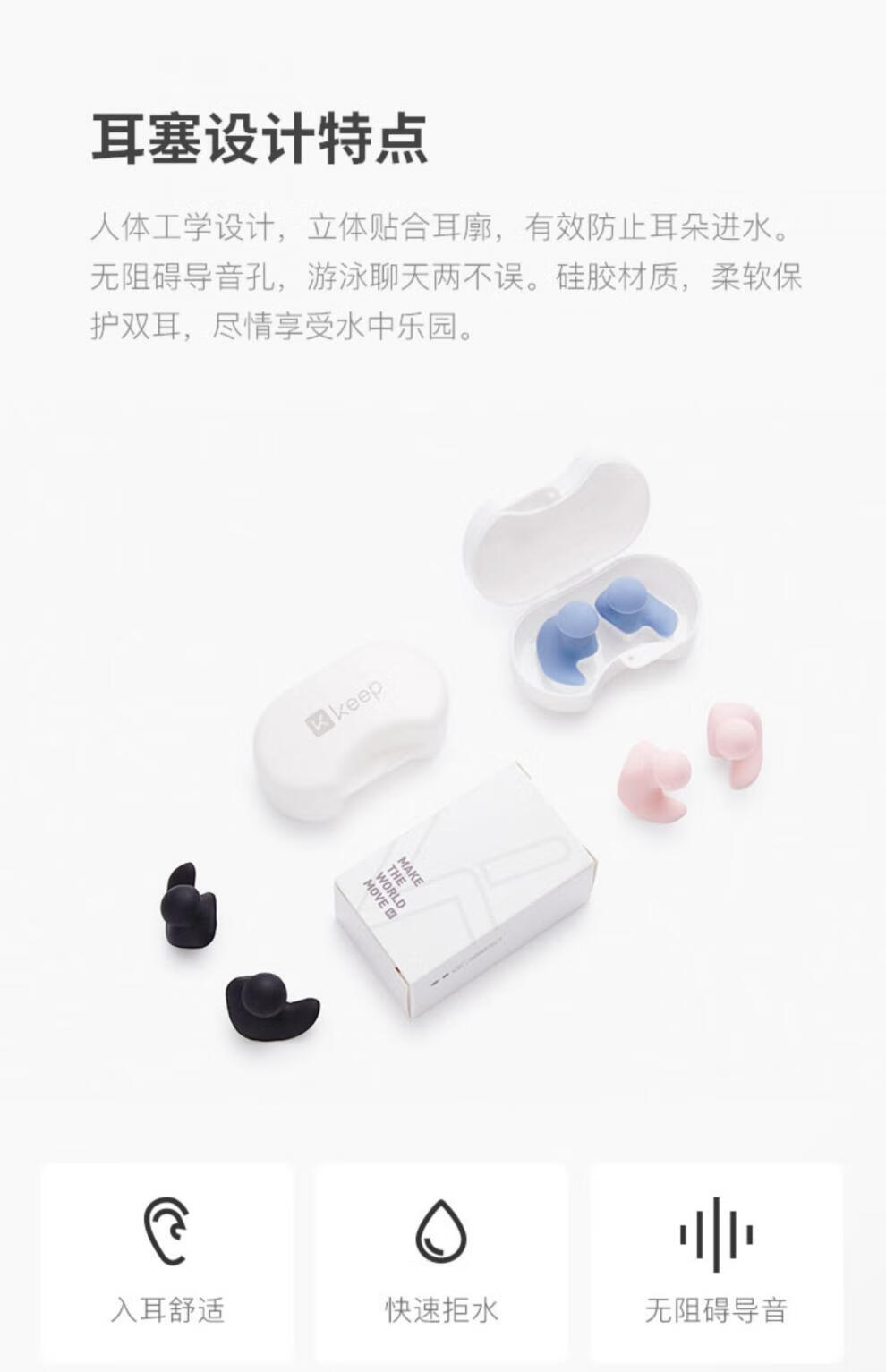 LISM swimming earplugs waterproof, anti-otitis media, anti-ear water intrusion artifact earplugs nose clip swimming equipment crystal white single earplug detachable lanyard earplugs