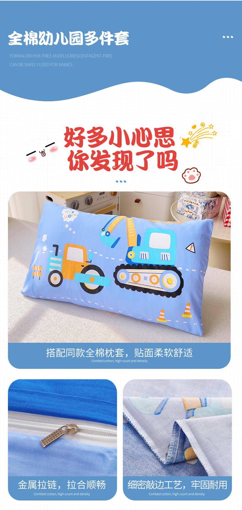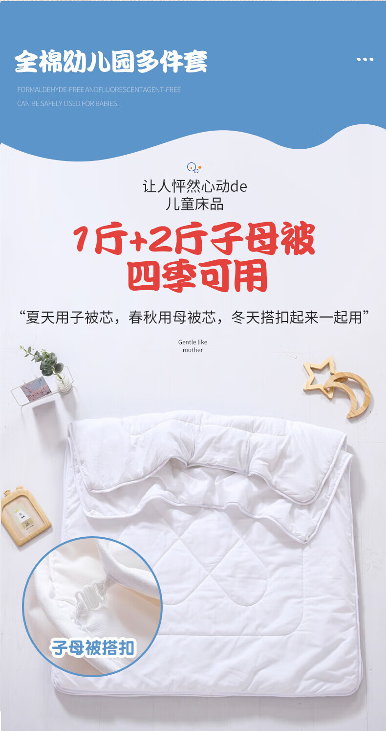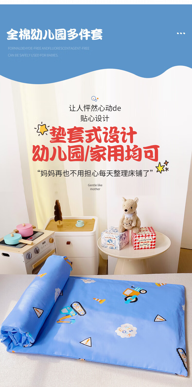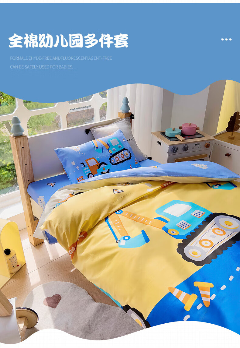 MUJI 100% cotton Class A kindergarten cartoon embroidery three-piece set for babies to enter the kindergarten special quilt cover with core six or seven-piece set Dog companion pure cotton fabric skin-friendly and comfortable children's bed sheet style three-piece set - quilt cover 120*150cm