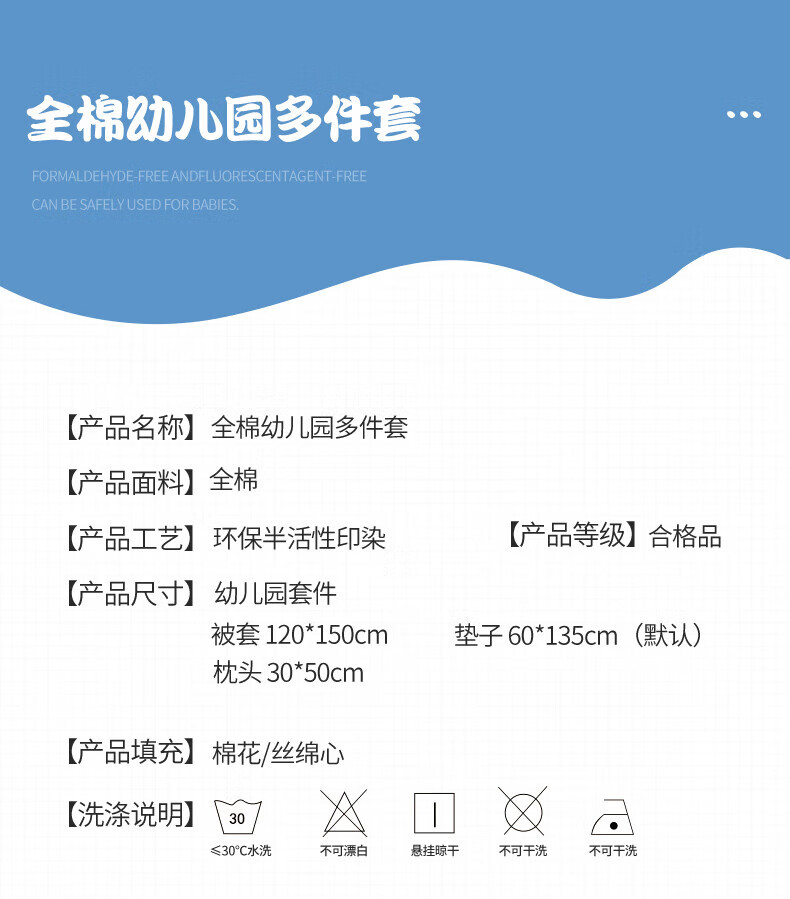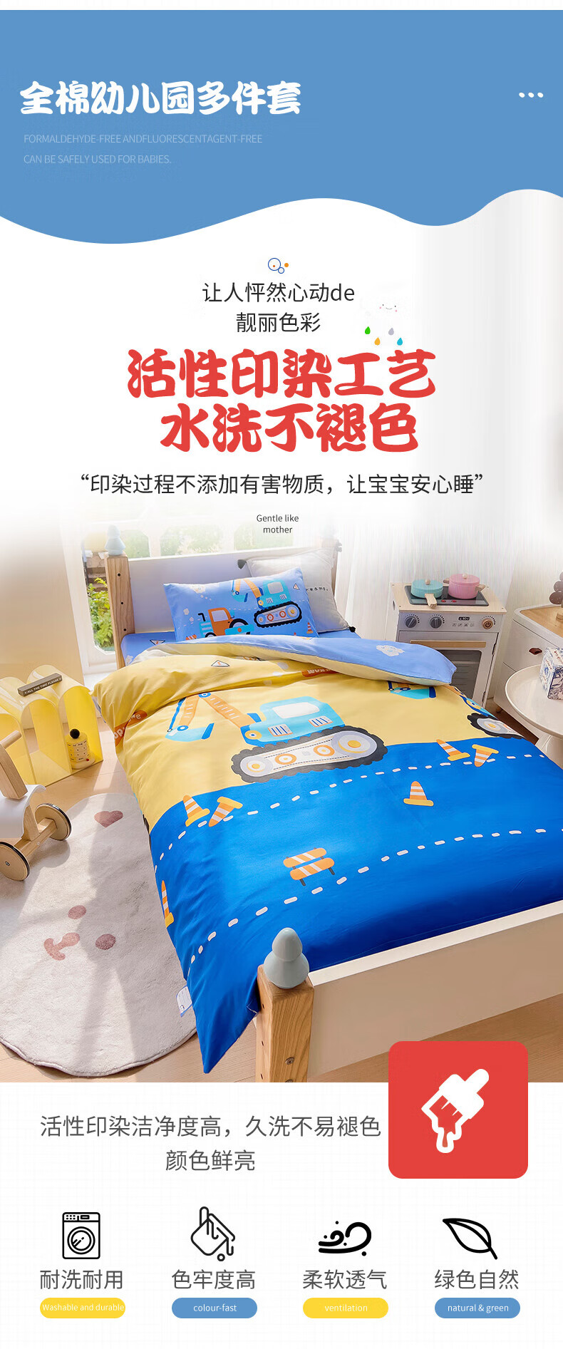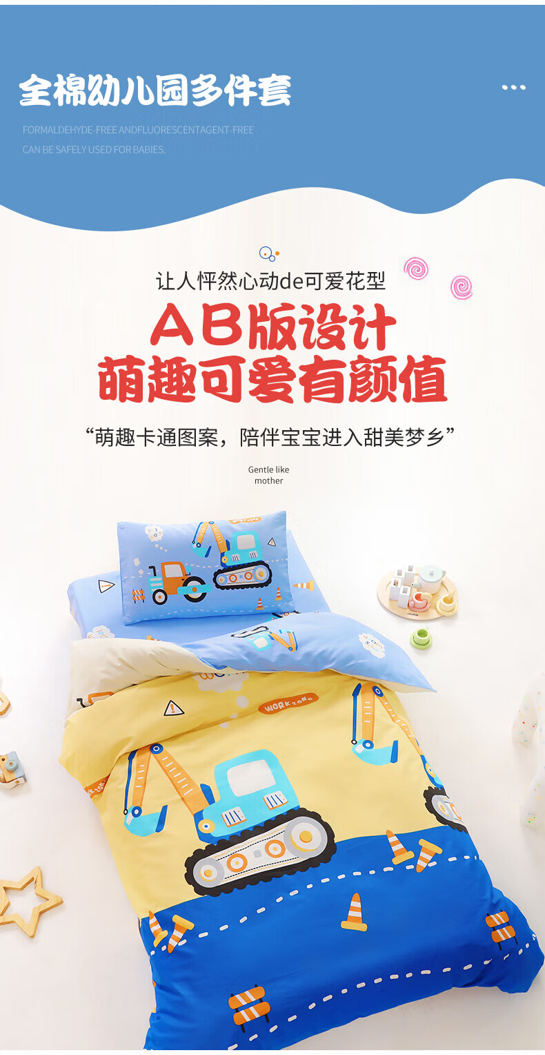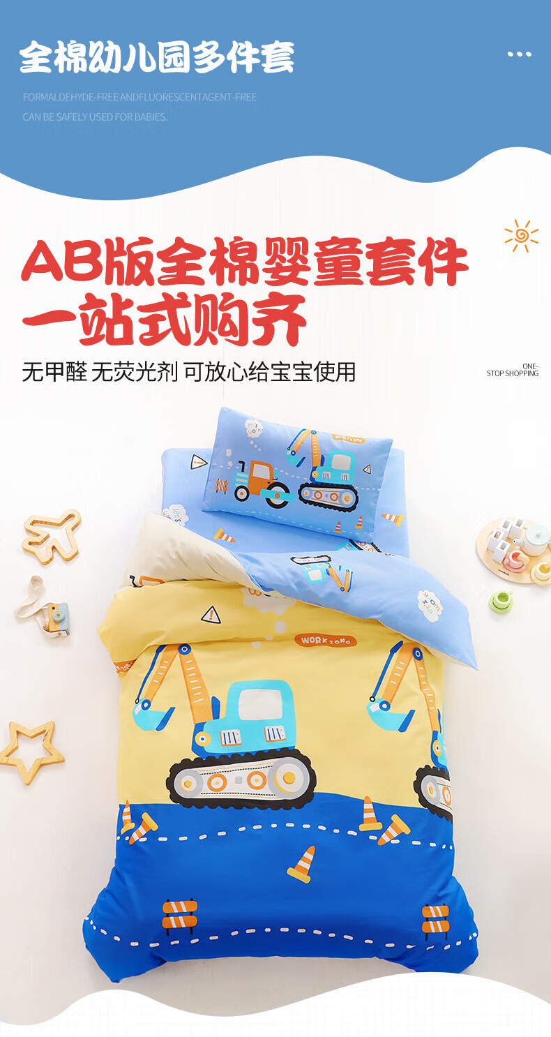 MUJI 100% cotton Class A kindergarten cartoon embroidery three-piece set for babies to enter the kindergarten special quilt cover with core six or seven-piece set Dog companion pure cotton fabric skin-friendly and comfortable children's bed sheet style three-piece set - quilt cover 120*150cm