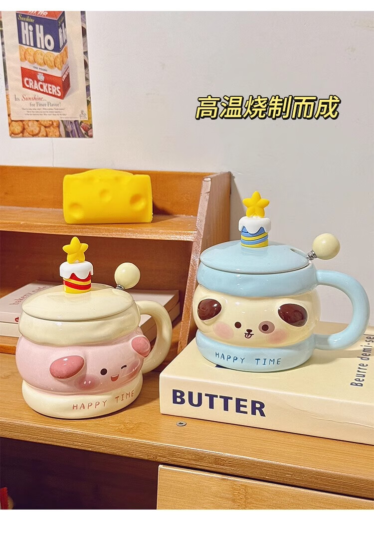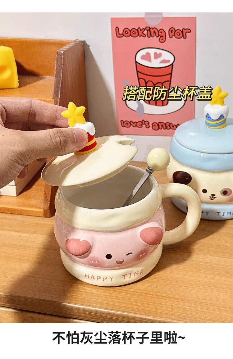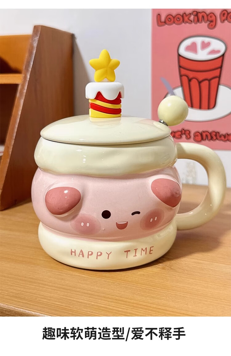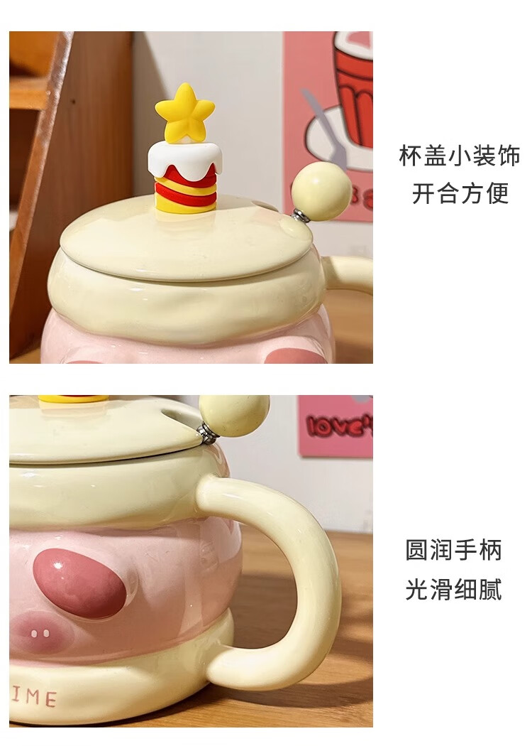 Bo Naling high-looking mug, cute girly heart birthday gift for best friend, ceramic water cup, creative and practical gift, piggy sandwich, portable box