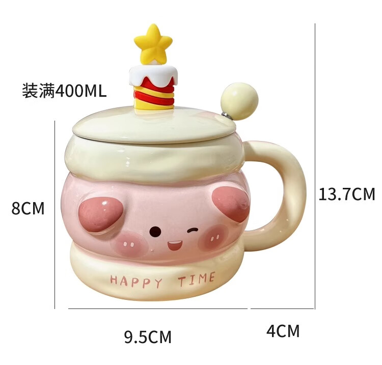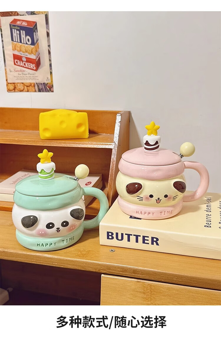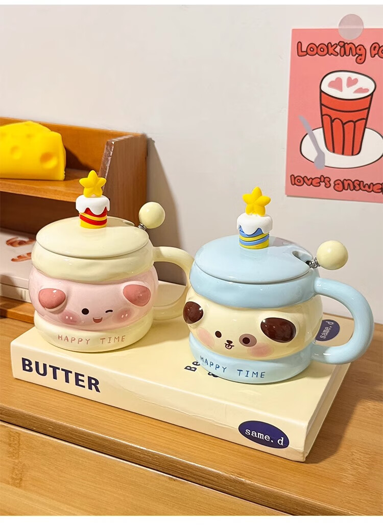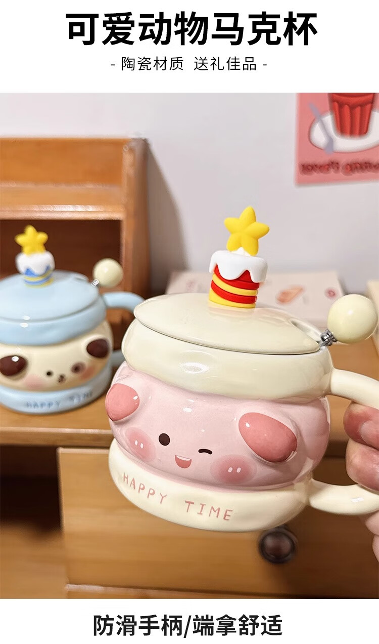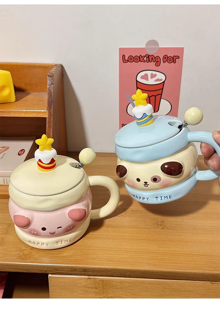 Bo Naling high-looking mug, cute girly heart birthday gift for best friend, ceramic water cup, creative and practical gift, piggy sandwich, portable box
