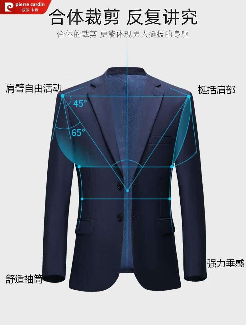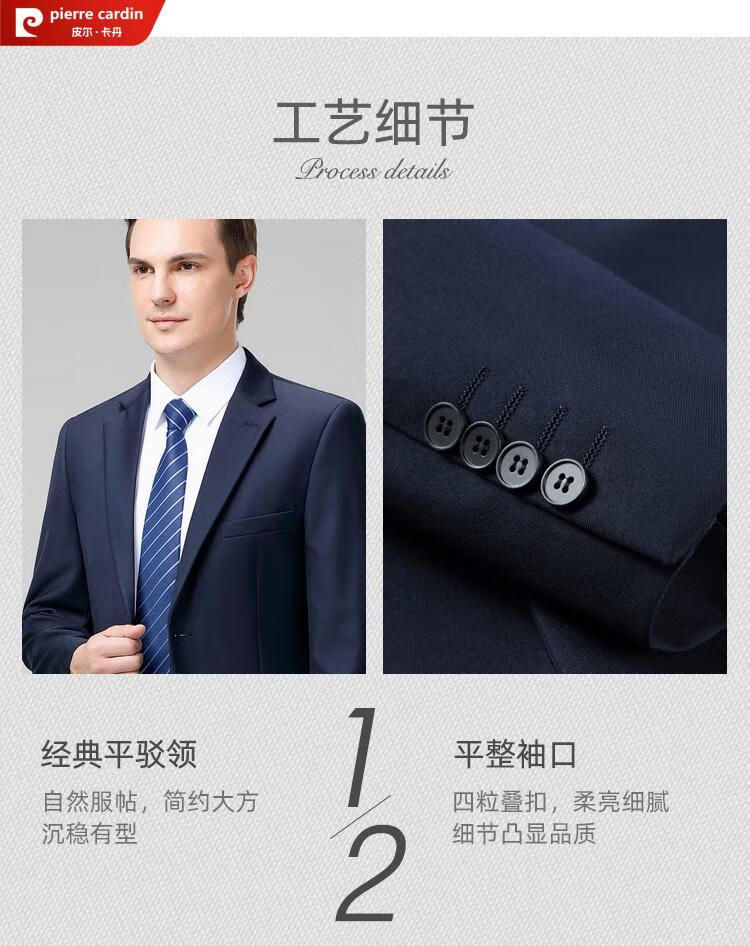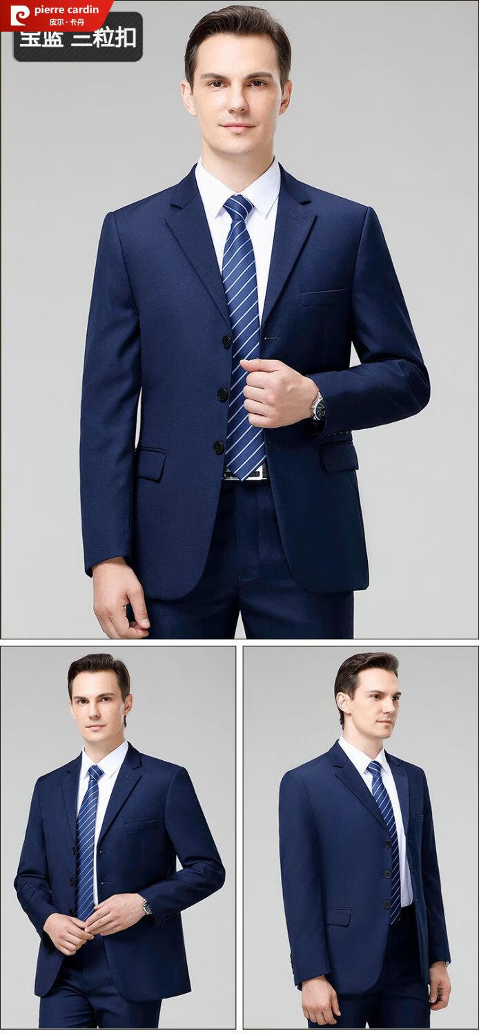 Pierre Cardin high-end no-iron wool men's suit for autumn two-piece business formal suit for middle-aged and elderly fathers, navy three-button, no slit. Please note waist circumference when ordering M 170/88A. Recommended 125-140 Jin Jin equals 0.5 kg