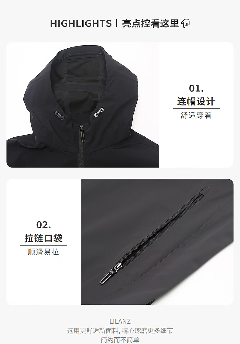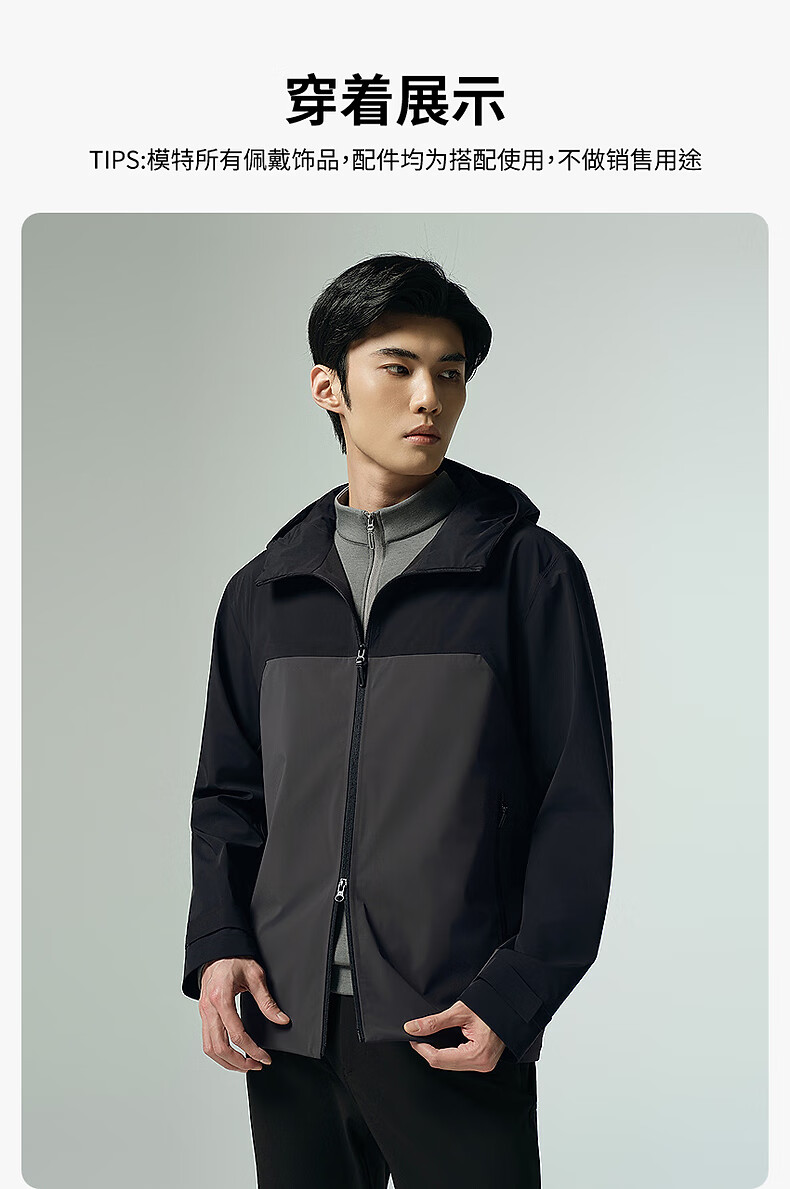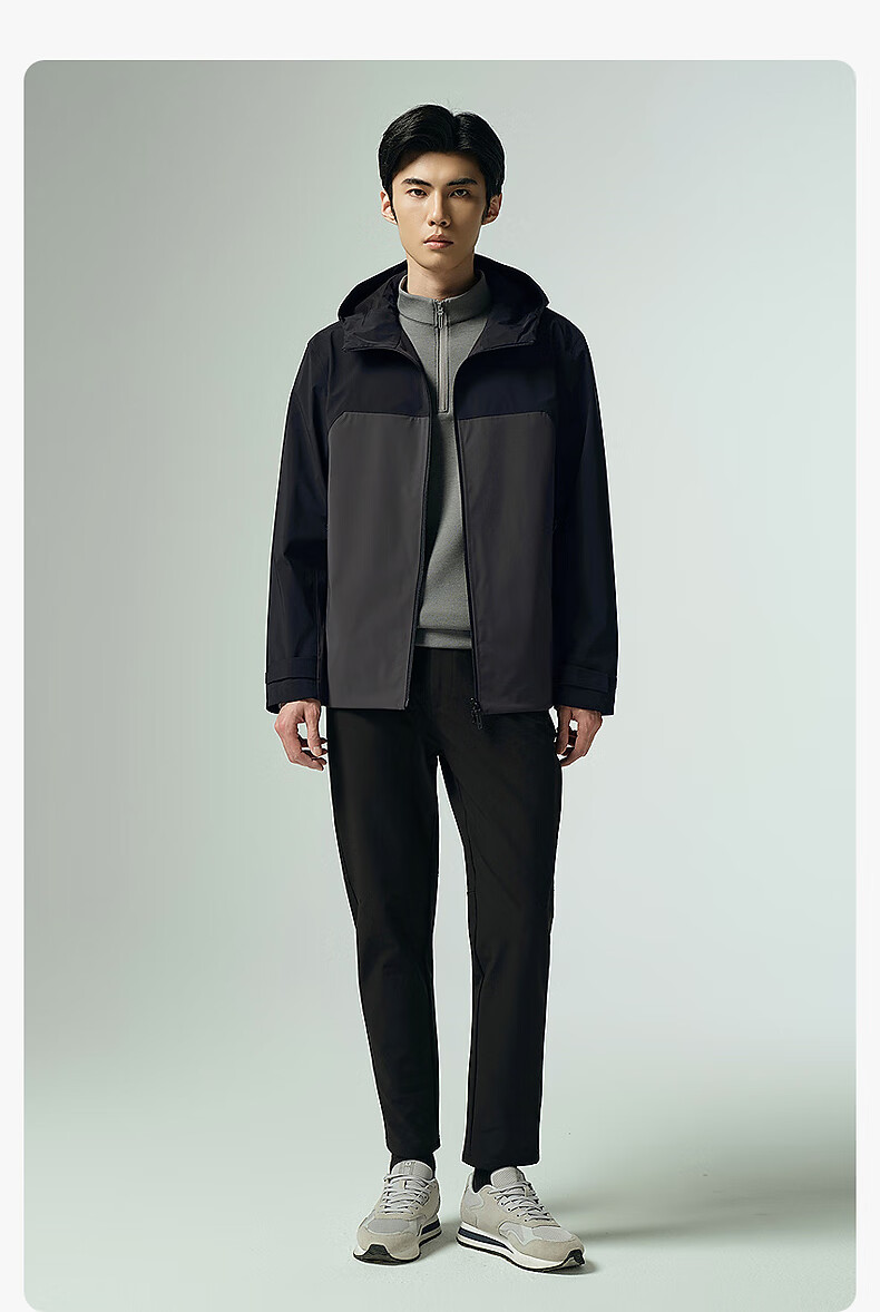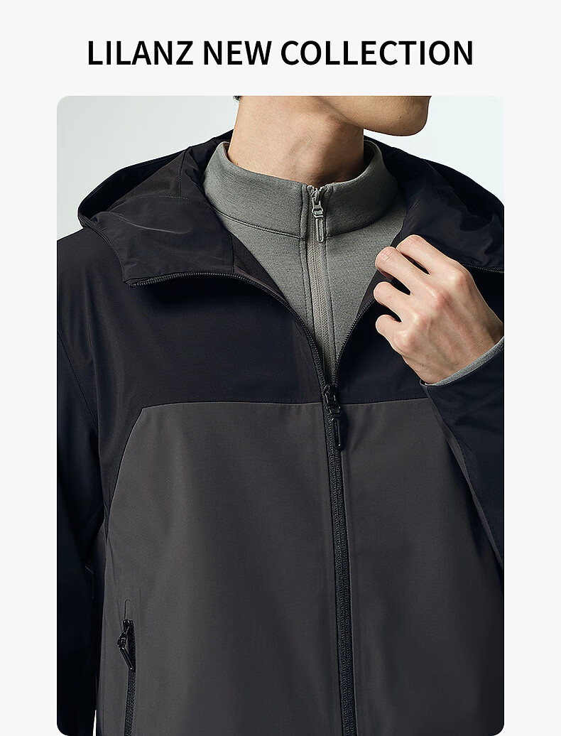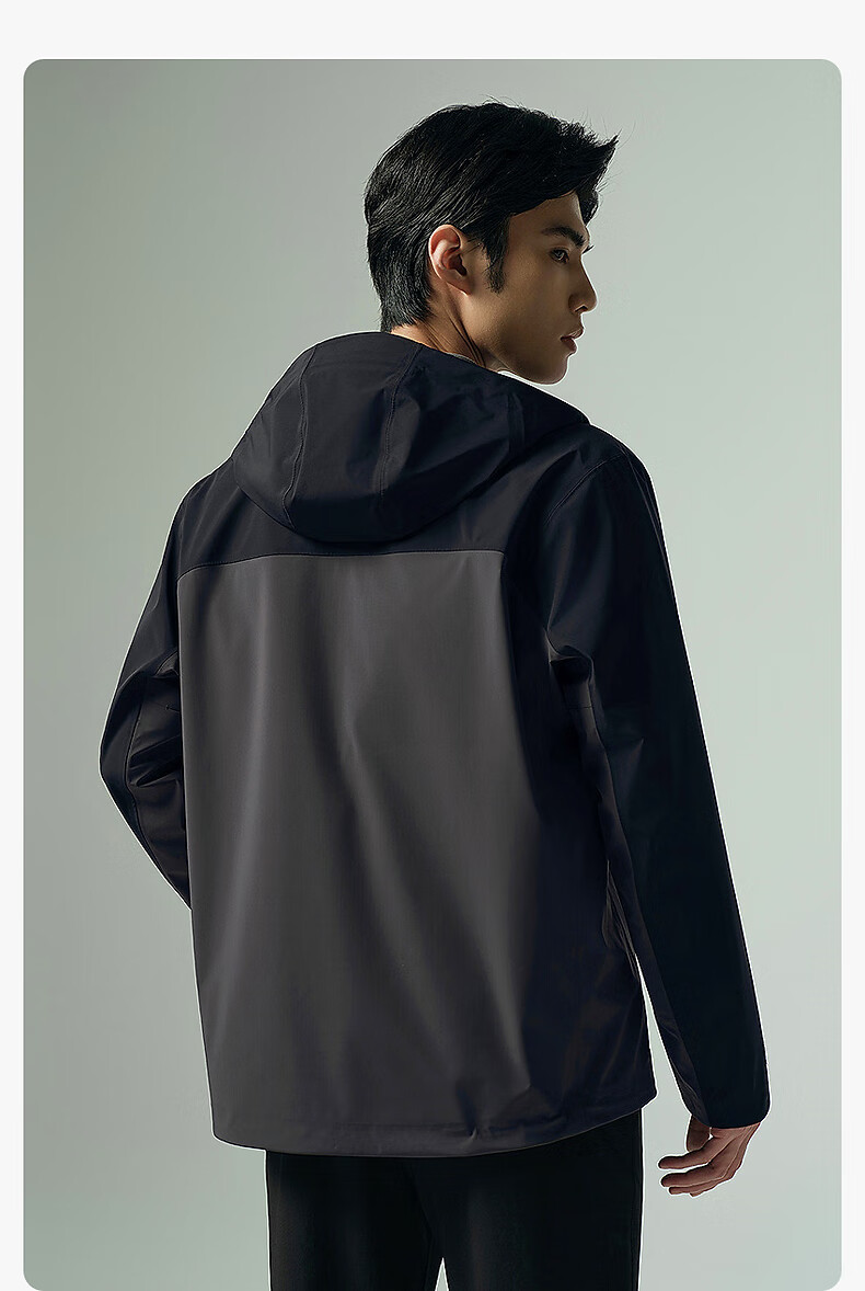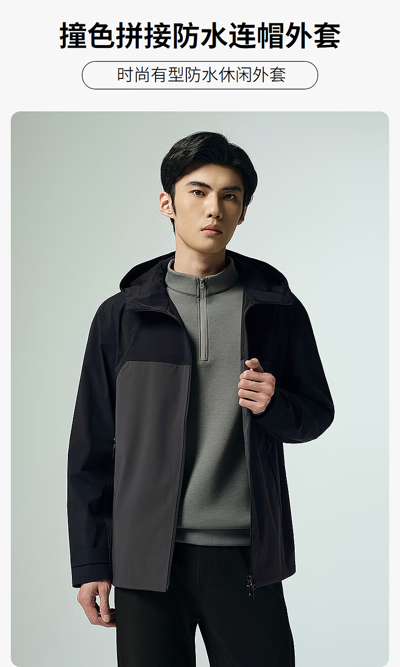 Lilan Waterproof Windbreaker Jacket Men's Hooded Jacket Autumn 2025 New Age-reducing Contrast Color Stitching Windproof Men's Jacket Black (G5QFY8241Y) 2XL 180/96A