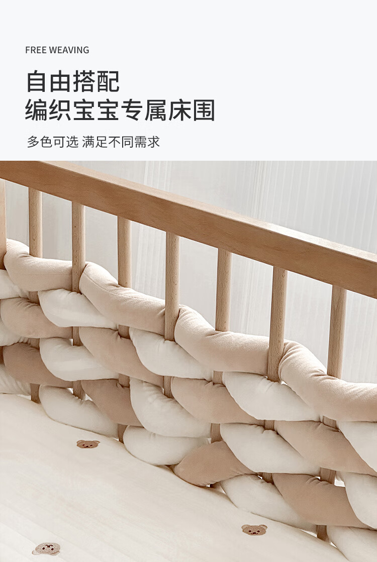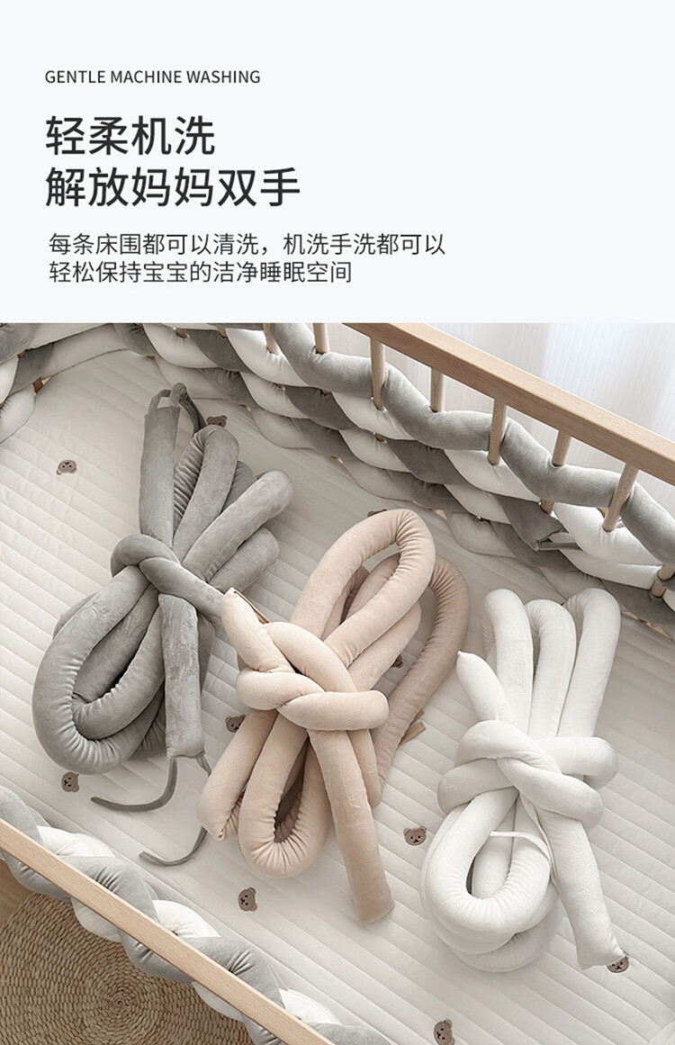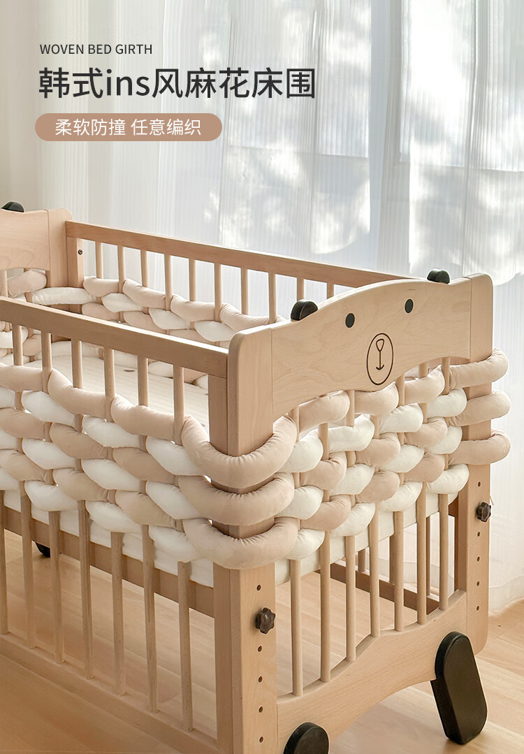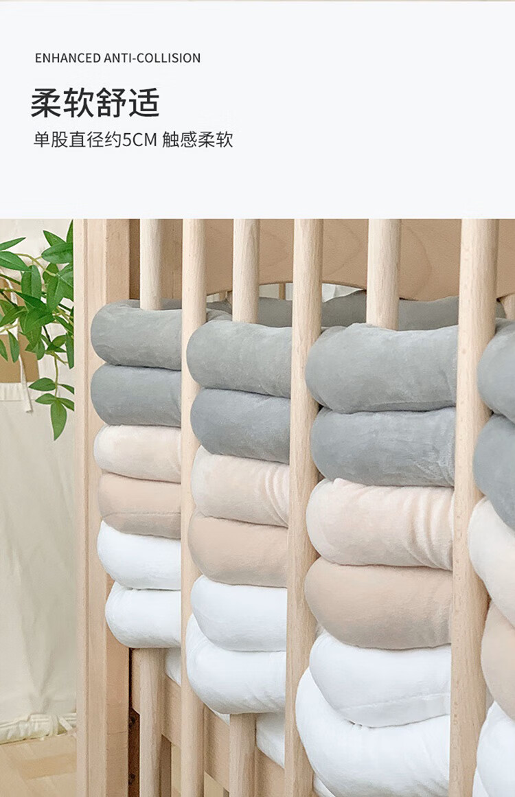 Liaoyuanhuo crib guardrail wrapped edge anti-collision soft-wrapped twist bed fence anti-collision strips children's baby spring and autumn spliced bed fence single strand milky white 5m long Class A quality soft and comfortable