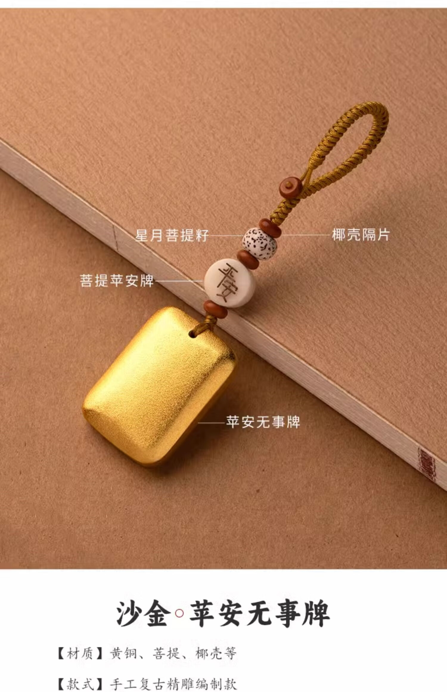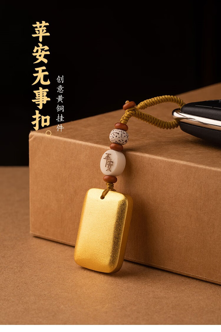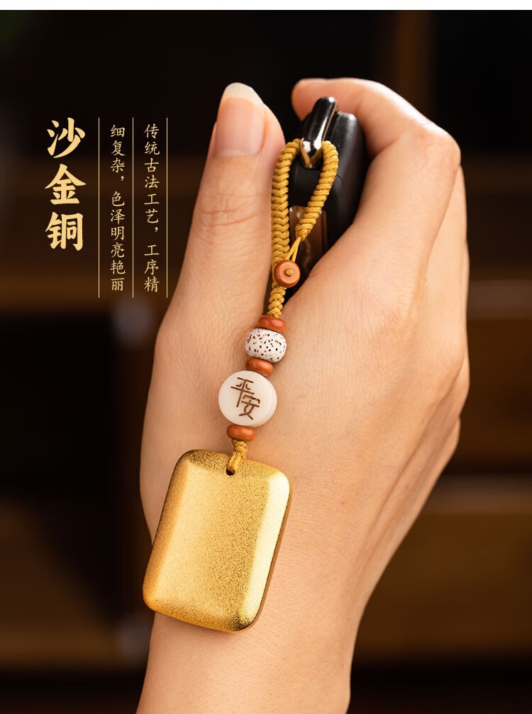 OIDSG Old Phoenix 999 solid pure brass ancient sand gold Ping An Wu Shi brand car key chain pendant pendant for men Ping An Wu Shi brand