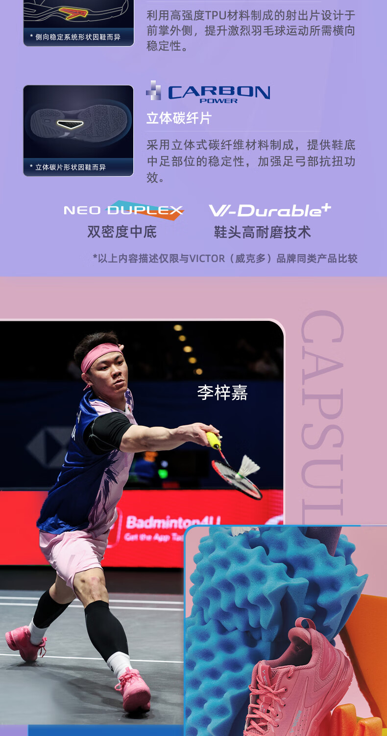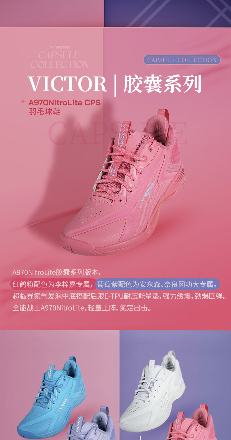 VICTOR victory badminton shoes A970NLCPS capsule series Antonsen Li Zijia Nara model A970NitroLitecps I flamingo powder 46