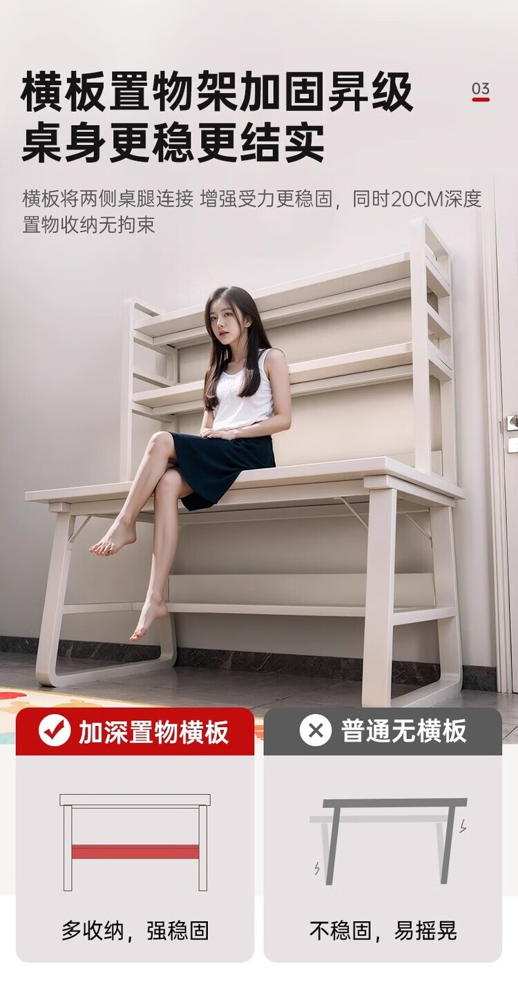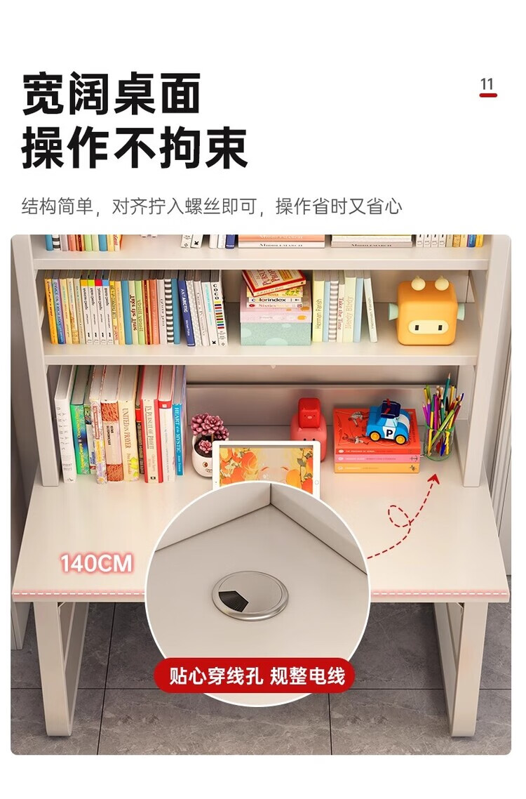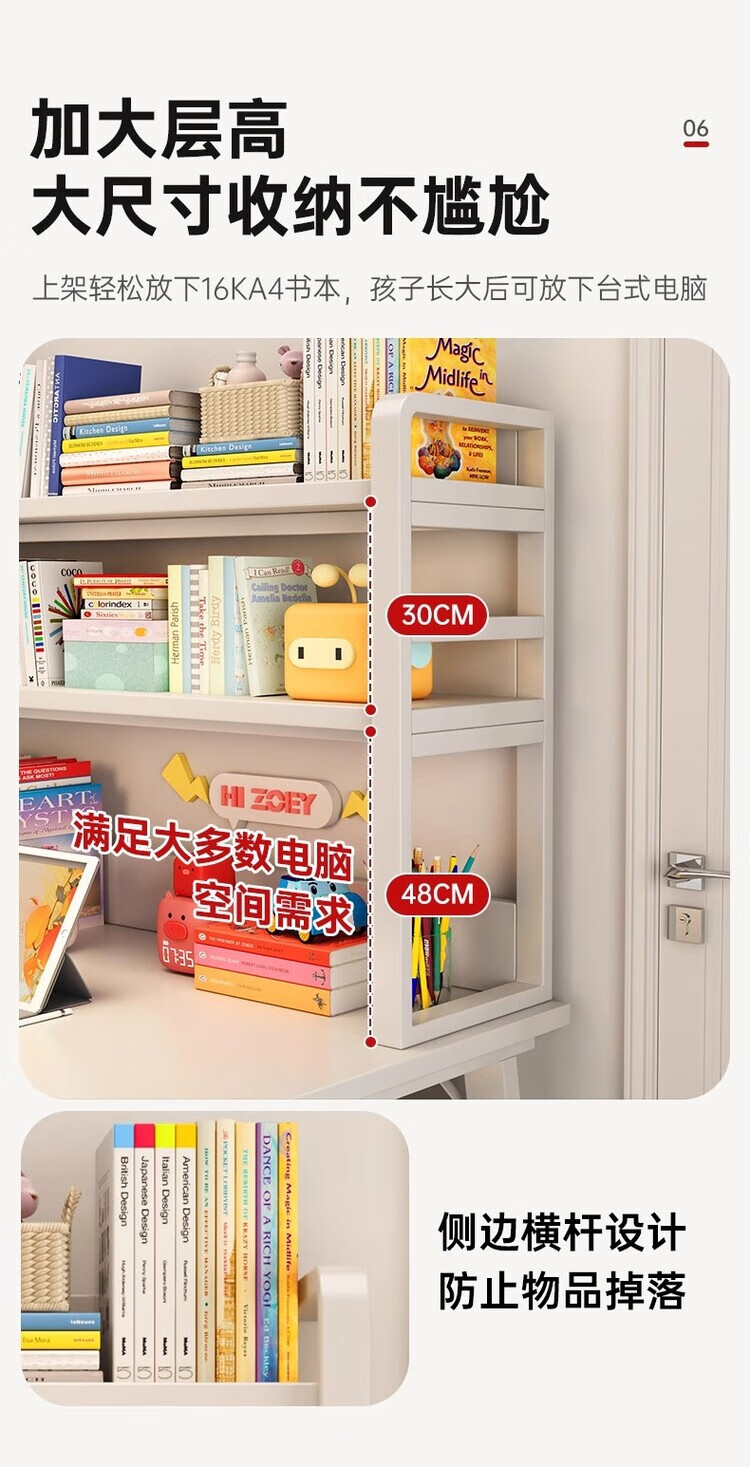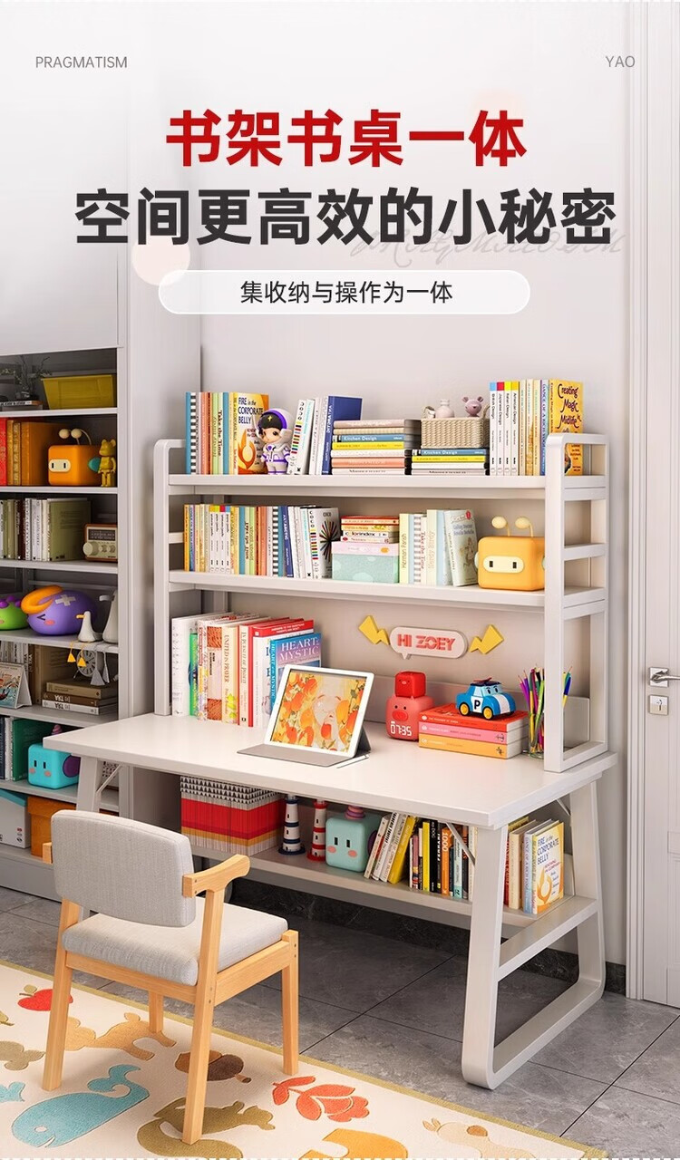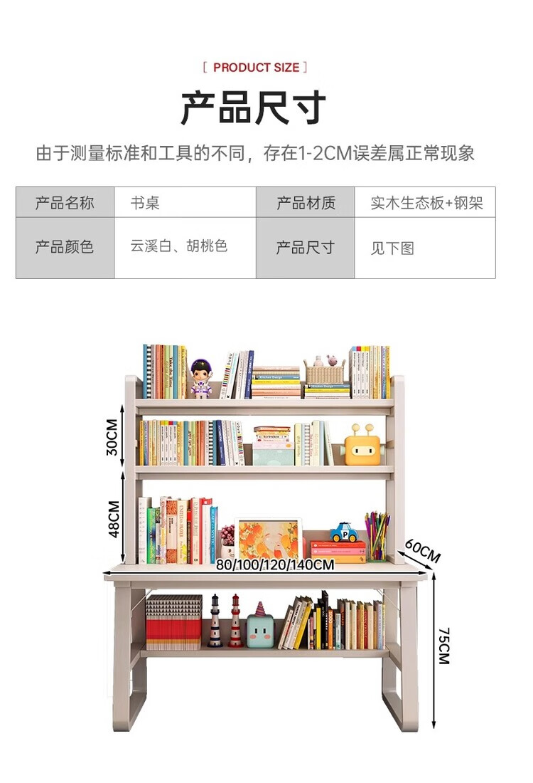 Desk bookshelf integrated table home desk middle school and high school students study table solid wood core computer table bedroom desk three-layer bookshelf-high density board | hazy walnut 80CM
