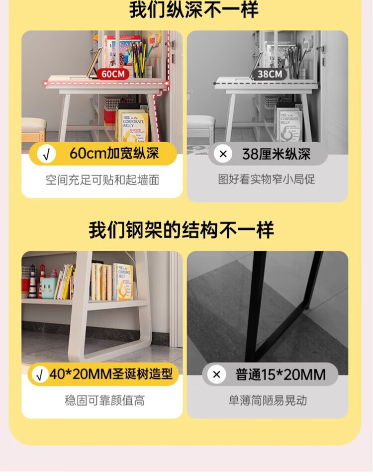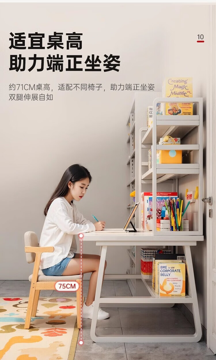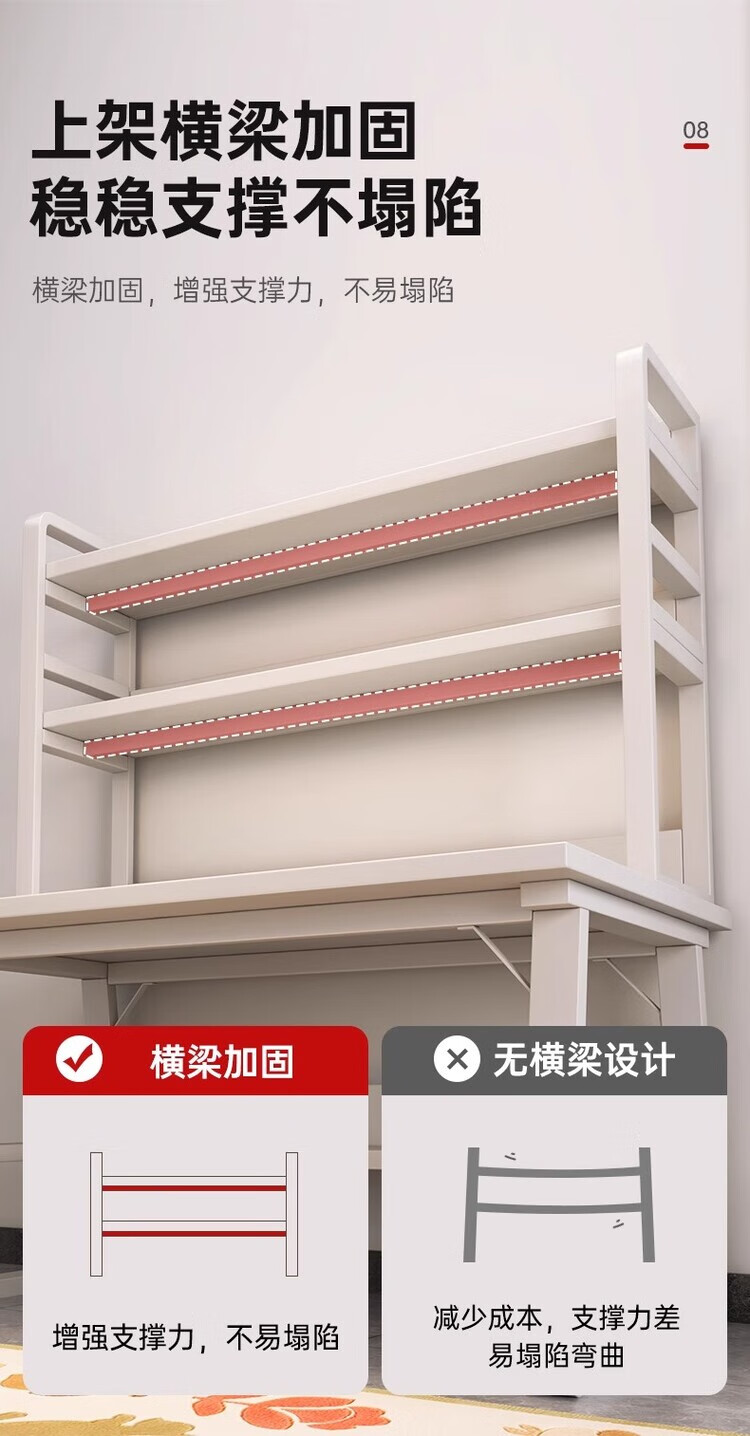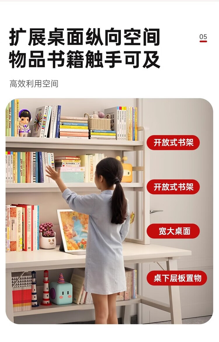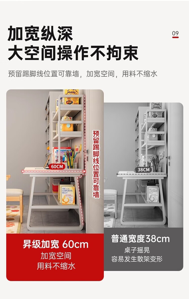 Desk bookshelf integrated table home desk middle school and high school students study table solid wood core computer table bedroom desk three-layer bookshelf-high density board | hazy walnut 80CM