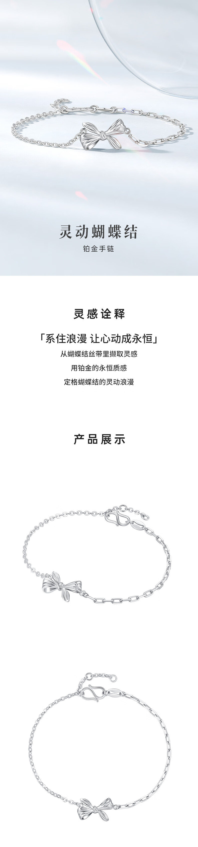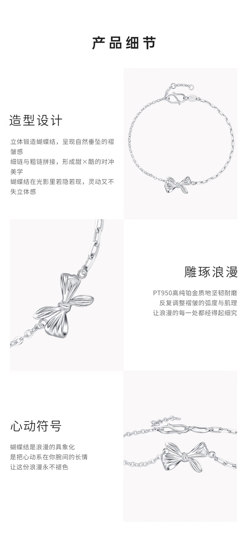 Chao Acer Bow Platinum Bracelet Women's PT950 Platinum Bracelet Stacked Birthday Gift Priced Labor Cost 380 Yuan 3.65g, Chain Length Approximately 16cm + Tail Chain
