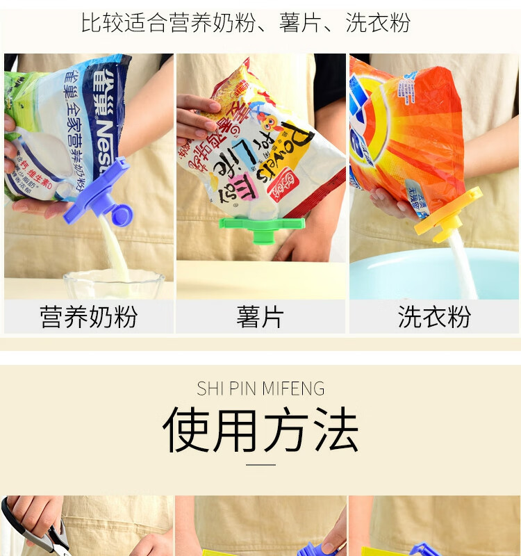 Sealing clip, food moisture-proof and fresh-keeping snack clip, kitchen seasoning sealing spout, milk powder plastic bag sealing clip, 5 pieces, random colors