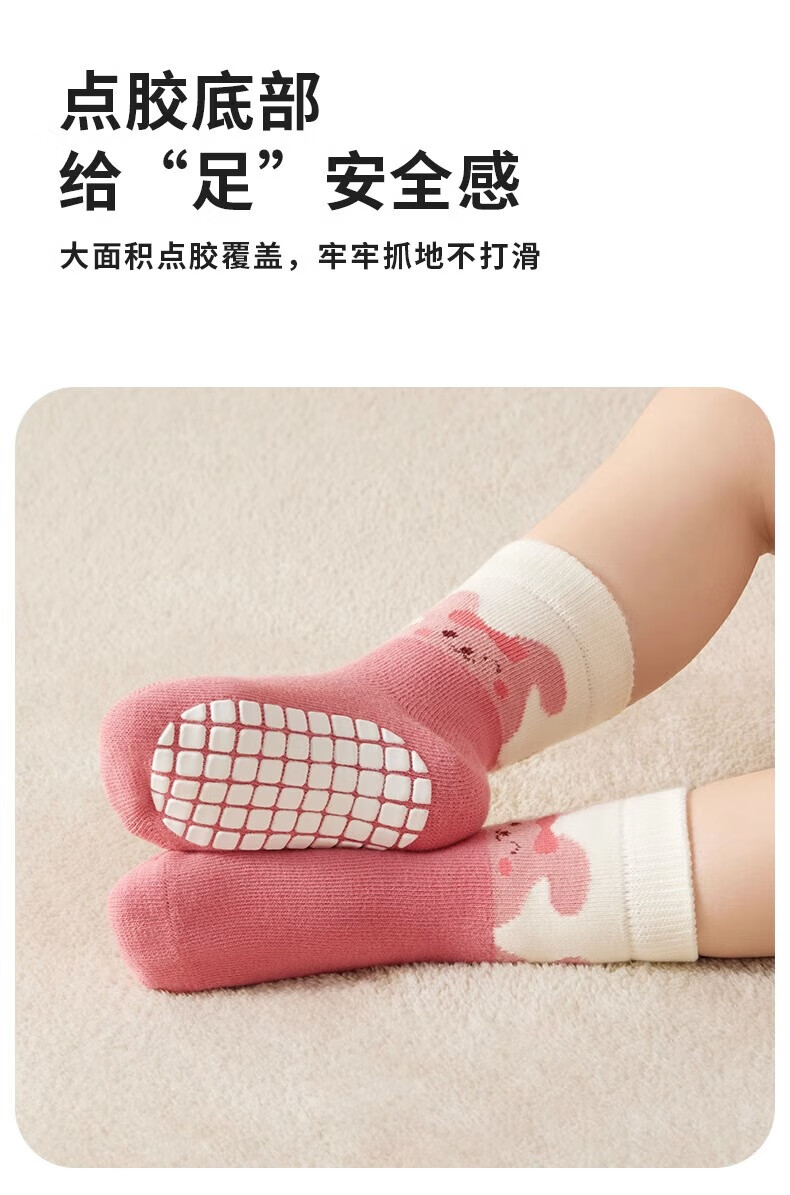 AIBEDILA baby floor socks for infants and children in spring and summer, pure cotton for all seasons, boys and girls, toddler shoes and socks, non-slip mid-calf socks, small forest, non-slip, cool, non-constricting, 3 pairs, one size fits all, recommended foot length 9-11cm