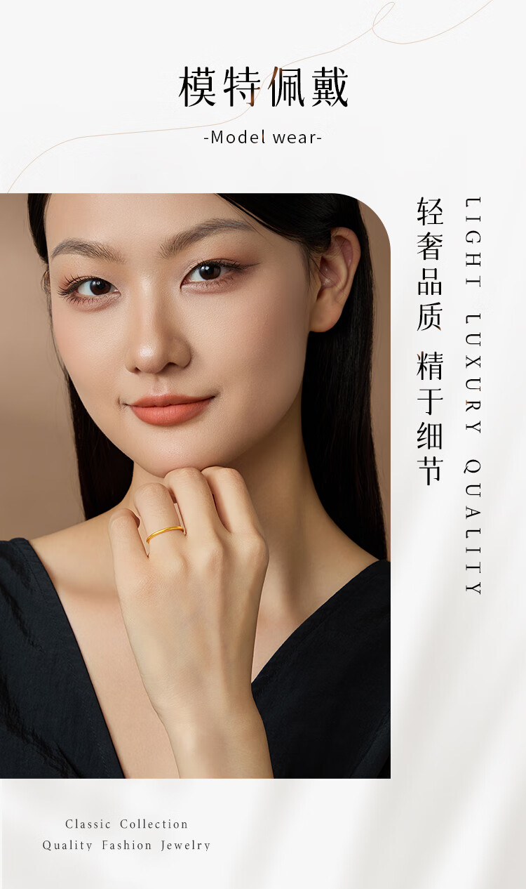 Laomiao Sansheng III 18K gold plain ring smooth ring couple rings can be stacked frosted men's and women's rings Chinese Valentine's Day gift 18k gold frosted ring ring #21 about 0.8g