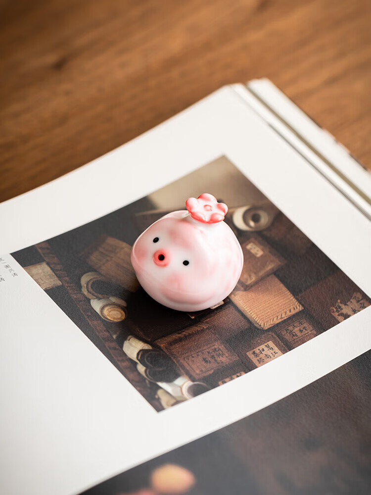 Medium quality Ru kiln bubble pig tea pet ornaments can be used for raising tea players, tea tray decorations, cute and creative tea tray decorations, lard jelly powder Ru tea pet/incense road_bubble pig simple decoration