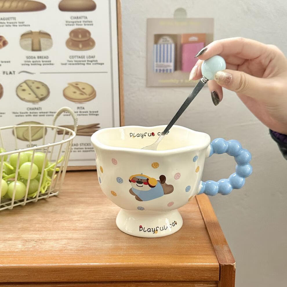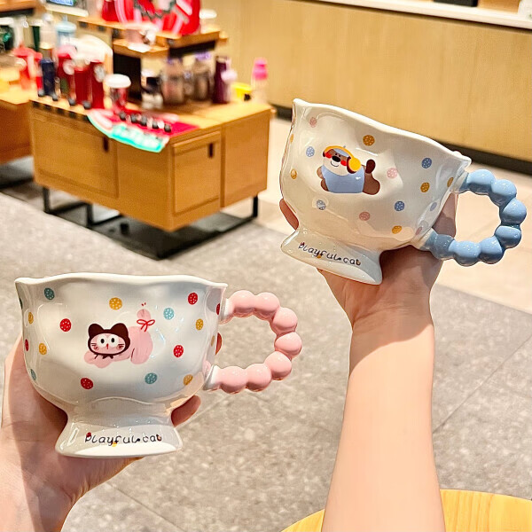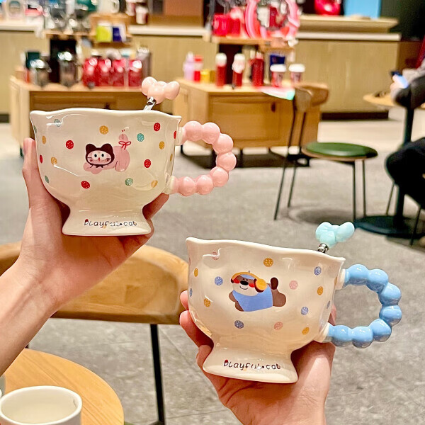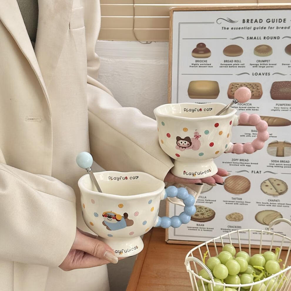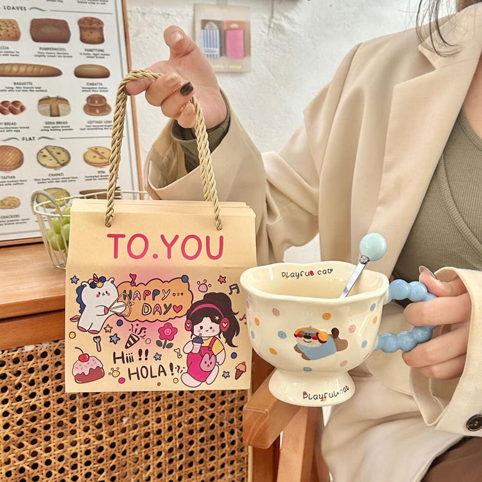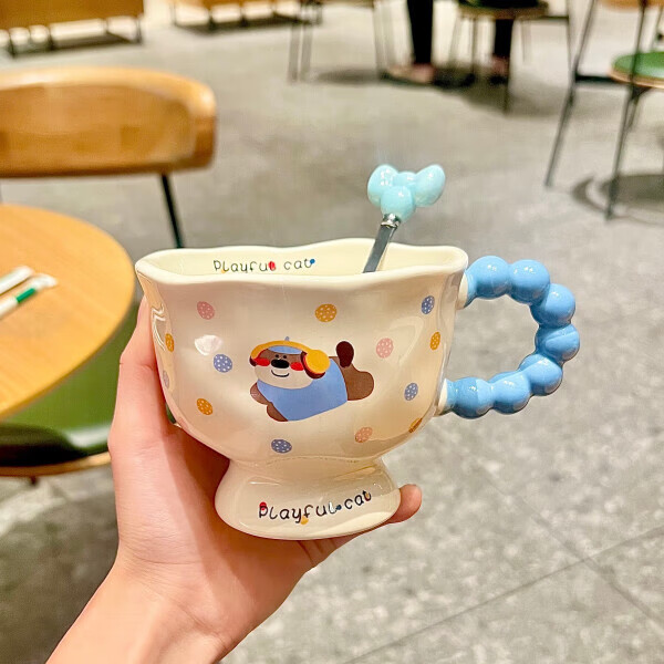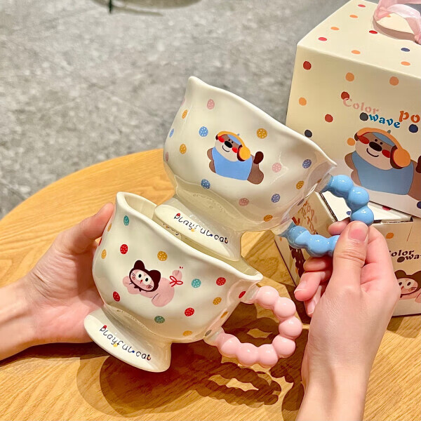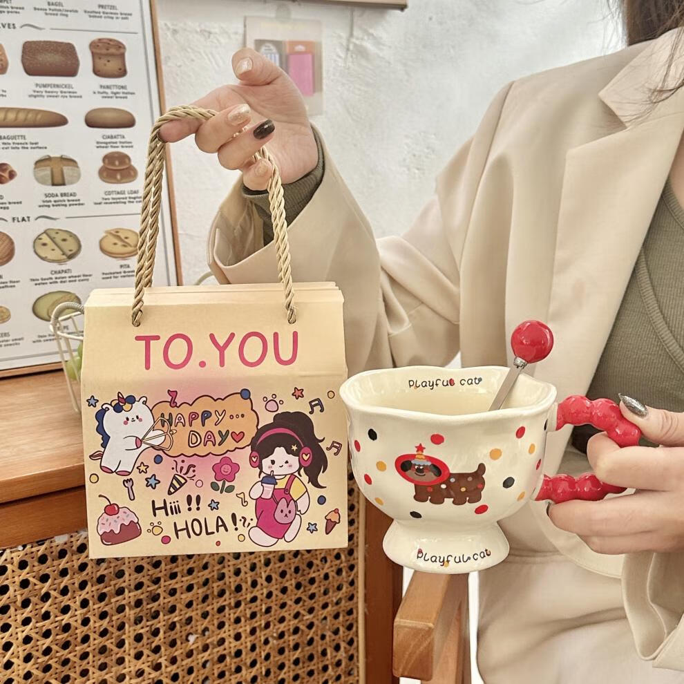 Deer color ceramic mug, good-looking ins style mug, couple water cup, birthday gift for girls, companion gift, blue hooded dog, goblet + spoon + gift box