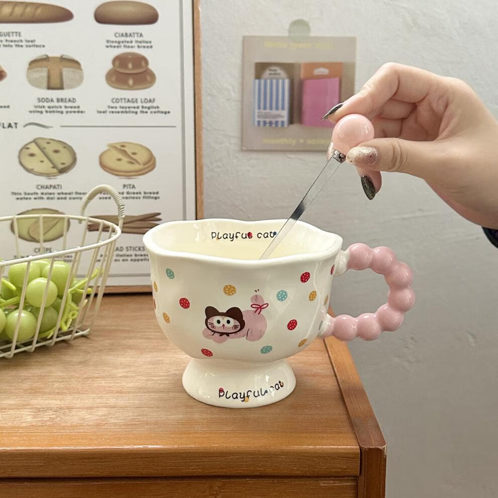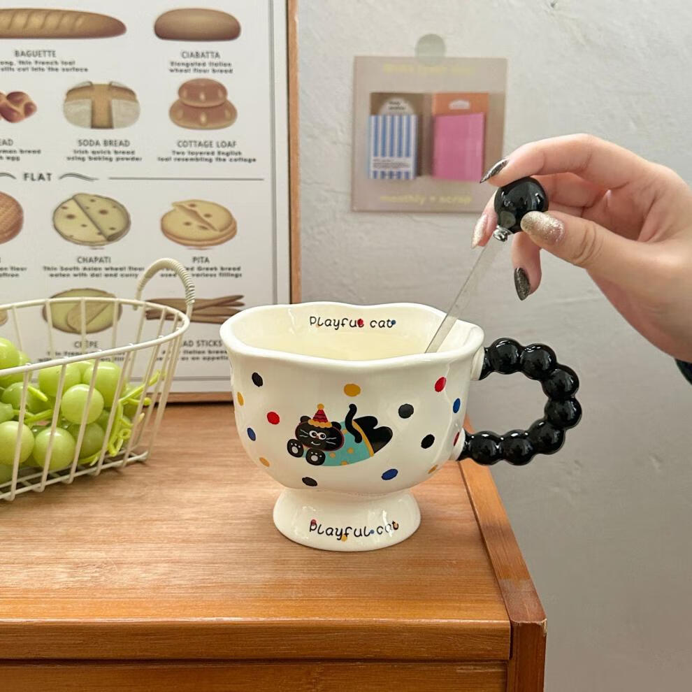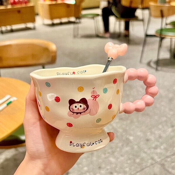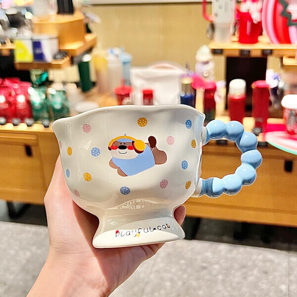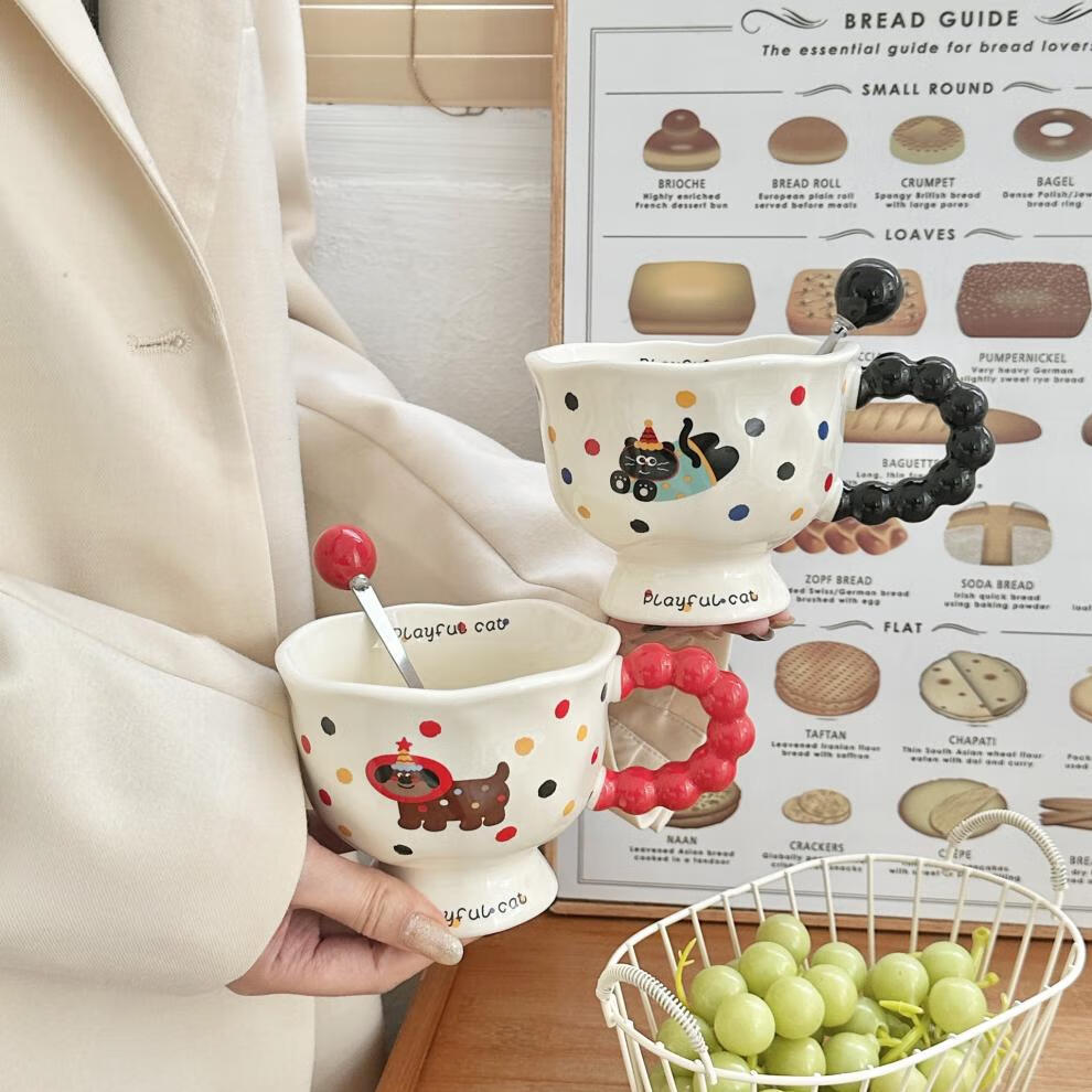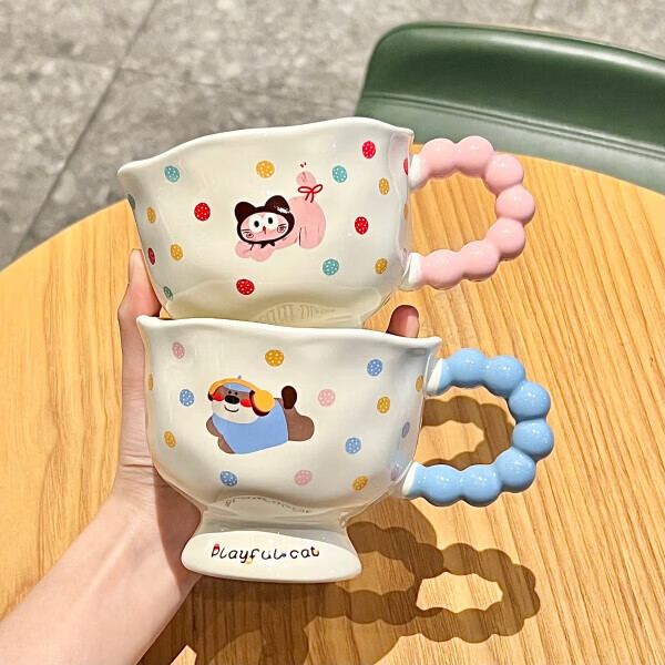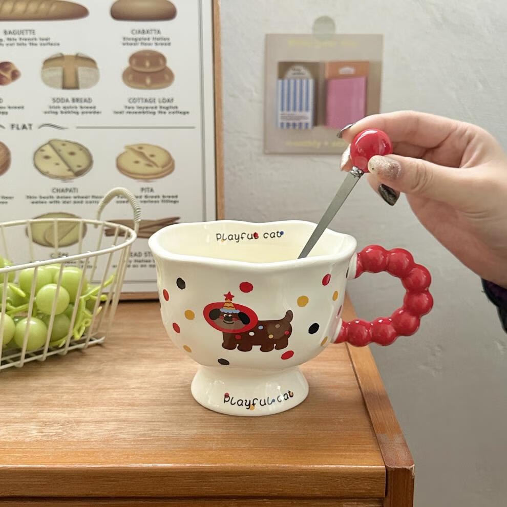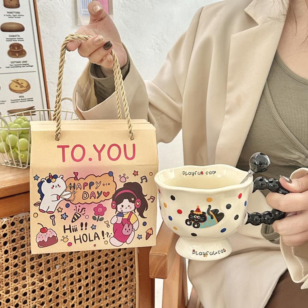 Deer color ceramic mug, good-looking ins style mug, couple water cup, birthday gift for girls, companion gift, blue hooded dog, goblet + spoon + gift box