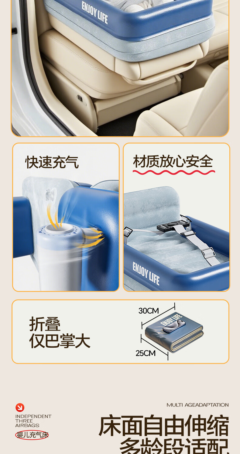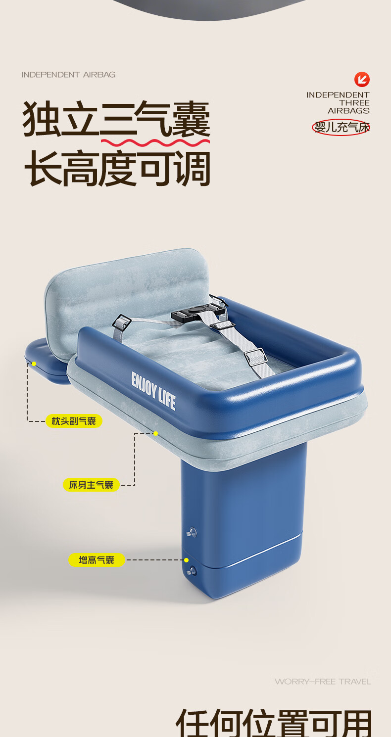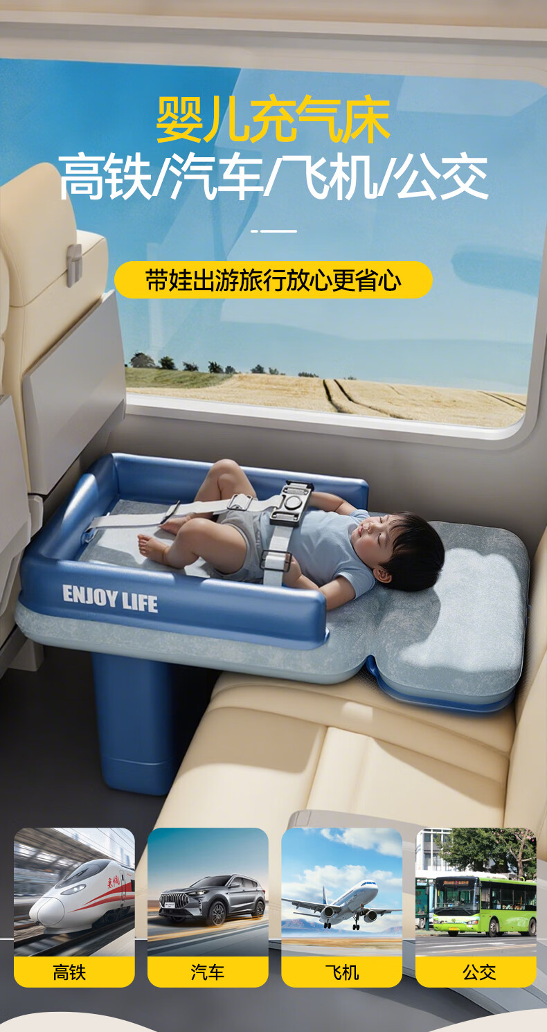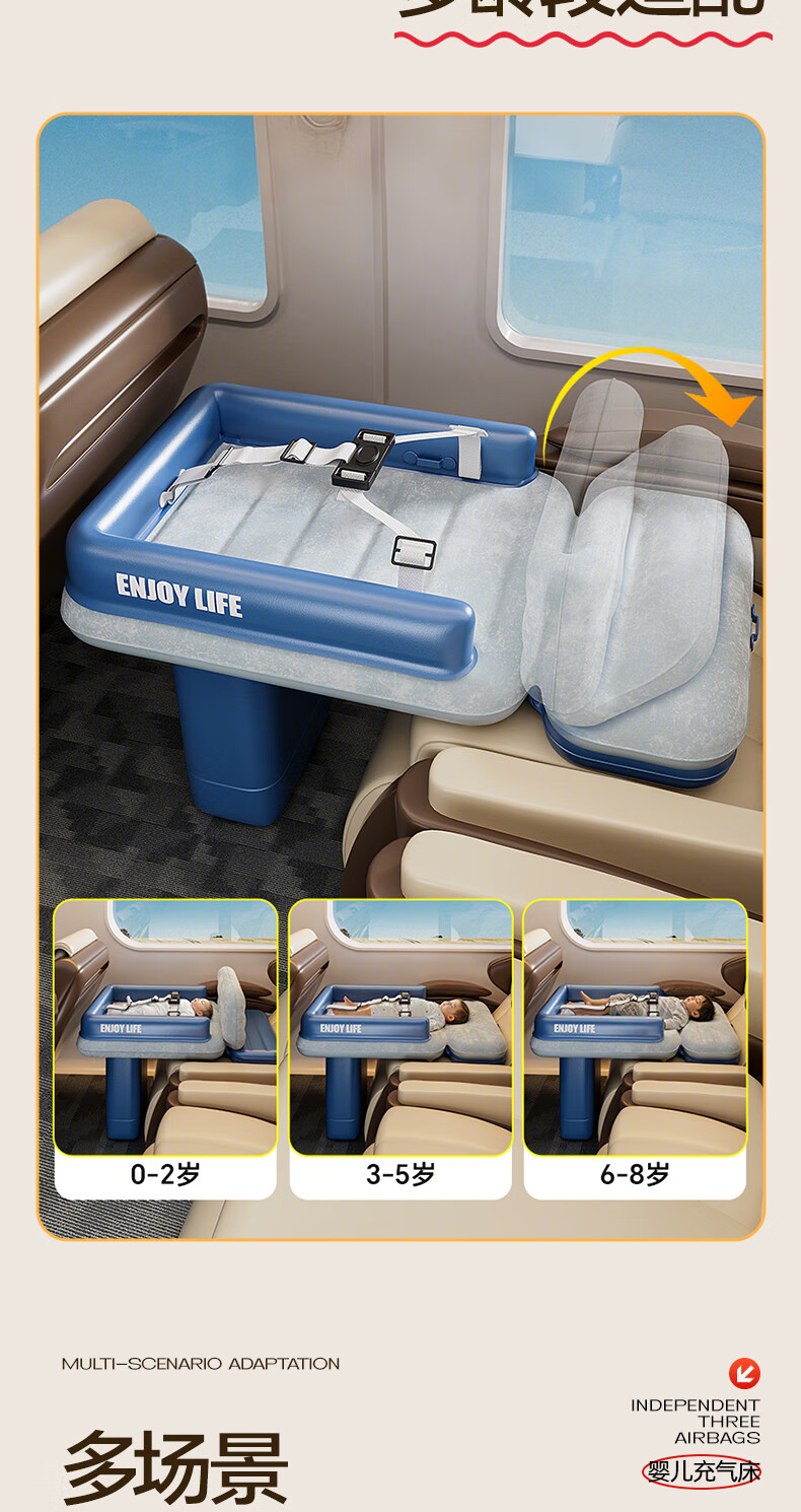 Mondorf air mattress car-mounted baby sleeping bed high-speed rail sleeping artifact car rear automatic air bed long-distance travel fast inflating luxury model + wireless pump + storage bag regular