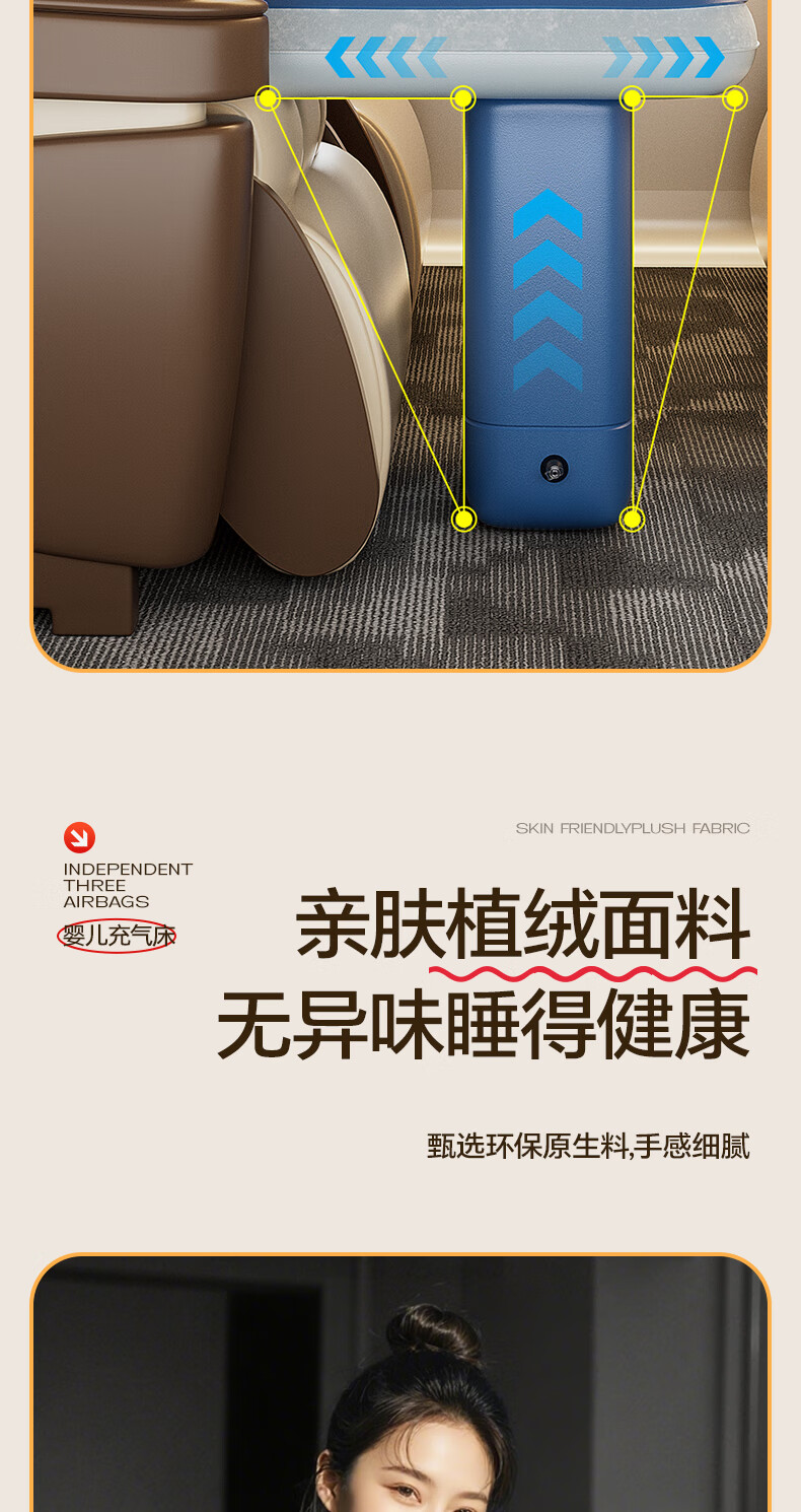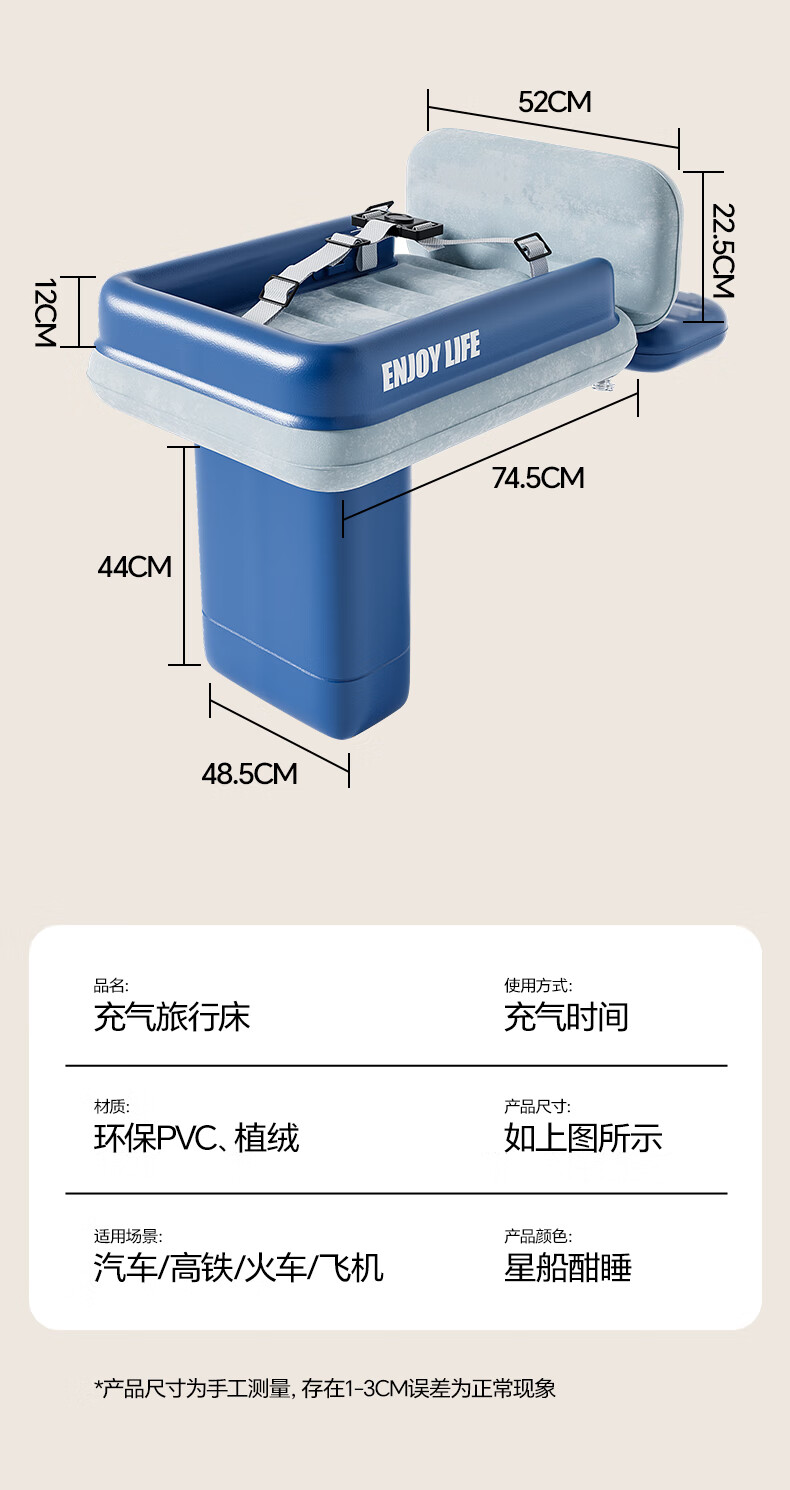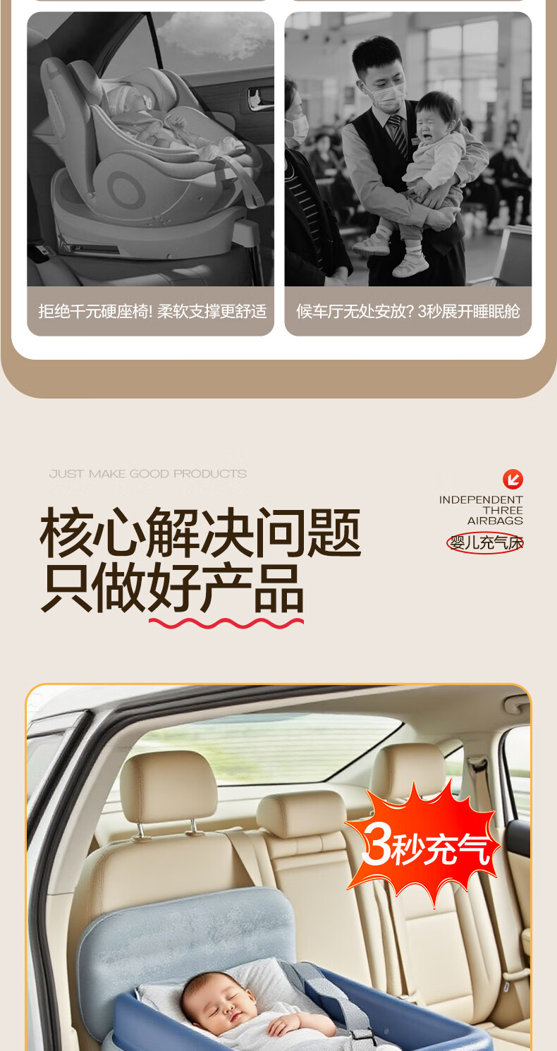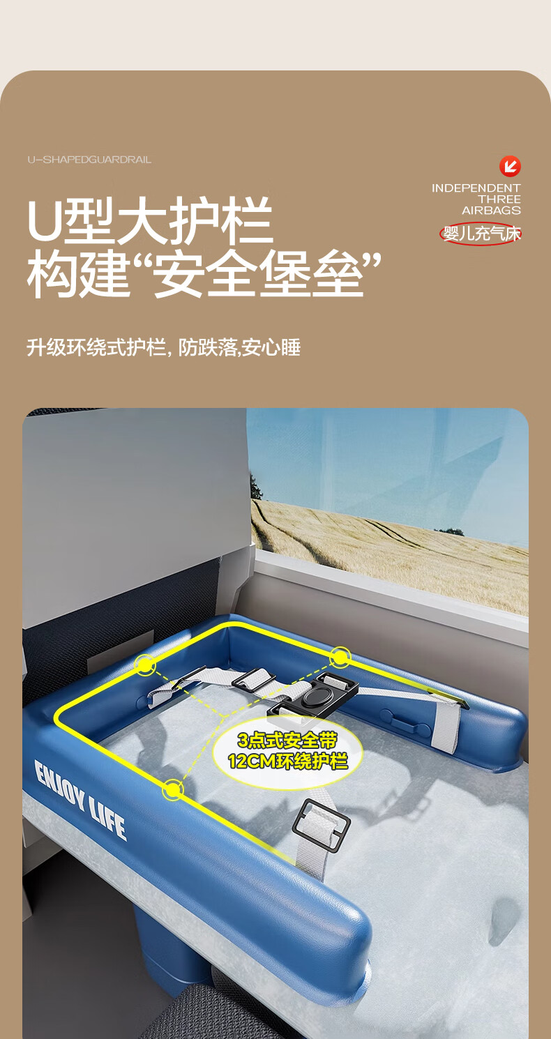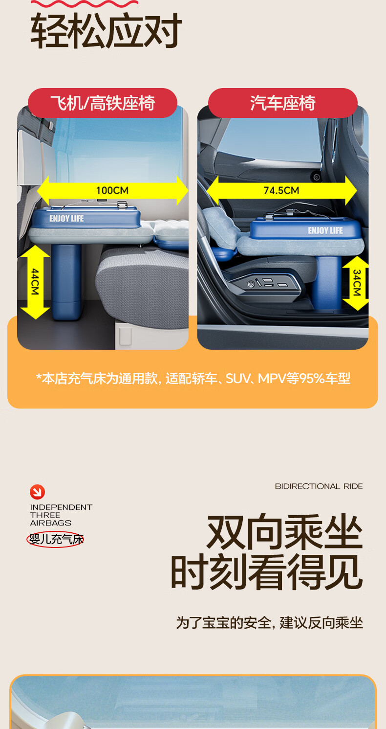 Mondorf air mattress car-mounted baby sleeping bed high-speed rail sleeping artifact car rear automatic air bed long-distance travel fast inflating luxury model + wireless pump + storage bag regular