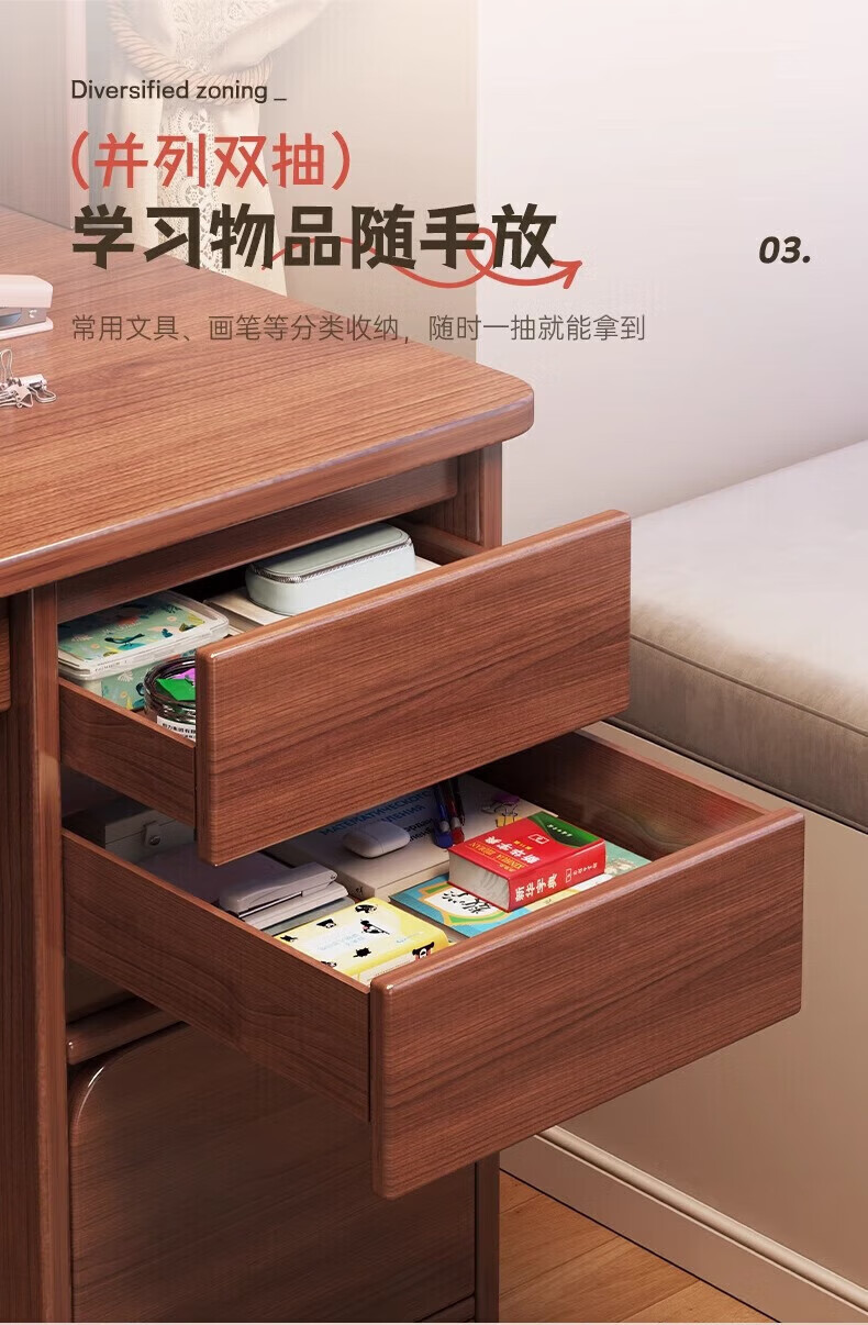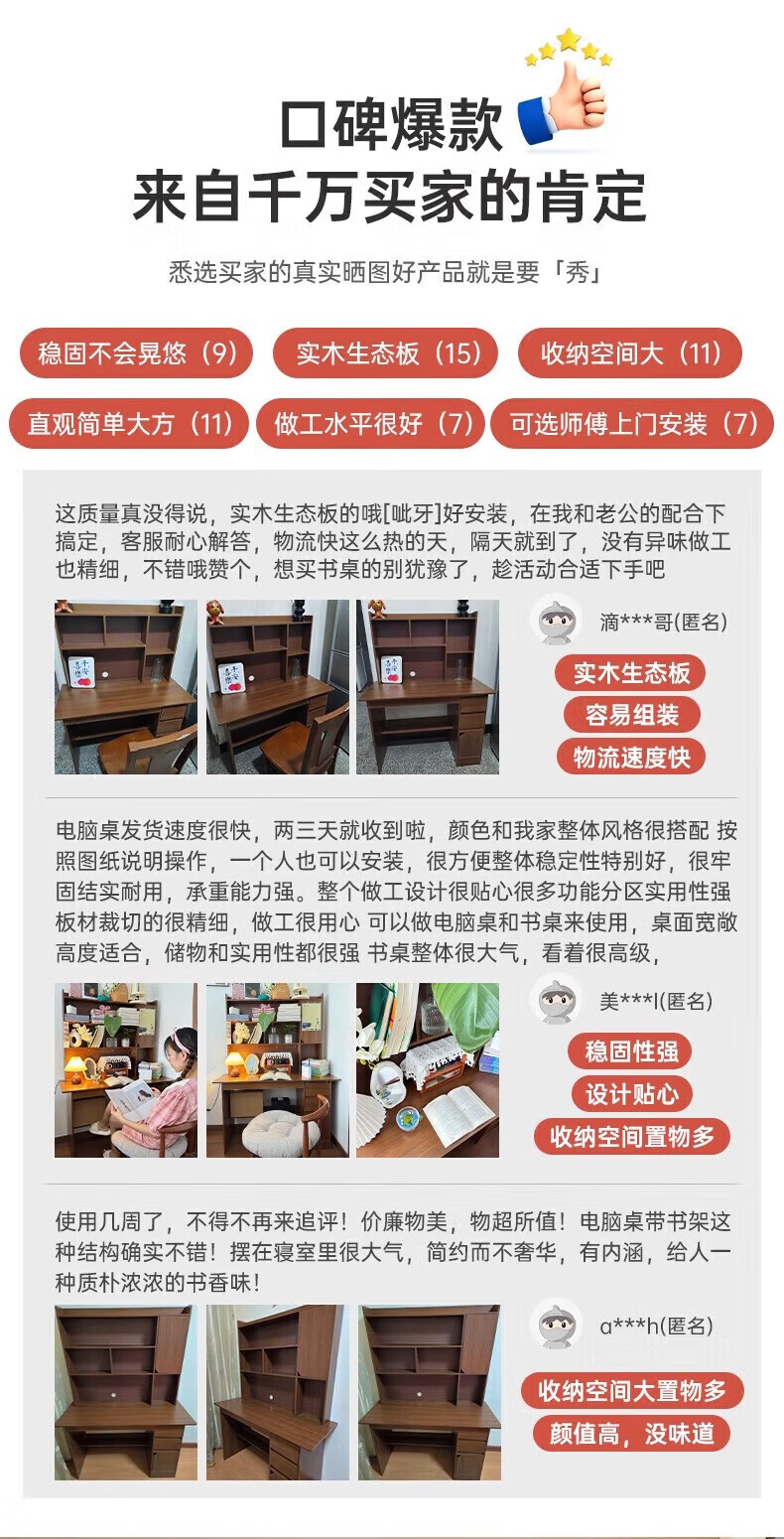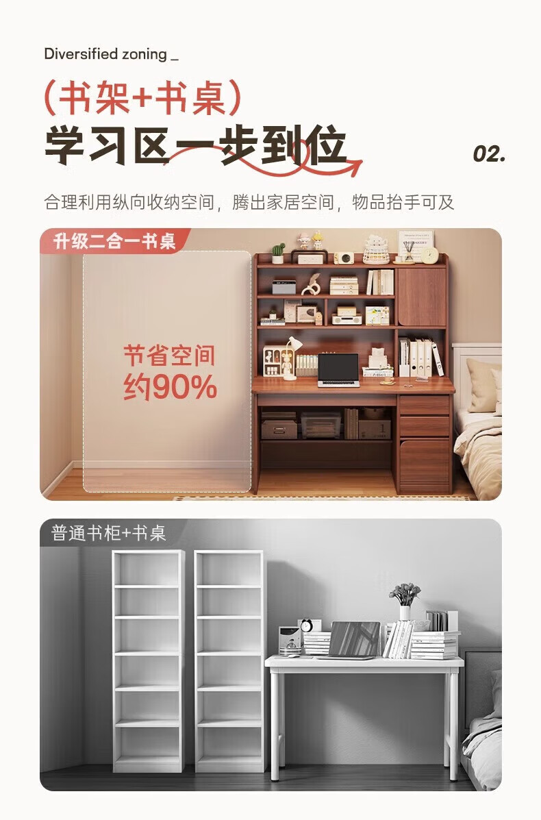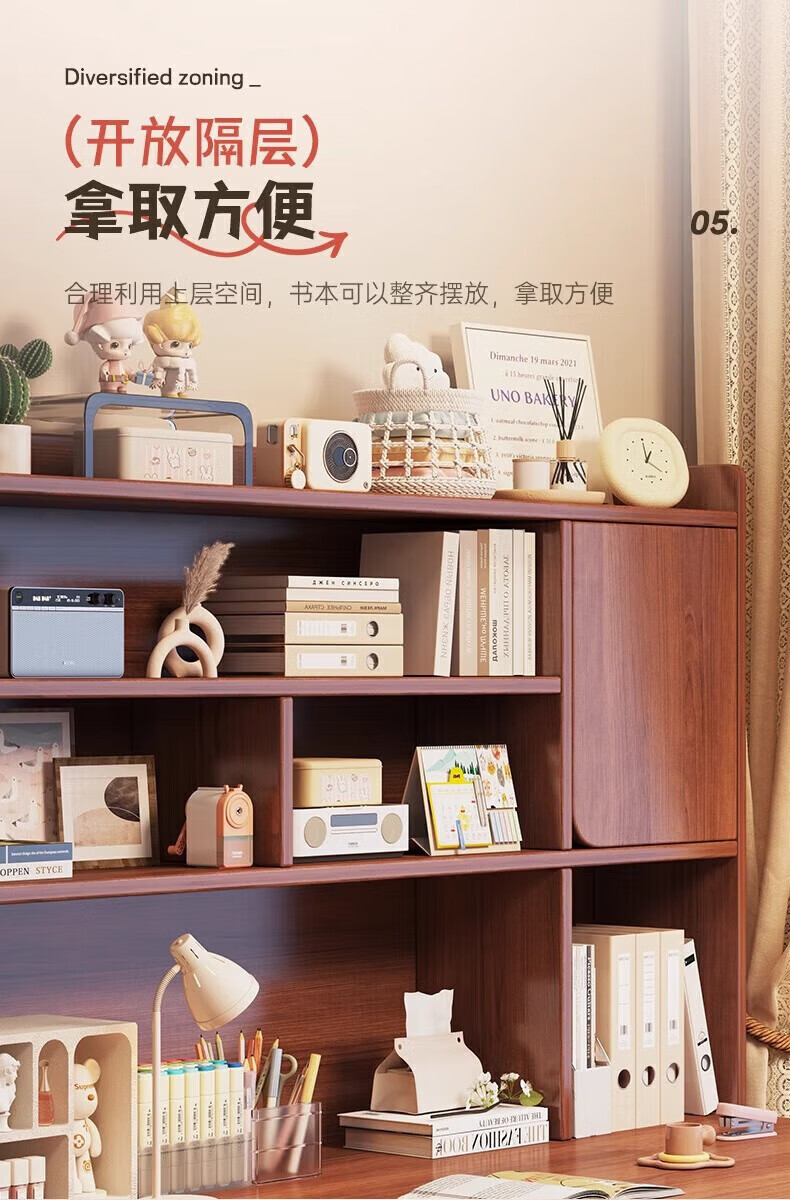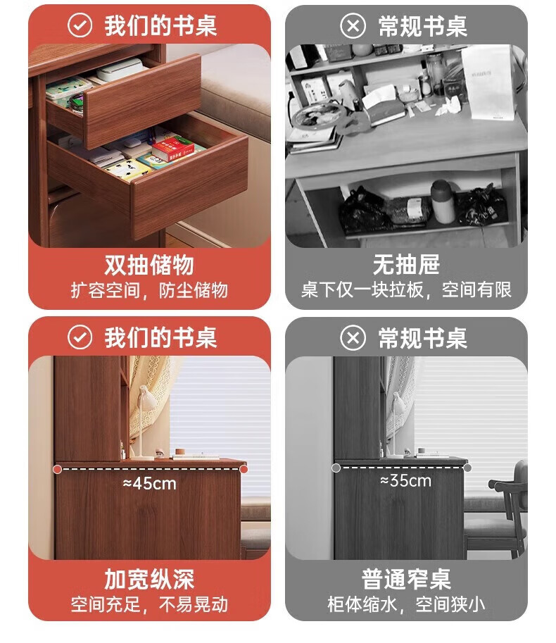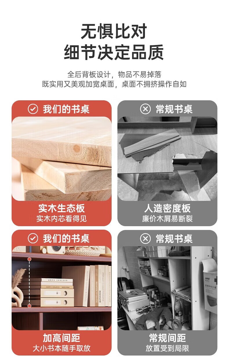 Solid wood core desk student home study desk bedroom bookshelf integrated table bookcase wall computer desk solid wood ecological board 120cm walnut color heightening