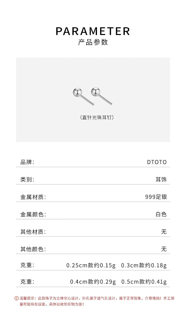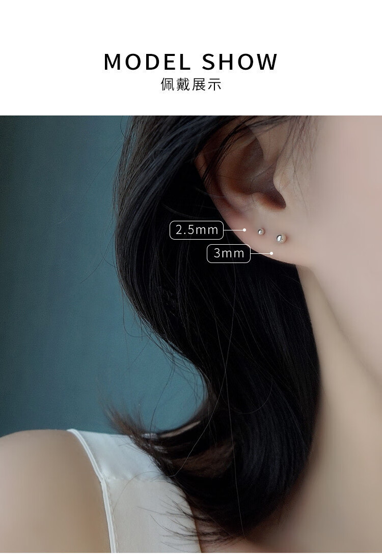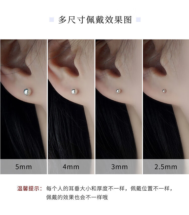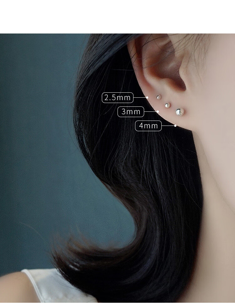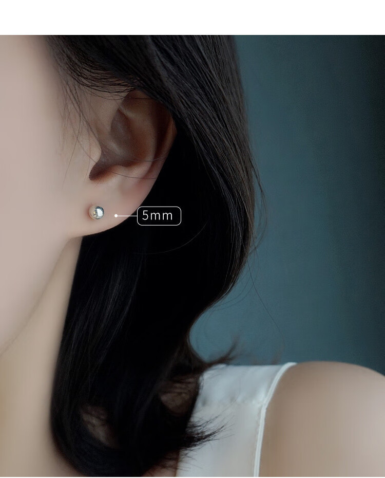 999 pure silver glossy round bead earrings, feminine and high-end, piercing ear sticks, anti-blocking design earrings gift, hook style earrings + brand gift box + certificate, 4mm pair