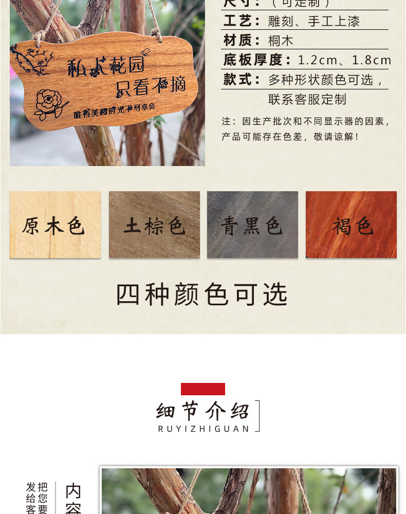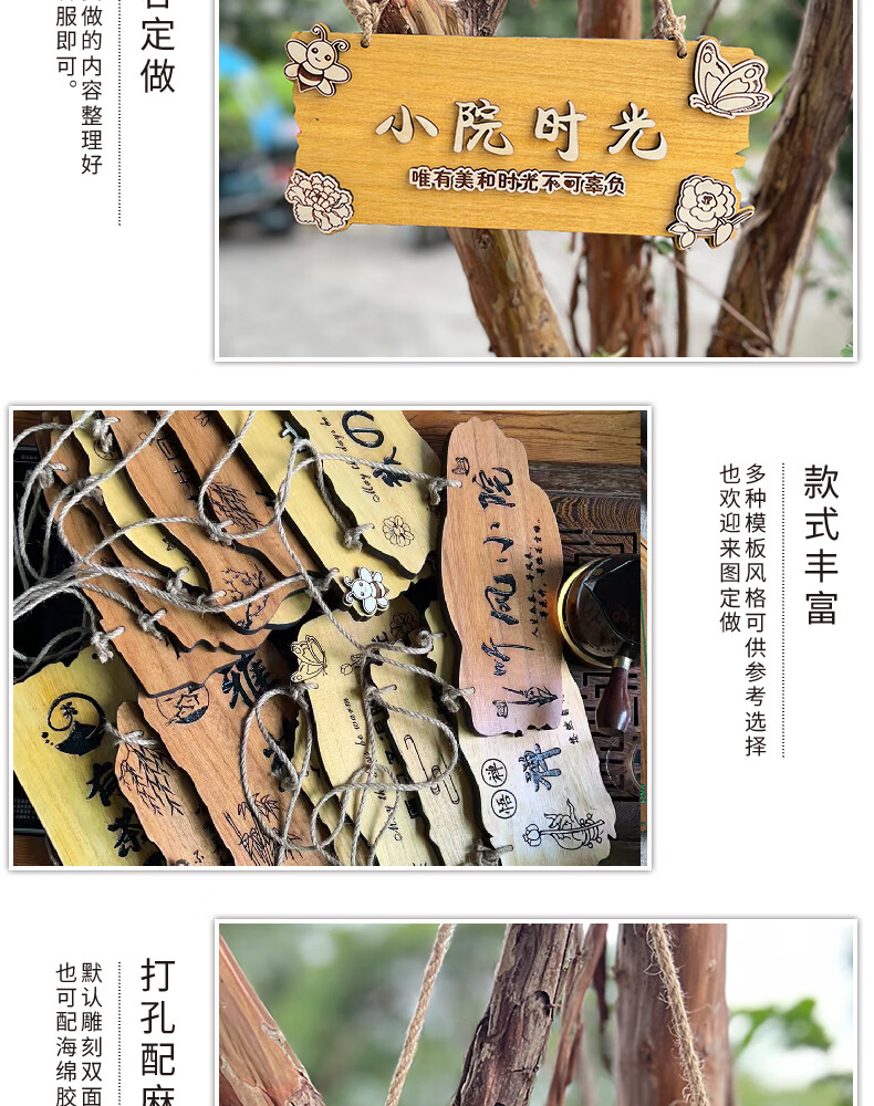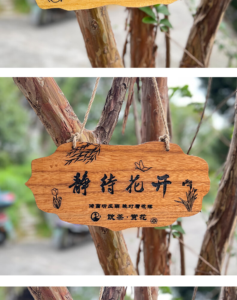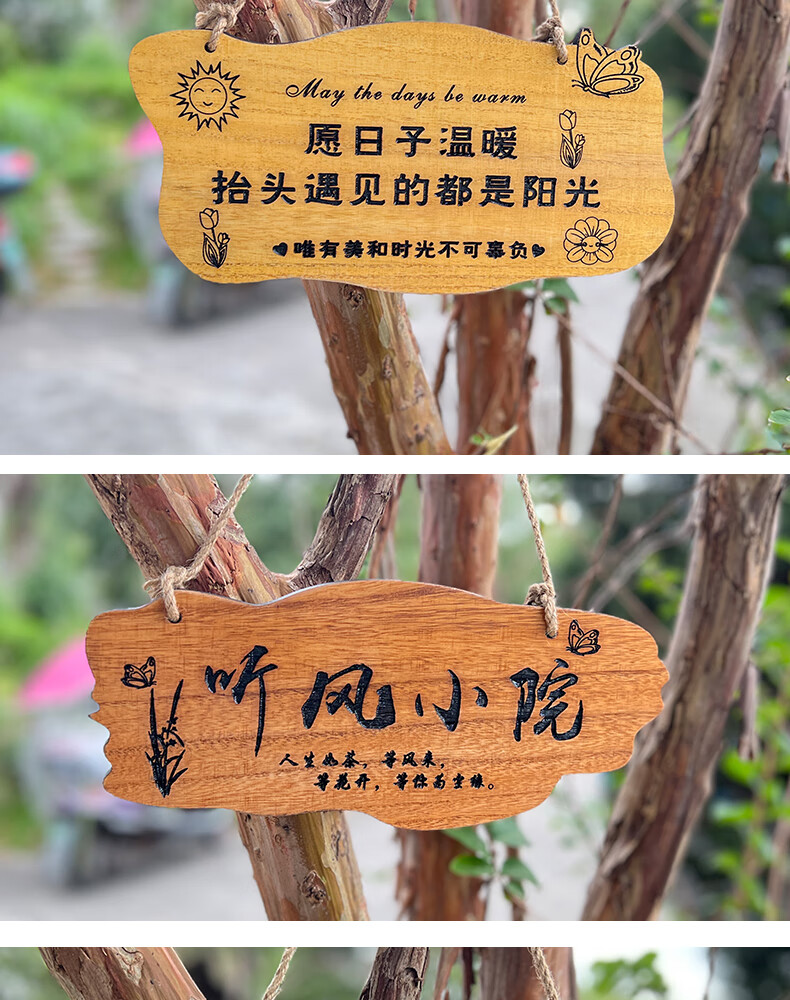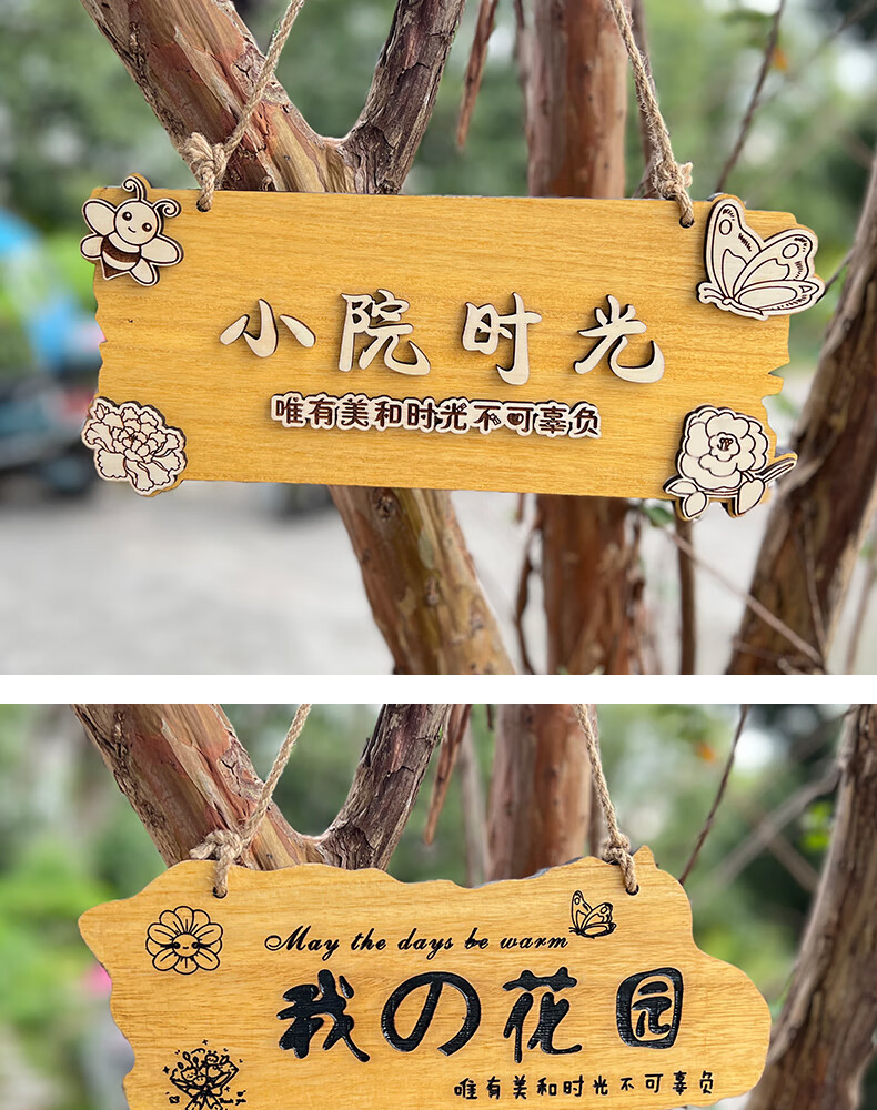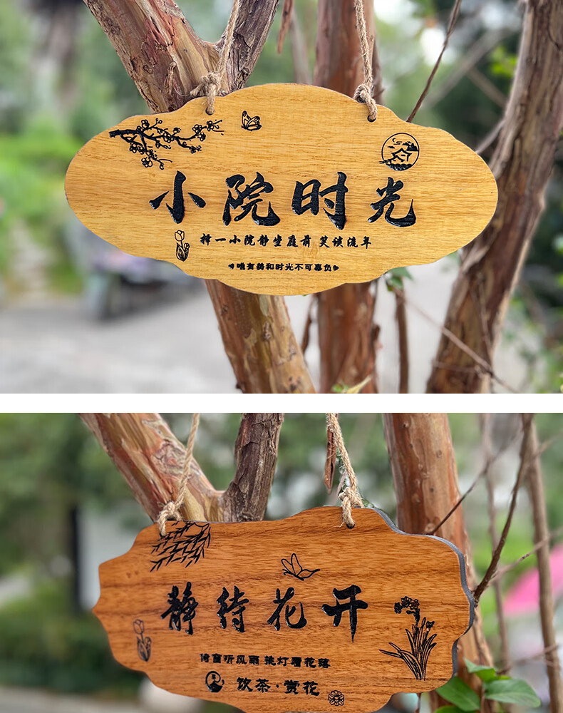 Kezhiyuan wooden sign with custom engraving, personalized and creative wooden sign, beautiful courtyard garden tree sign, wooden sign, my courtyard door sign, atmosphere, size and content customized 30x14cm