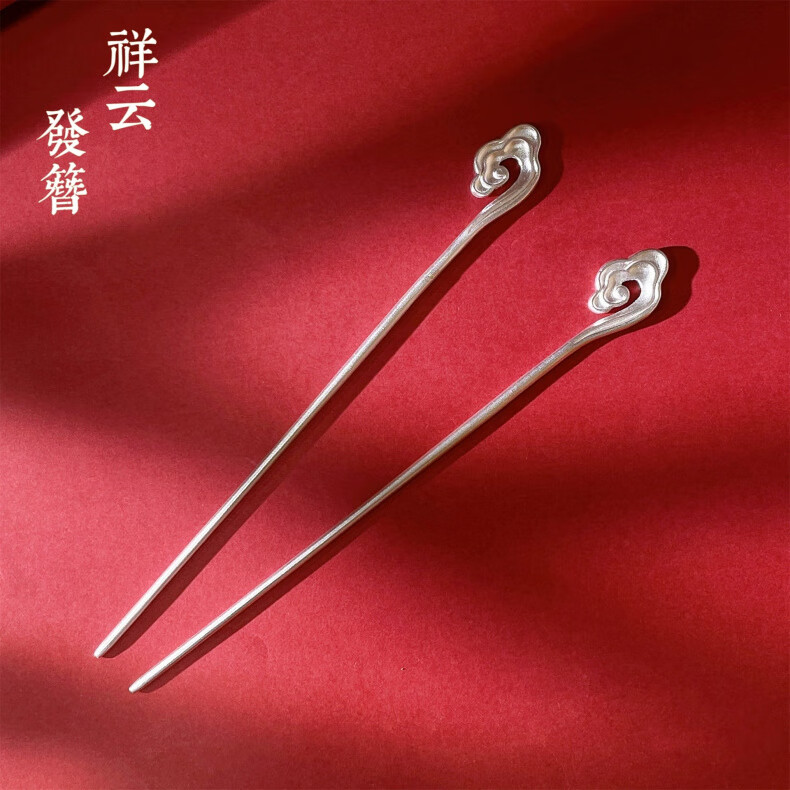 Pure silver 990 solid retro Ruyi Xiangyun silver hairpin for women Mid-Autumn sterling silver hair accessories birthday gift for girlfriend Pure silver 999 solid hairpin (13.5g) + certificate + gift box blue
