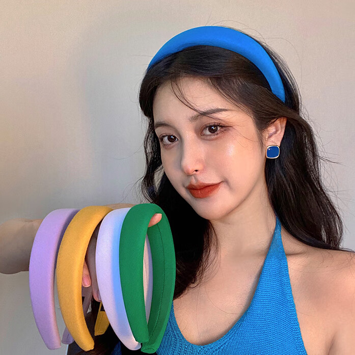 Candy color sponge hairband female summer hairpin Internet celebrity new wide-brimmed French color high headband hair accessories light pink