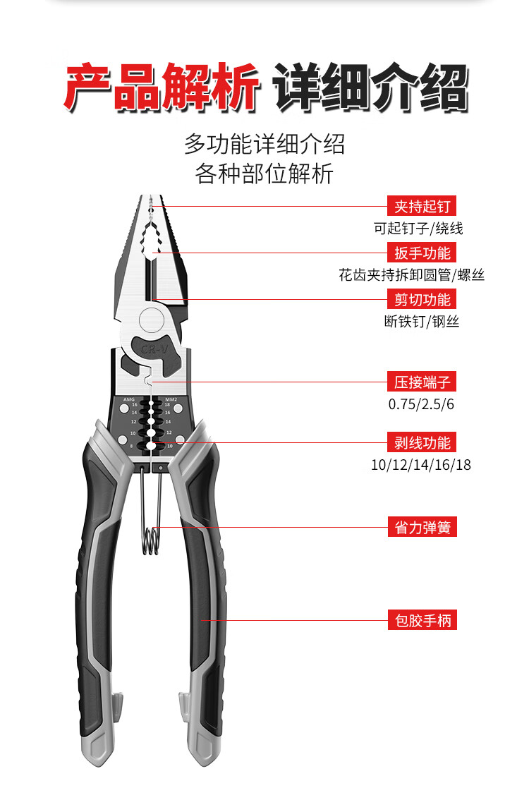 Vise, needle nose pliers, diagonal pliers, wire pliers, household multi-functional electrician special industrial-grade pliers set, labor-saving 6-inch multi-function vise
